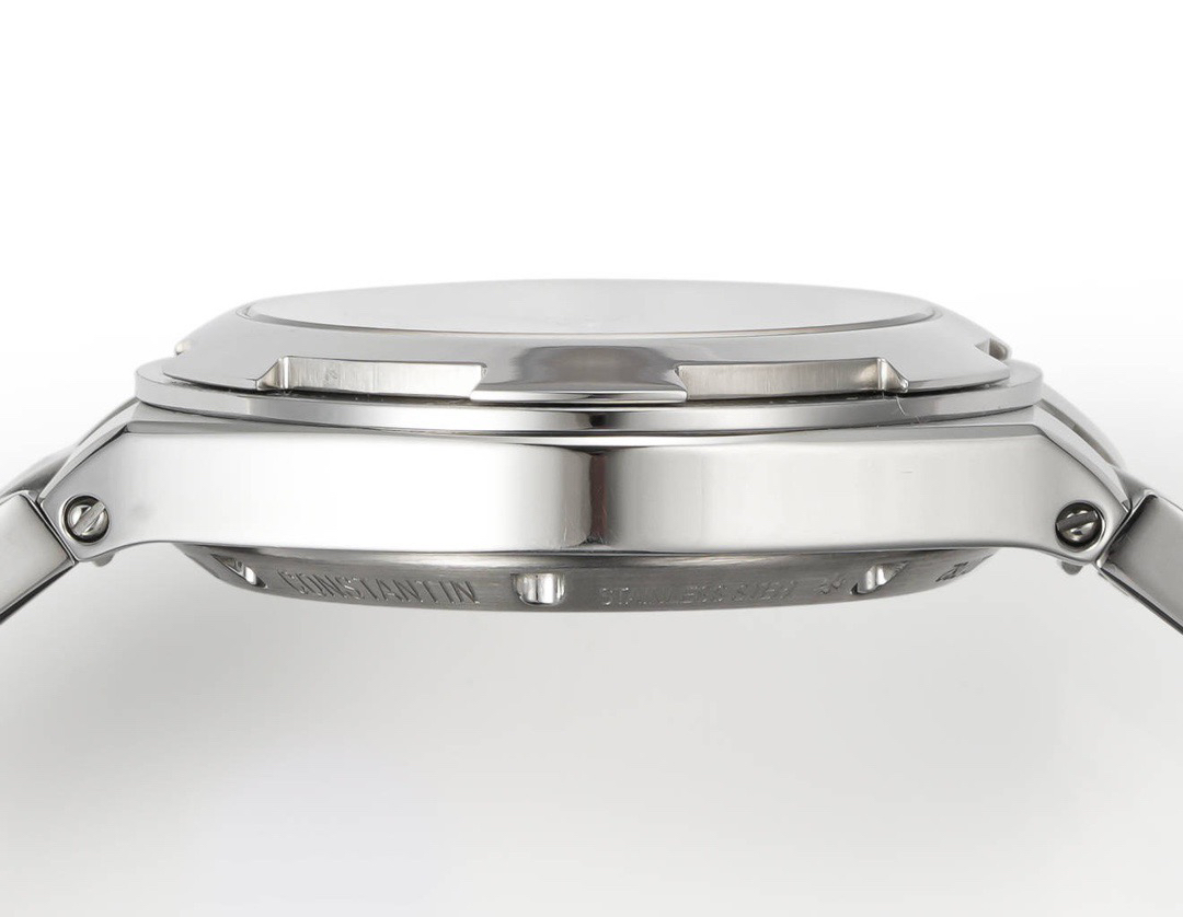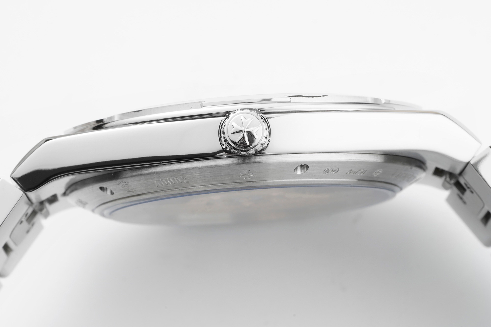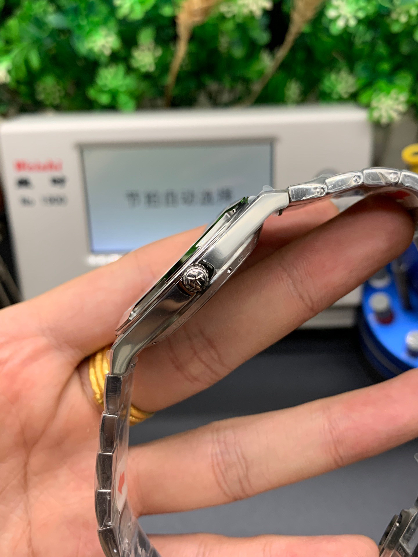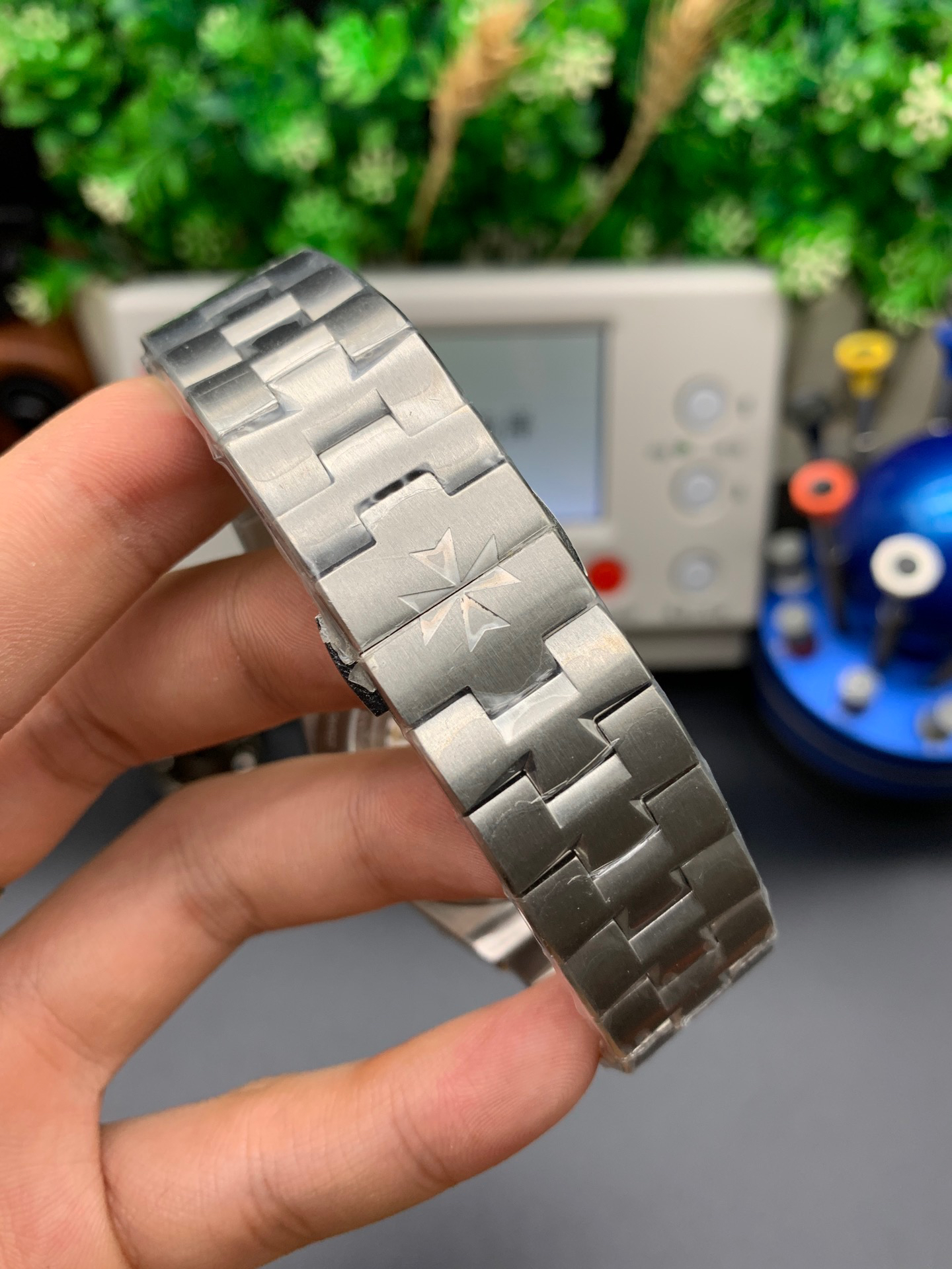 2023新年新款 江诗丹顿OVERSEAS 2000V/120G-B122超薄系列手表 腕表采用直径40毫米的表壳,搭载自动上链机械机芯——9015机芯改 1120 QP/1超薄机芯 精钢材质曲线外观流畅自然,工艺精度与美学质感兼具。圆弧形的带有抛光及缎面修饰表圈及表壳,更具观赏性 简约典雅的旭日纹拉丝表盘,干净利落。更有一丝大道至简的感觉 值得一说的是这款钢带在尾粒设计了可拉伸的调节 更好的服务了广大表友因为手腕粗加钢粒的需求