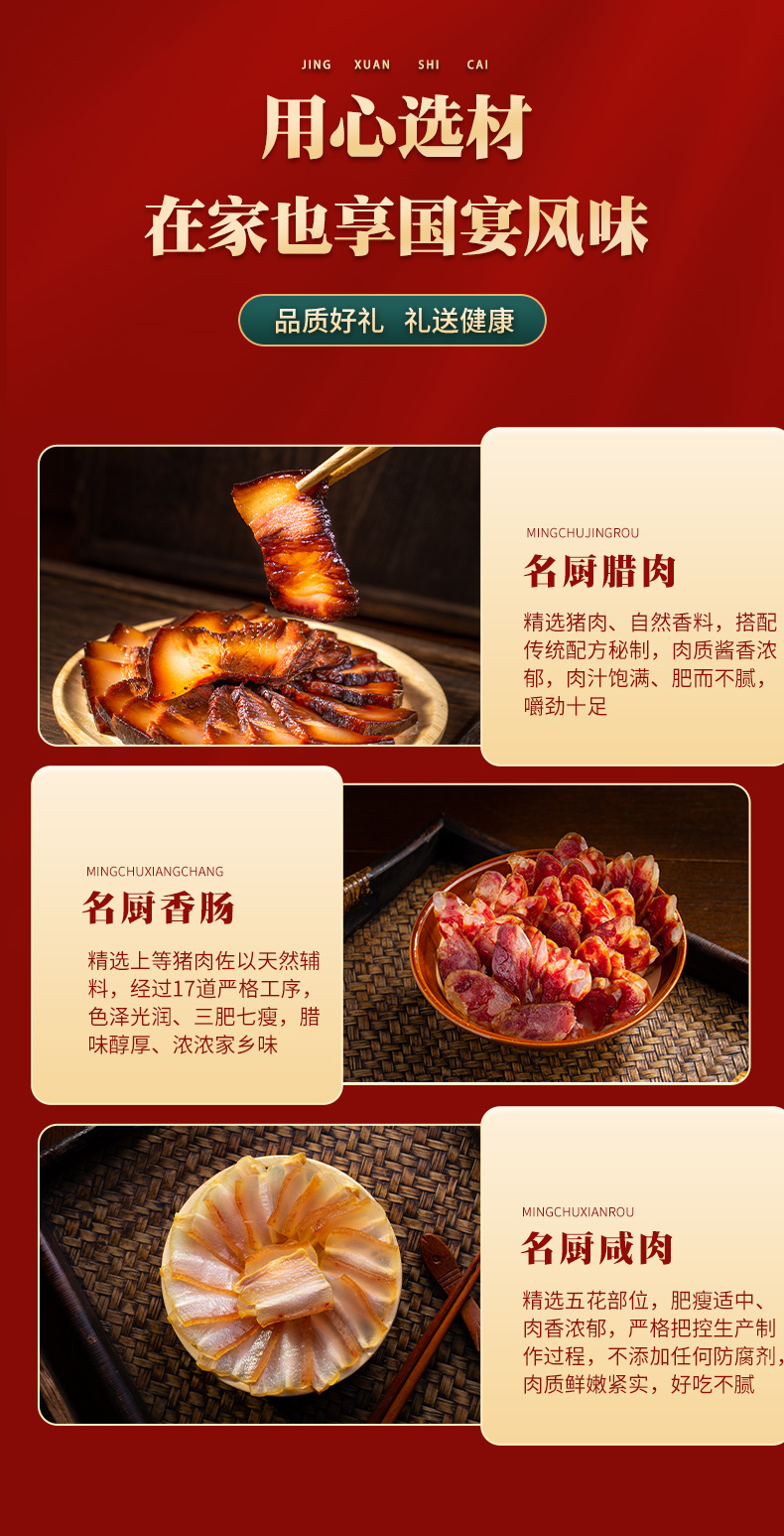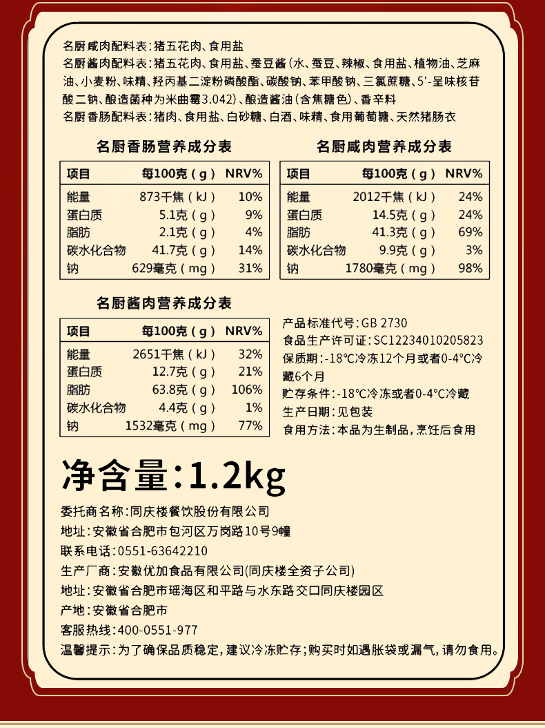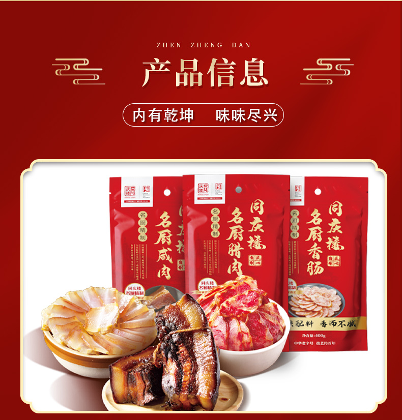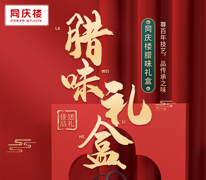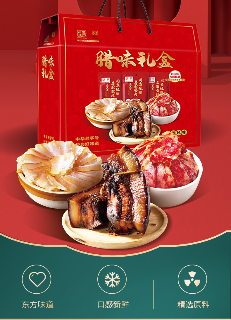 礼品卡〡同庆楼腊味礼盒,香肠400g+咸肉400g+酱肉400g,精选原料,口味独特