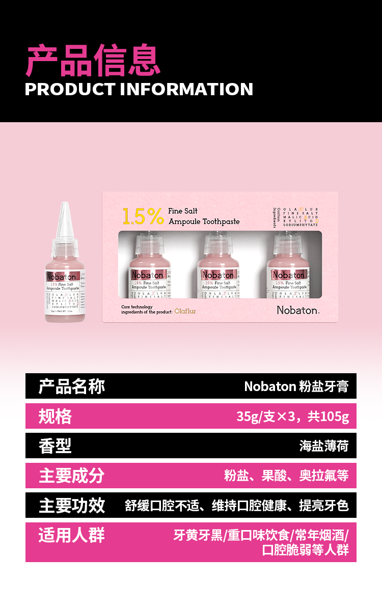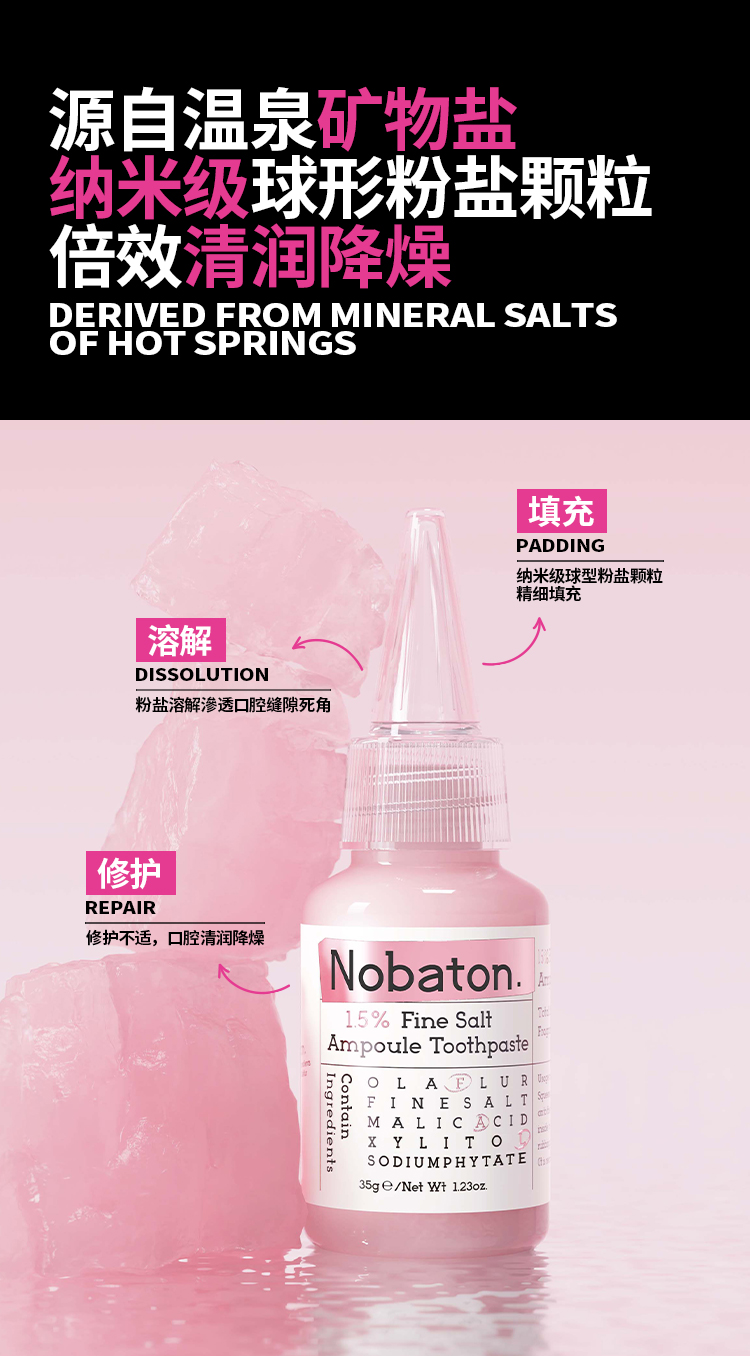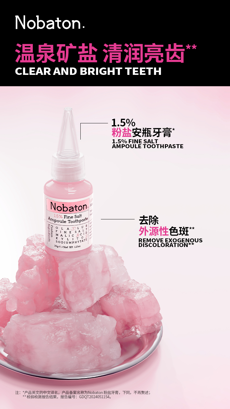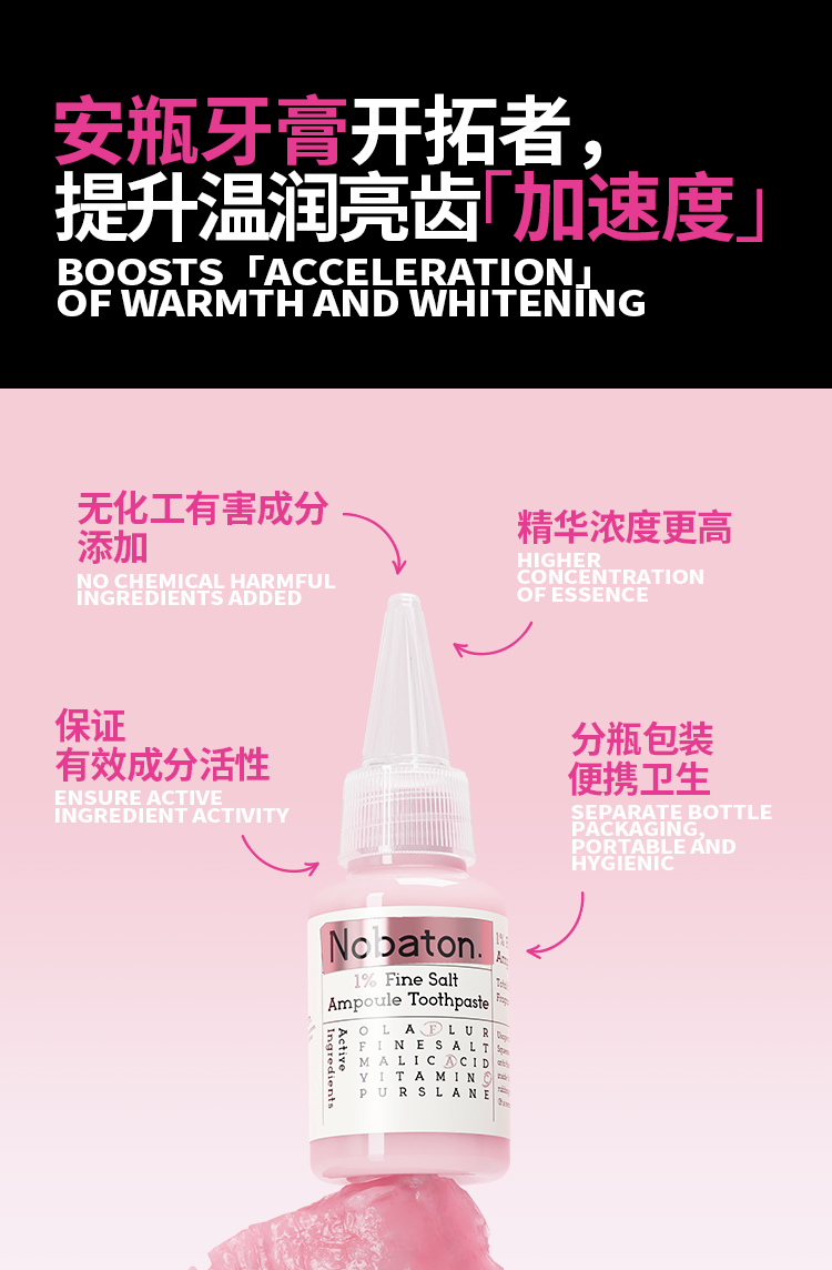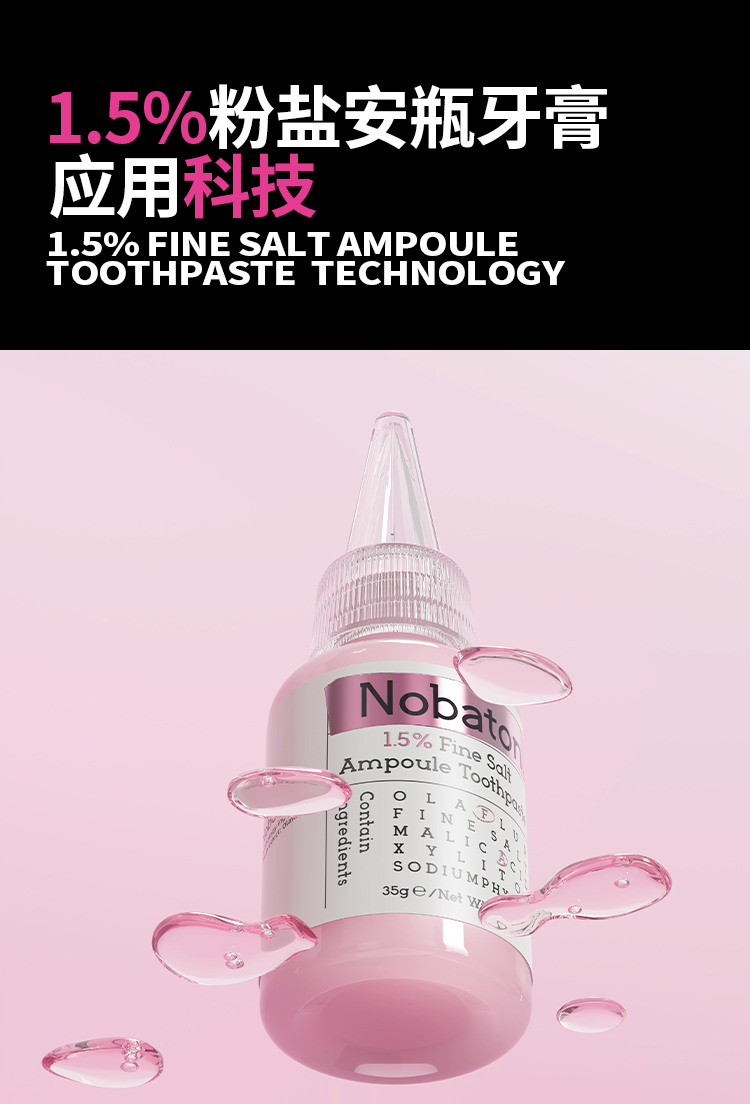【好莱坞爆款】Nobaton诺巴顿1.5%粉盐安瓶牙膏(买3盒+送1支试用装)效果不满意正装包退!