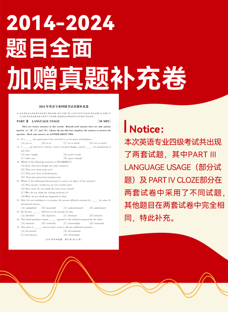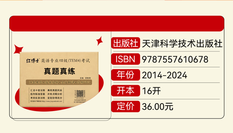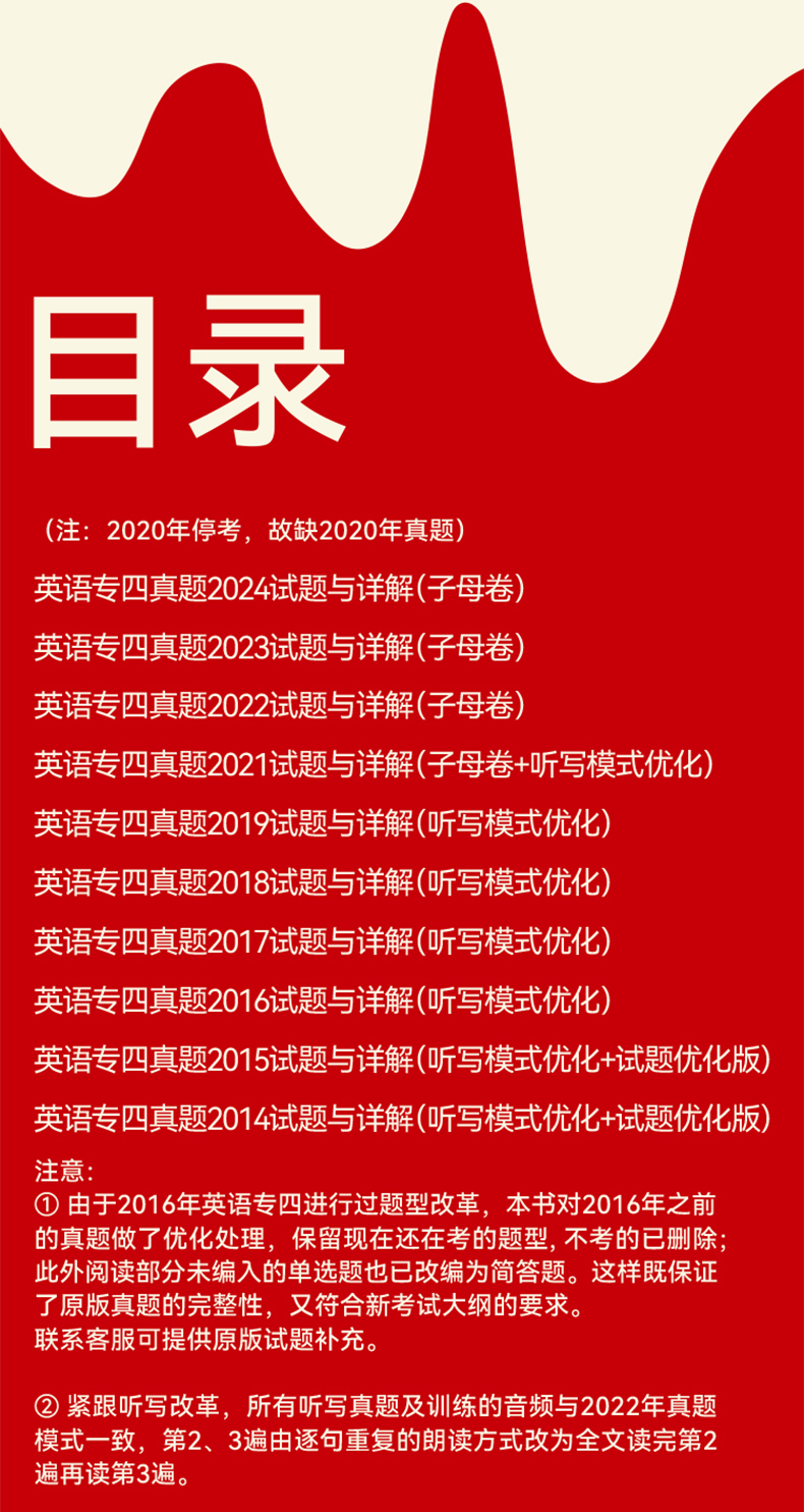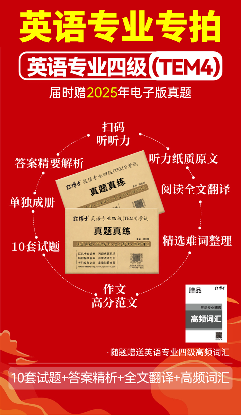 专四真题【2026改革新题型】晋远图书TEM4英语专业四级真题真练2015-2025十年历年真题试卷 改革后新题型10套真题官方答案精准解析