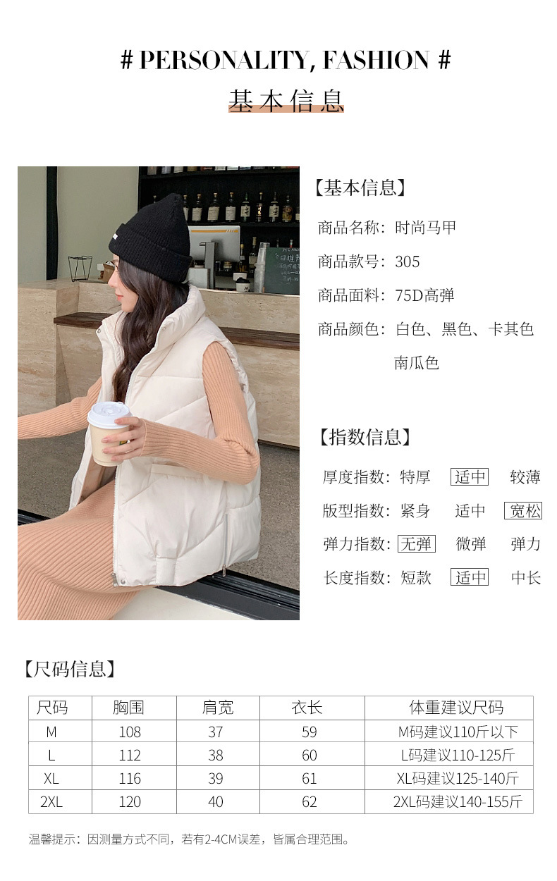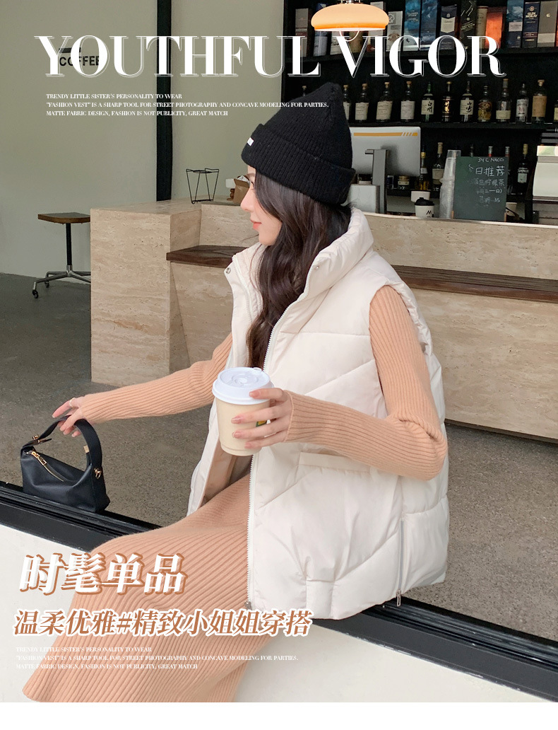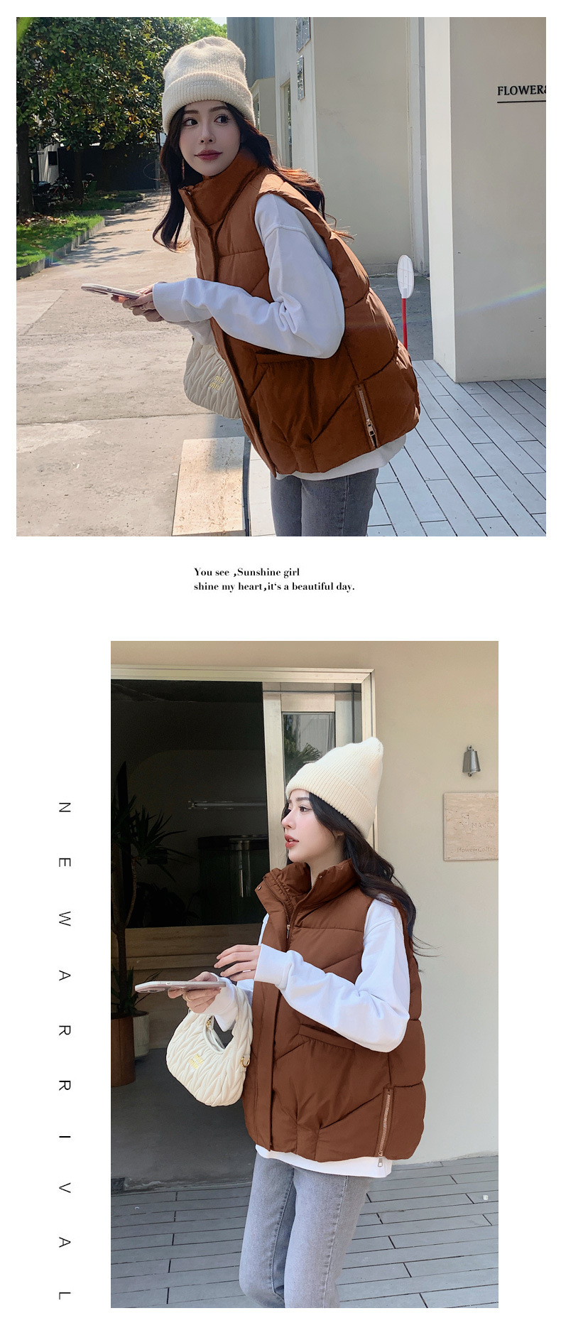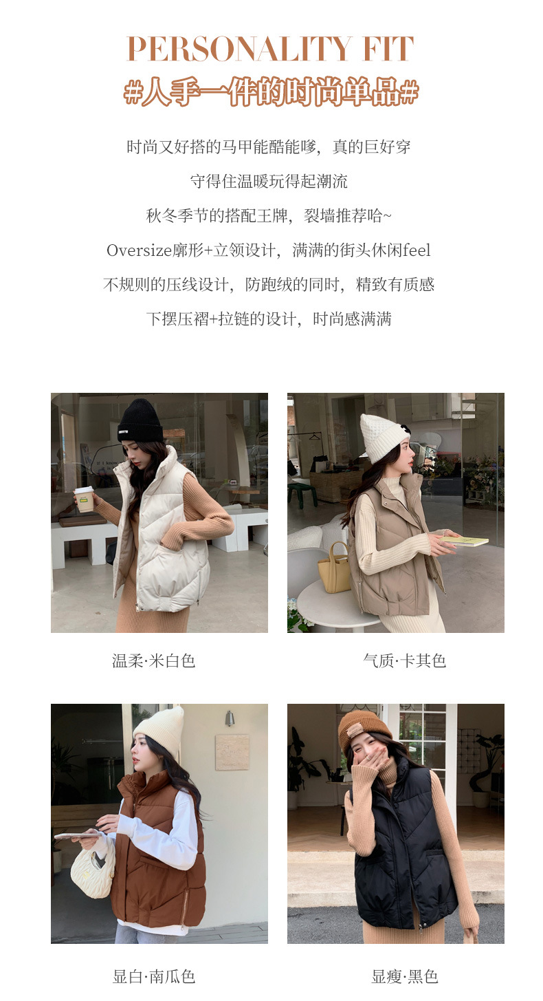秋冬韩版时髦百搭宽松马甲女新款马甲女短款立领时尚洋气坎肩外套