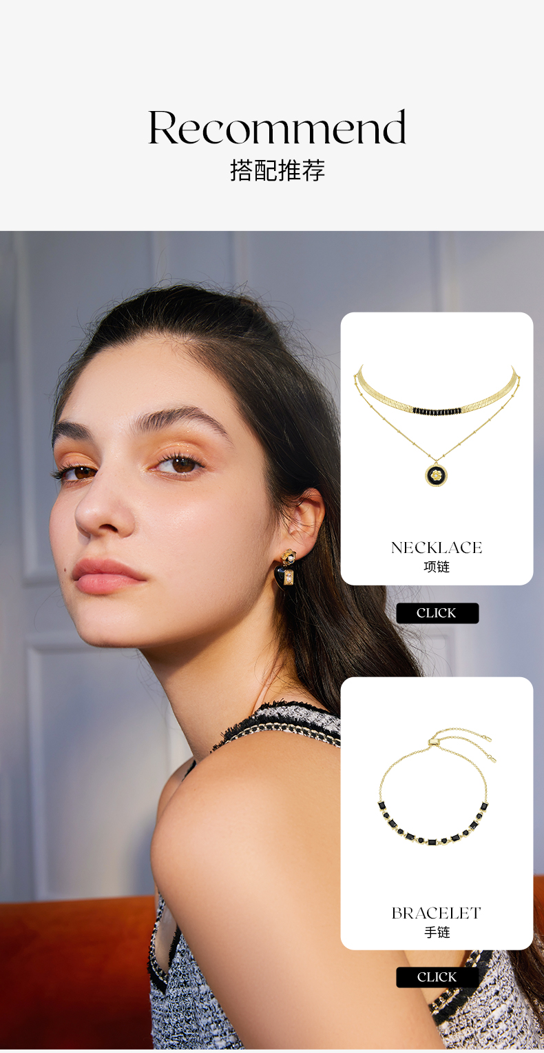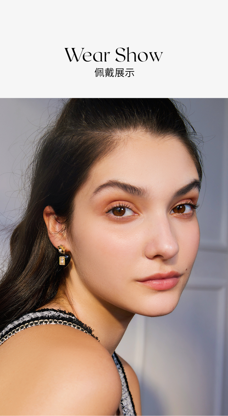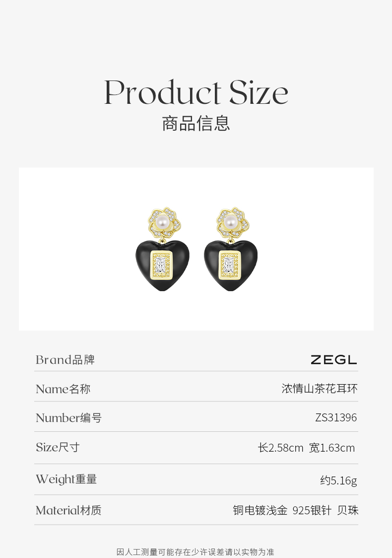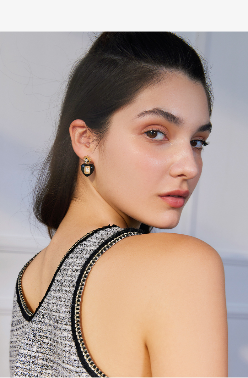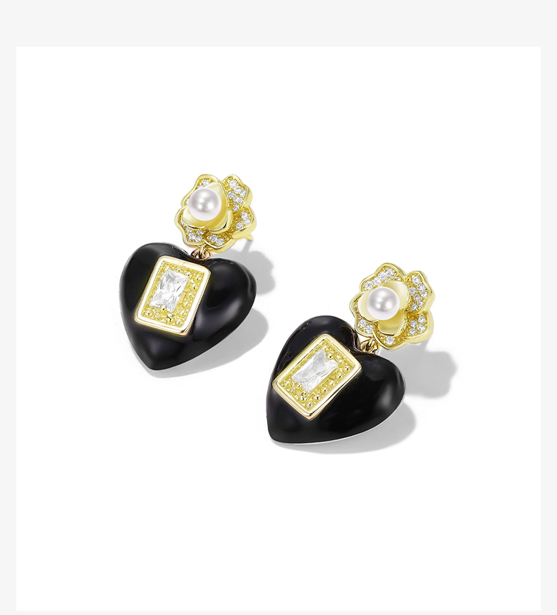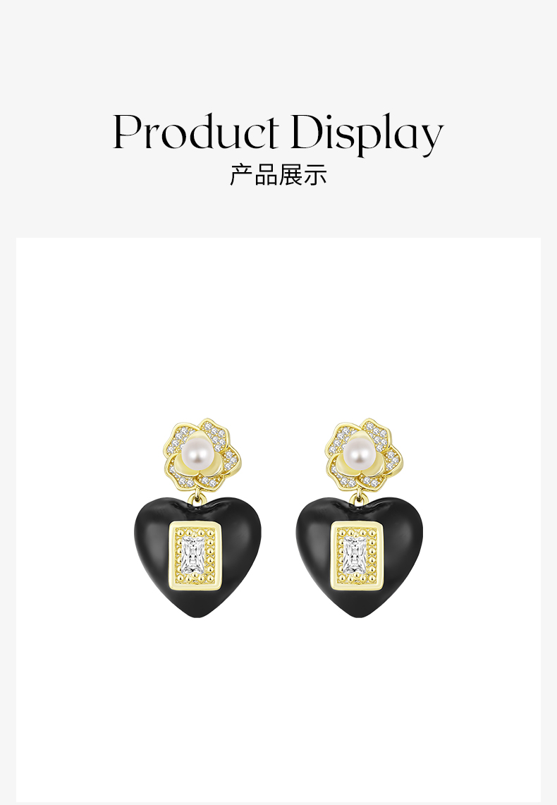 ZEGL设计师山茶花系列黑色爱心小香风耳环女银针复古耳钉夏季耳饰