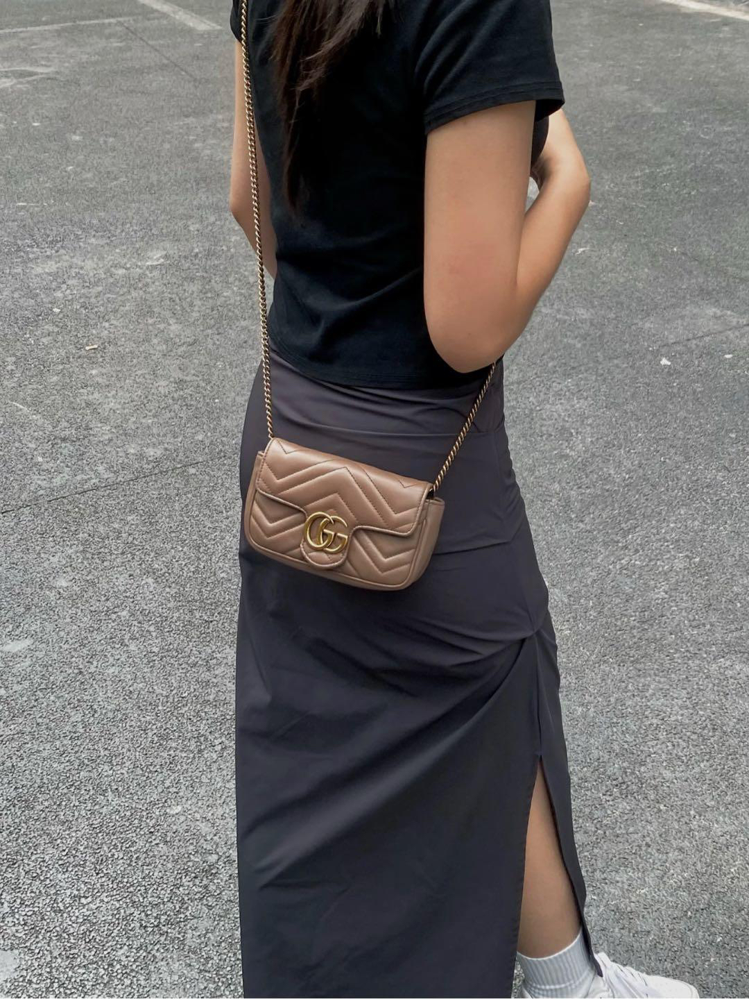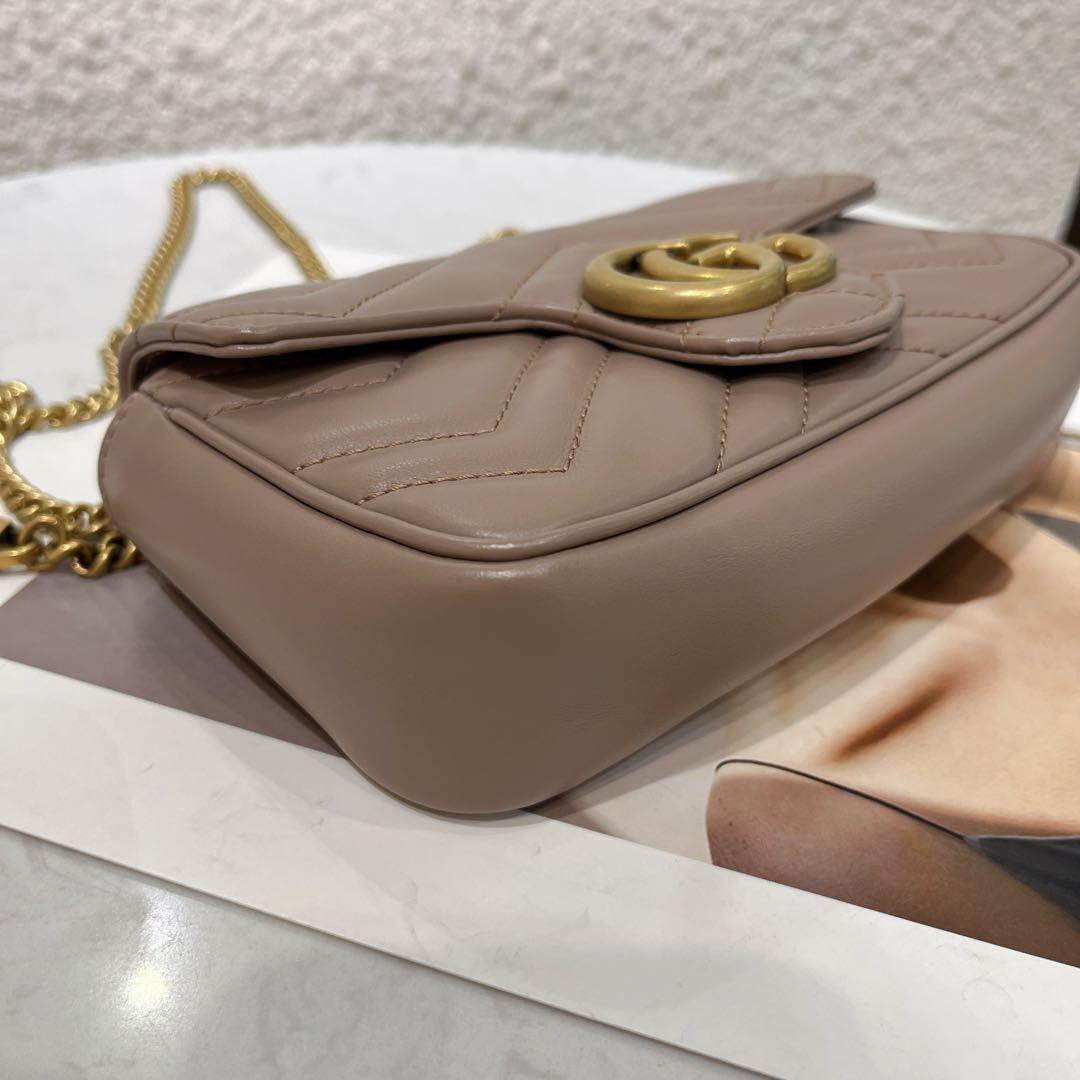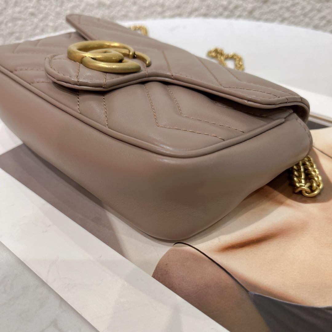 【商品詳情】正品二手 Gucci 马蒙 mini 牛皮 奶茶色 斜挎包🍿97新 17x9 配件:链条 龙虾扣 防尘袋。温柔可爱精致