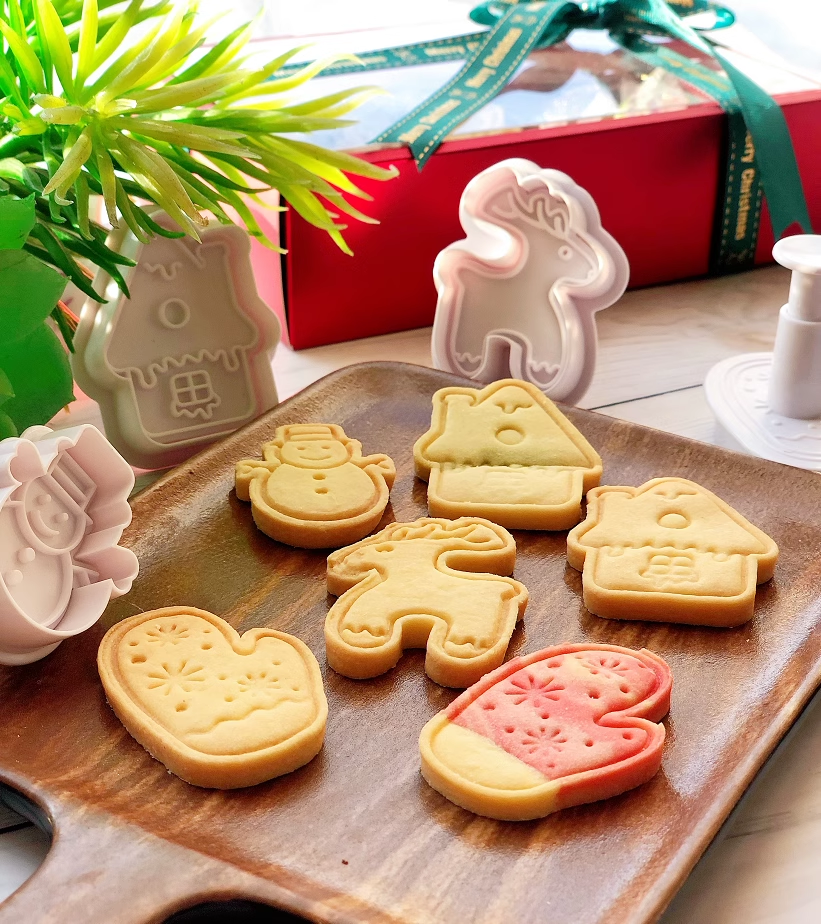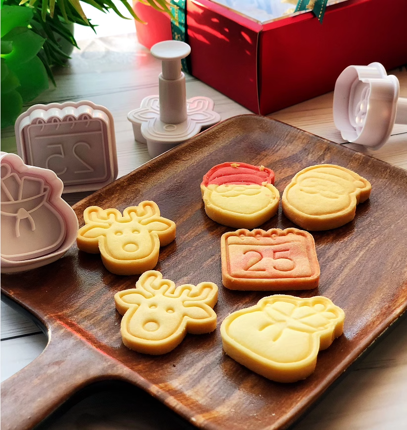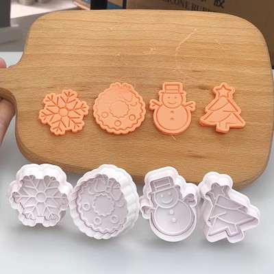 圣诞系列 立体按压饼干翻糖模4入 圣诞树草圈花环房子麋鹿雪人手套圣诞老人礼物雪花模具