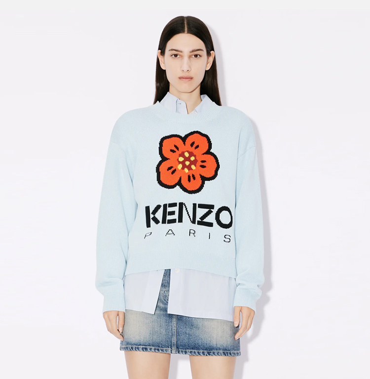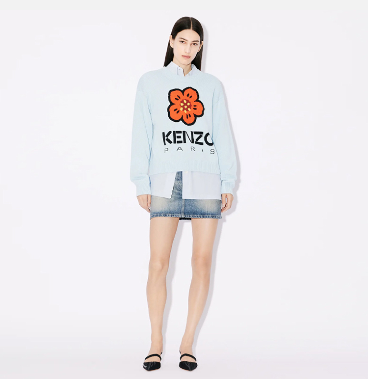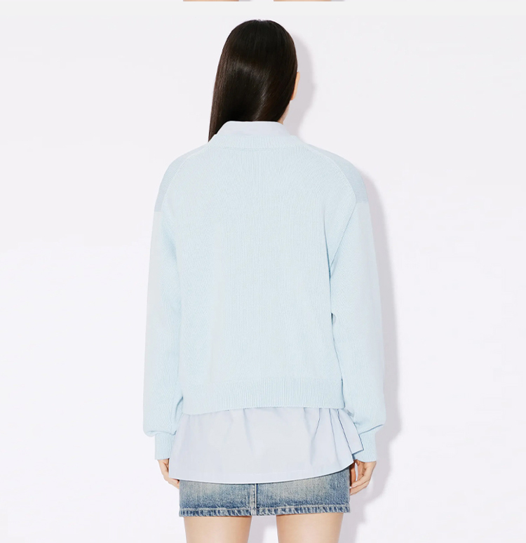 KENZO 高田贤三 女士棉质 “BOKE FLOWER” 徽标嵌花棉质长袖针织衫 浅蓝色 FD52 PU380 3LC 63