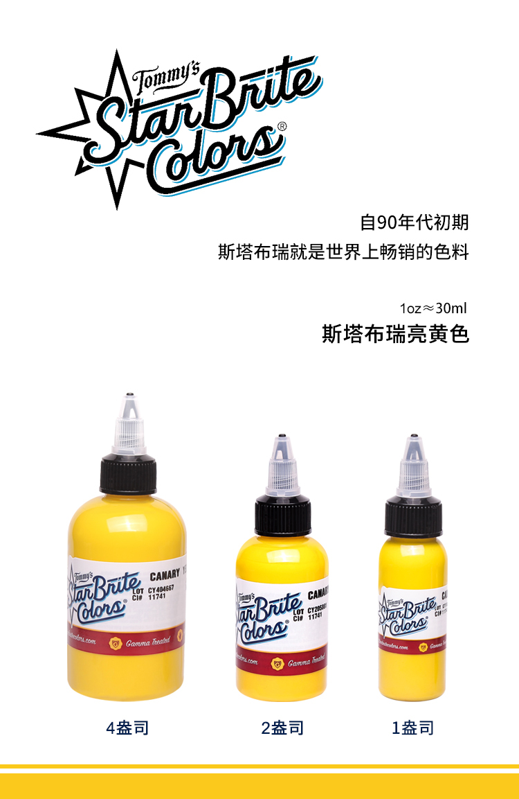 斯塔布瑞黄色纹身色料 水性易上色 惊蛰纹身器材