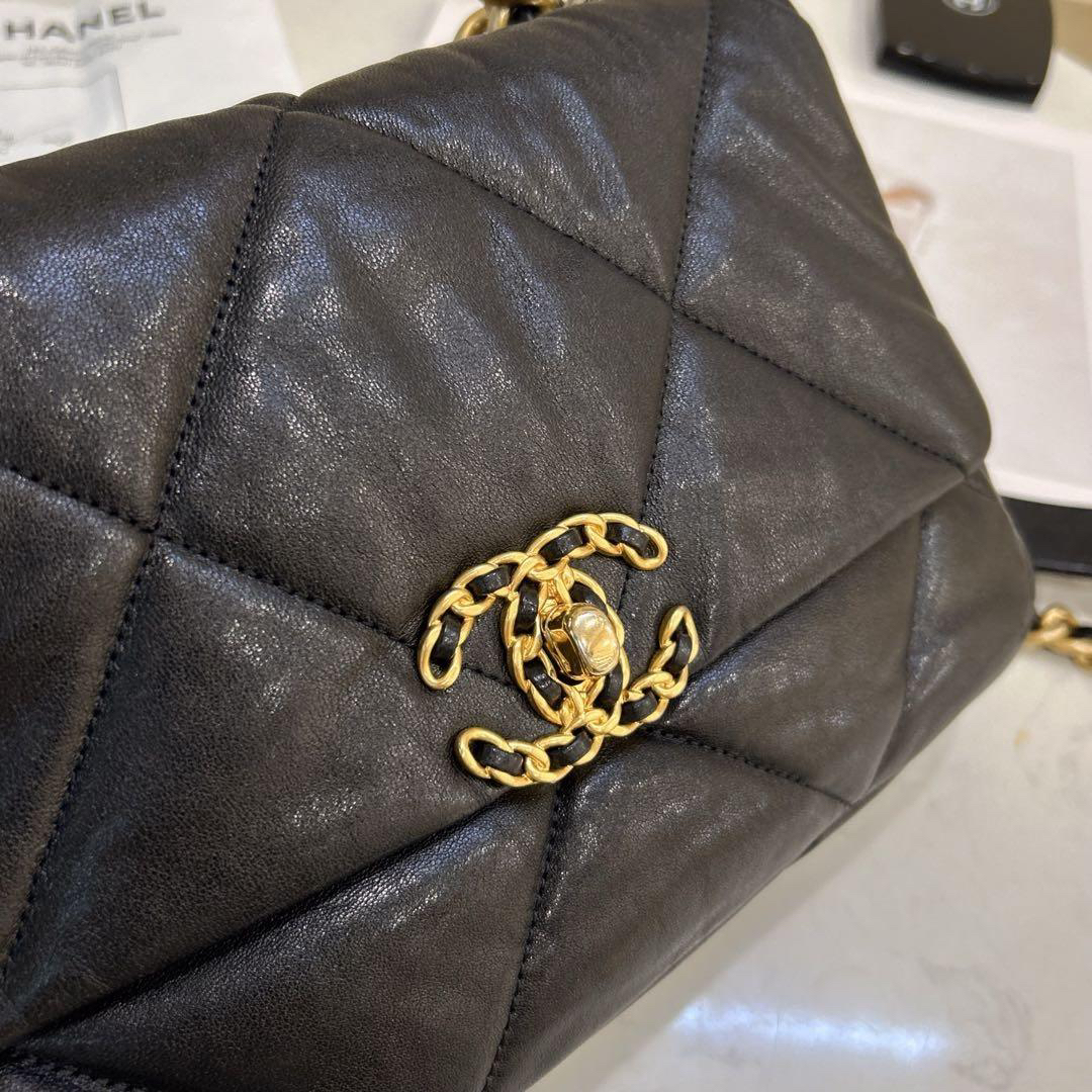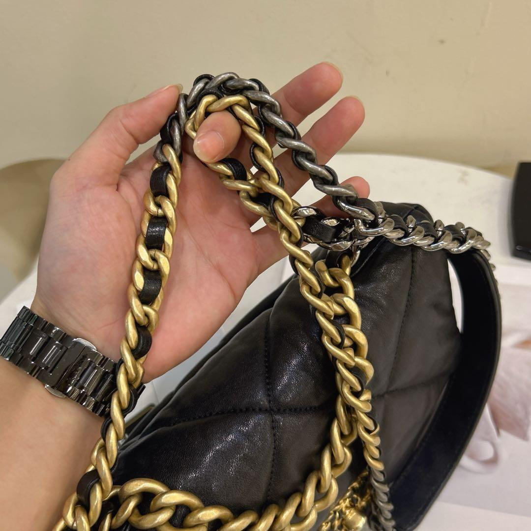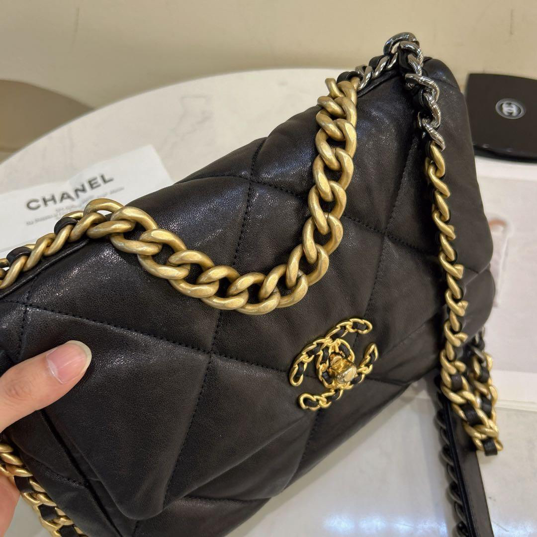 正品二手 Chanel 19bag 小号 黑金 山羊皮 斜挎包🍔98新 26*16 镭射28开 配件:卡 票。Chanel金刚款 百搭耐看
