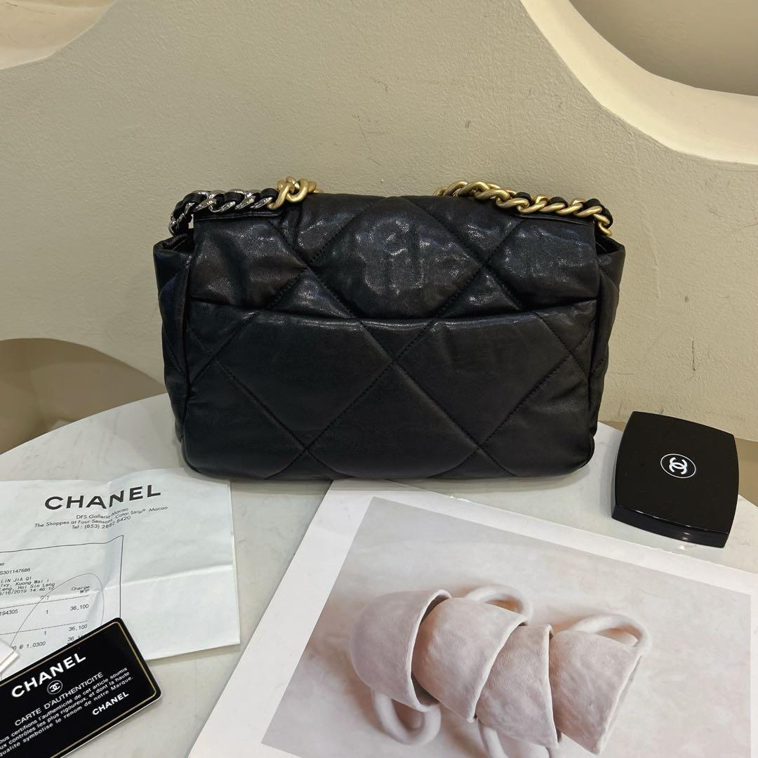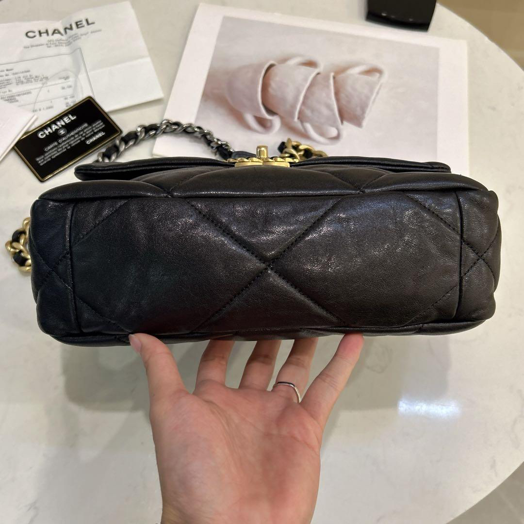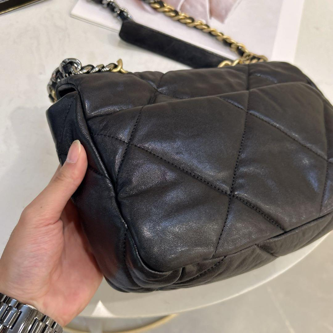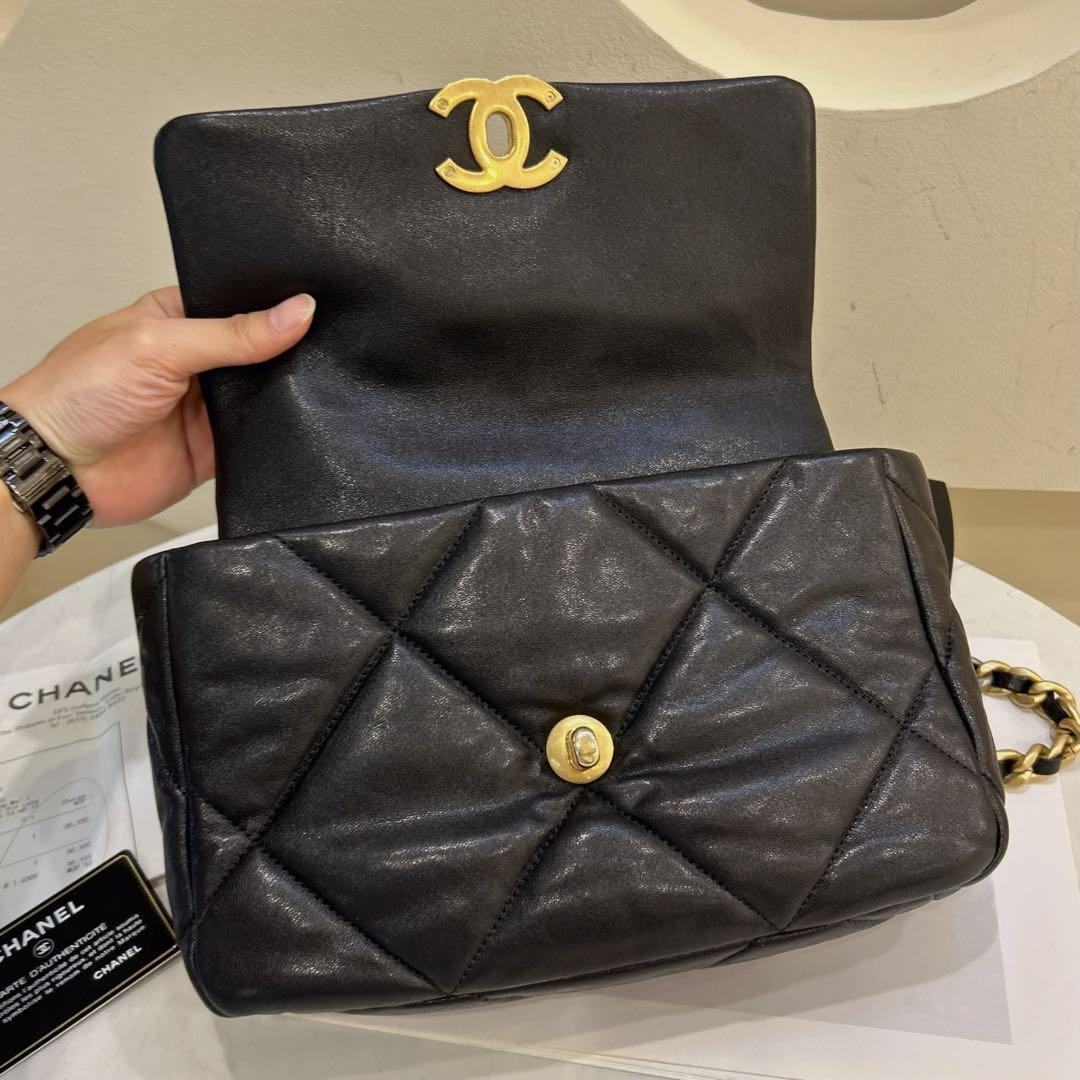 正品二手 Chanel 19bag 小号 黑金 山羊皮 斜挎包🍔98新 26*16 镭射28开 配件:卡 票。Chanel金刚款 百搭耐看