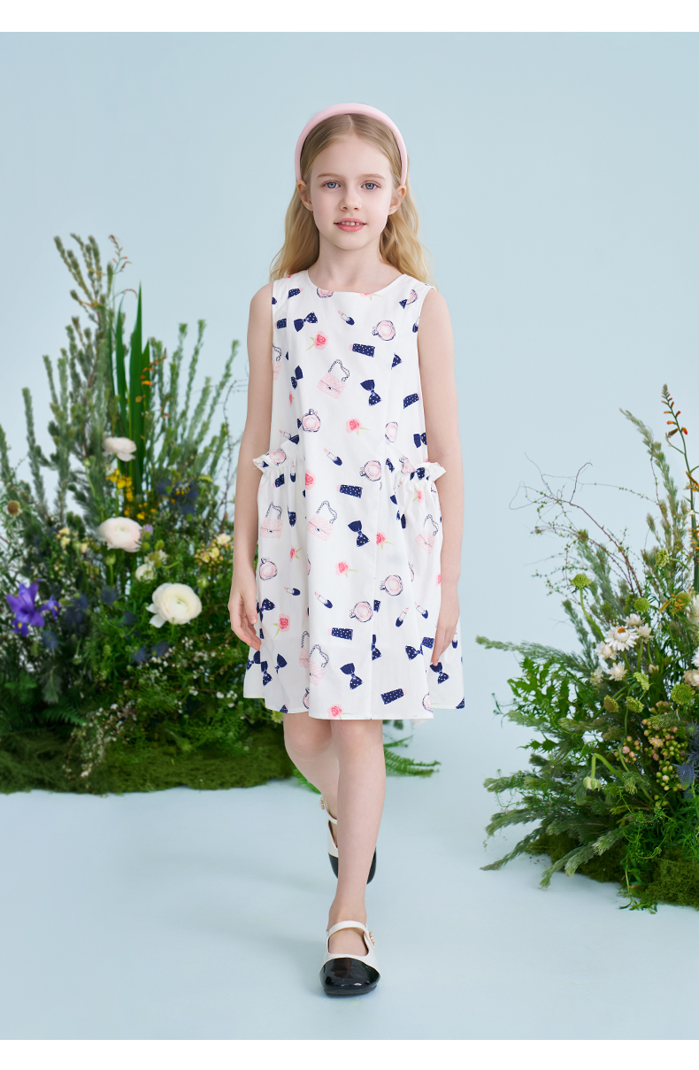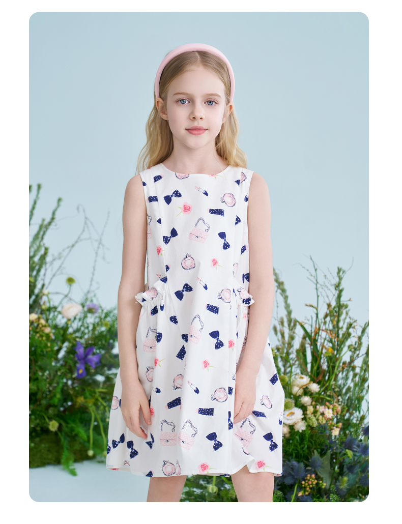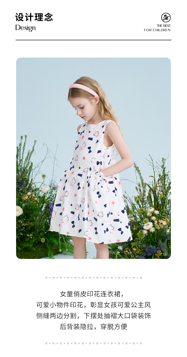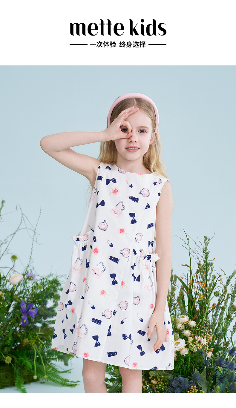 mettekids儿童连衣裙2025夏季新款女童A版印花裙中大童纯棉公主裙