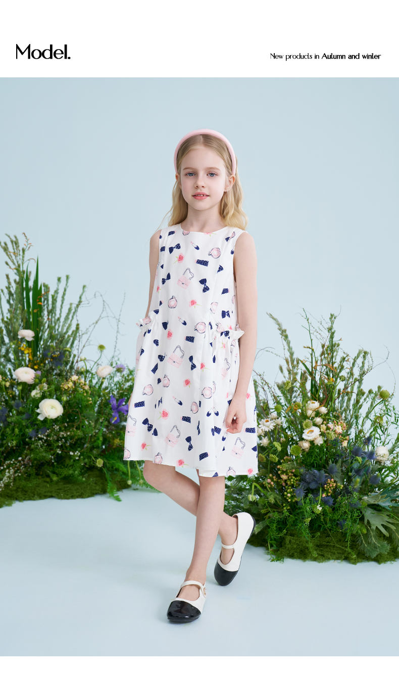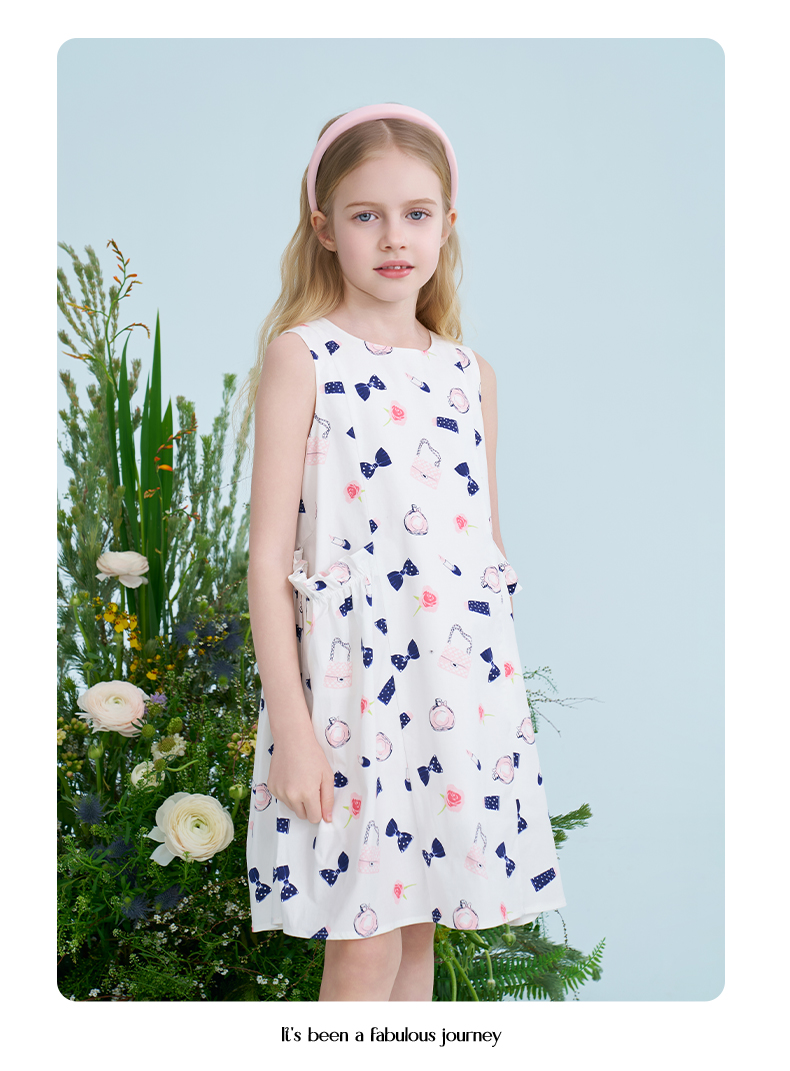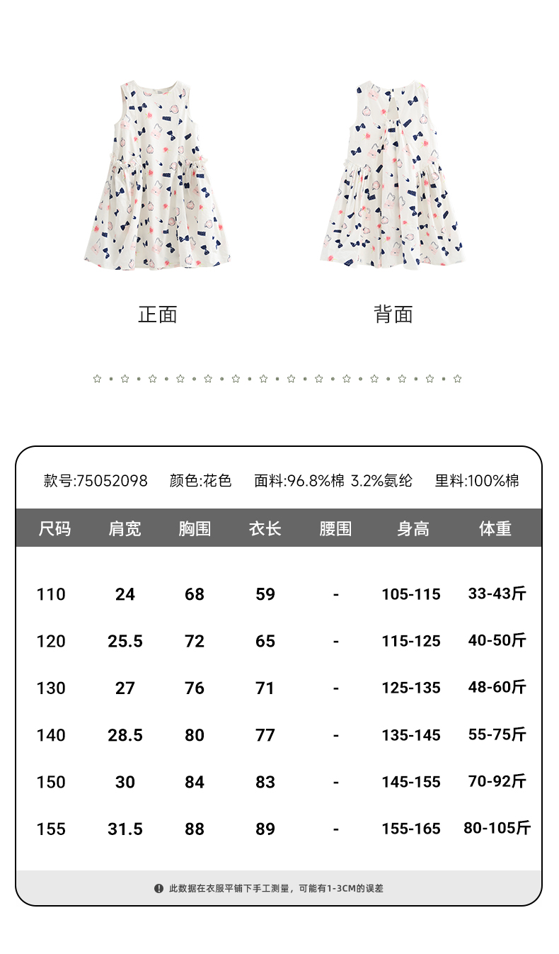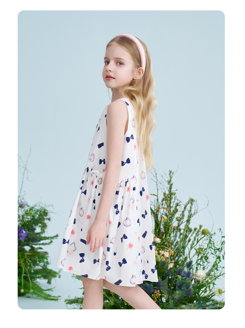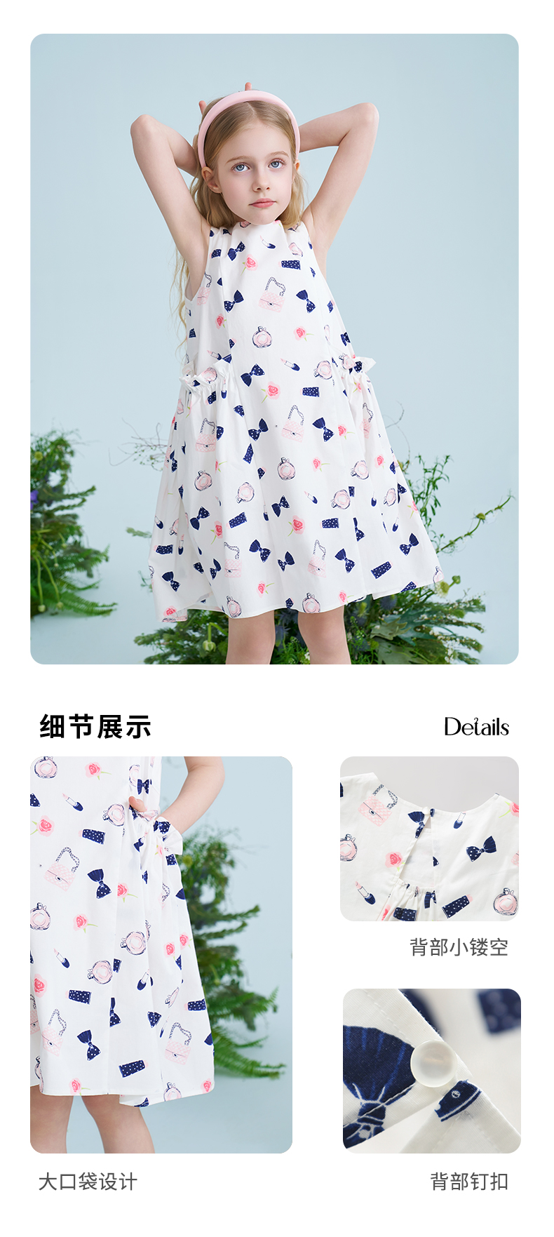 mettekids儿童连衣裙2025夏季新款女童A版印花裙中大童纯棉公主裙