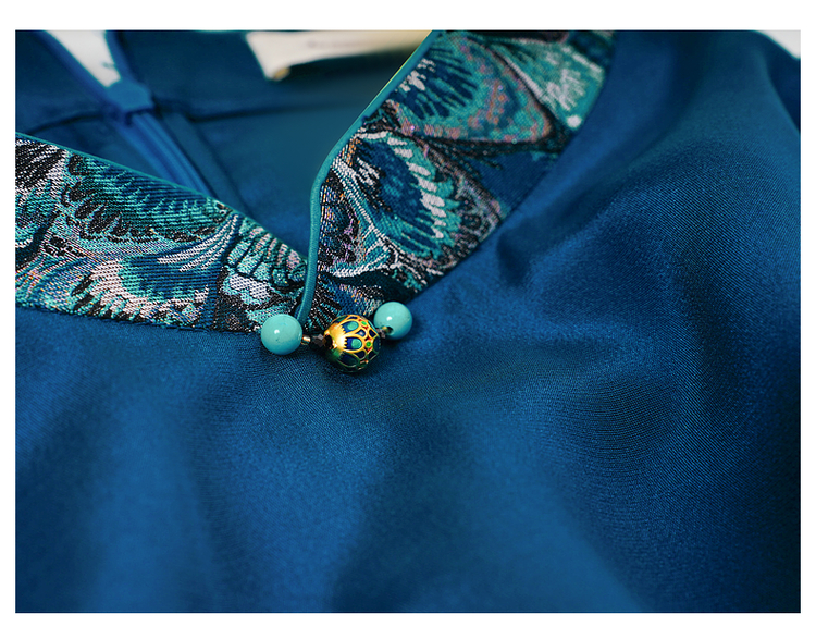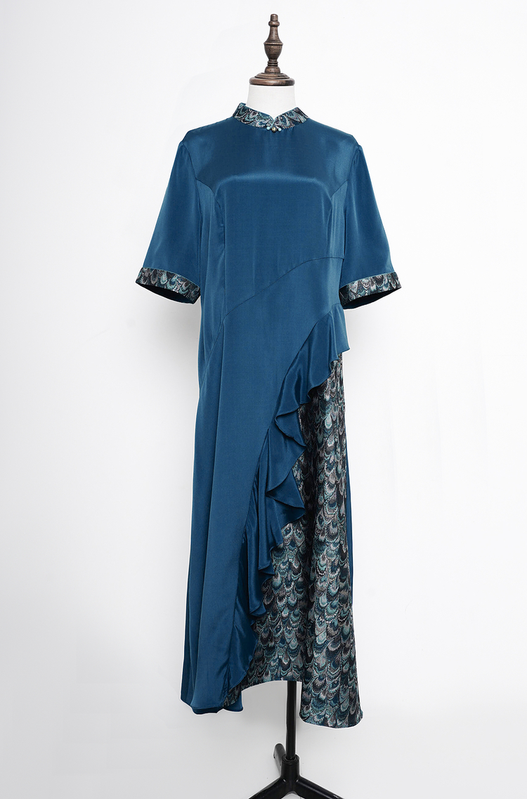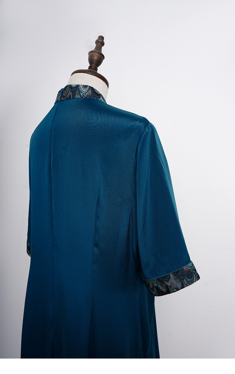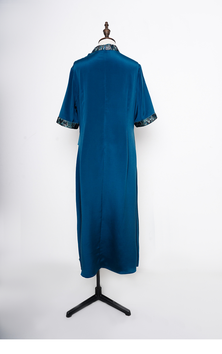 吉祥衣家新中式国风桑蚕丝裙子气质修身女装青羽拂云连衣裙