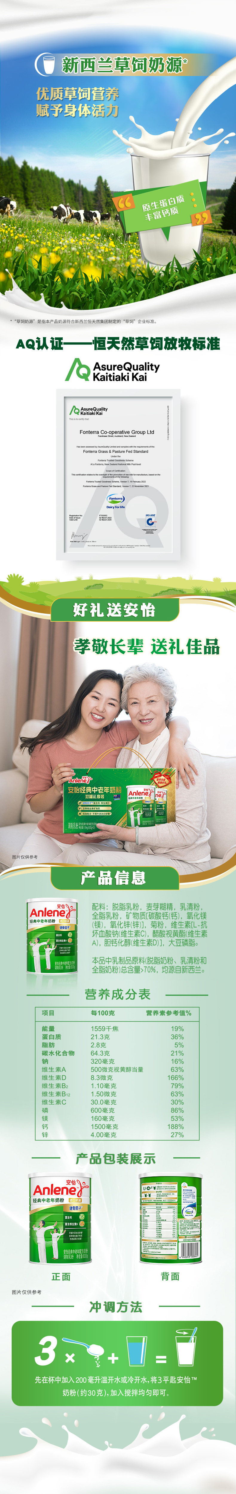 安怡经典中老年配方奶粉800g