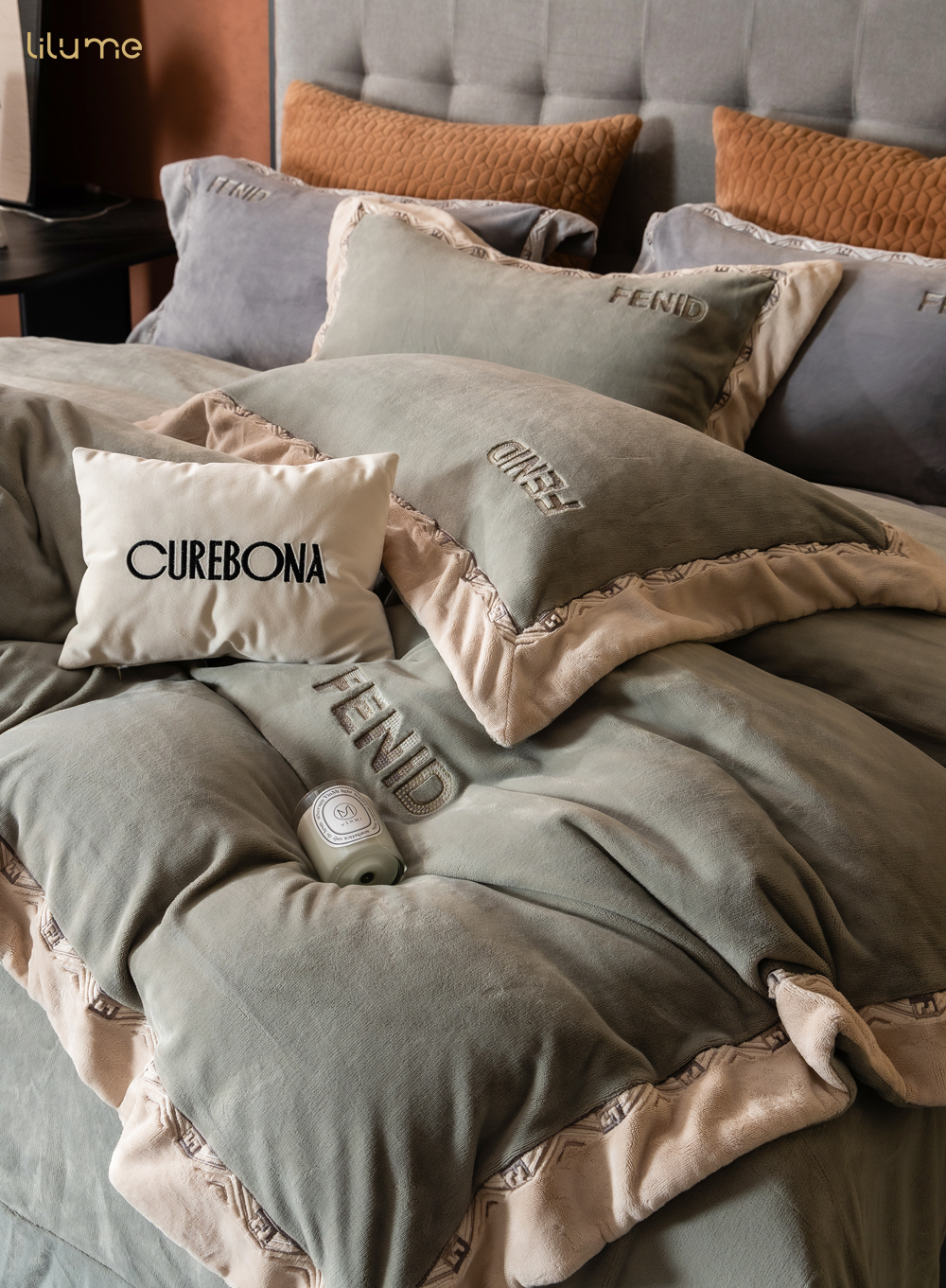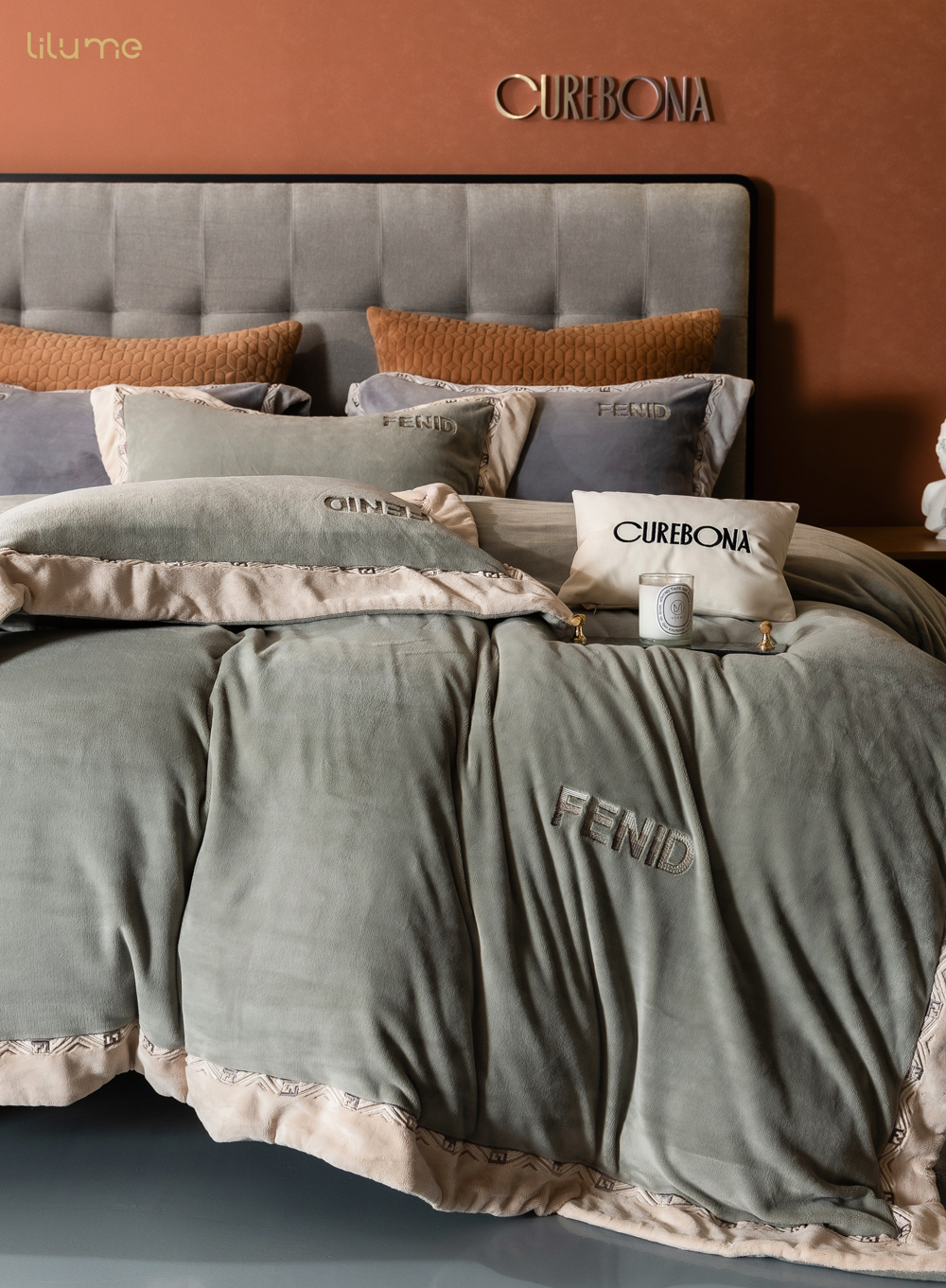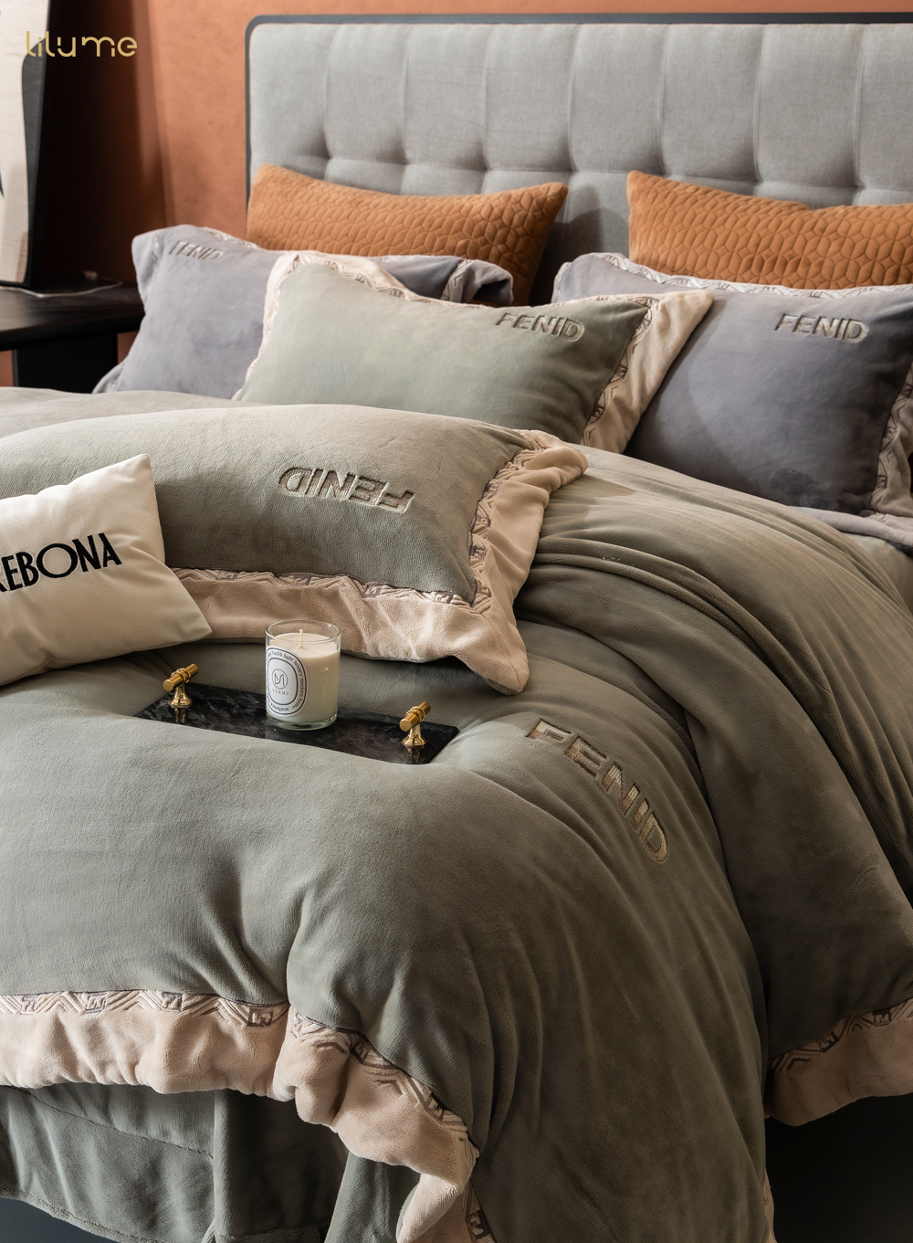 利路米秋季新款超细牛奶绒保暖四件套芬度绿