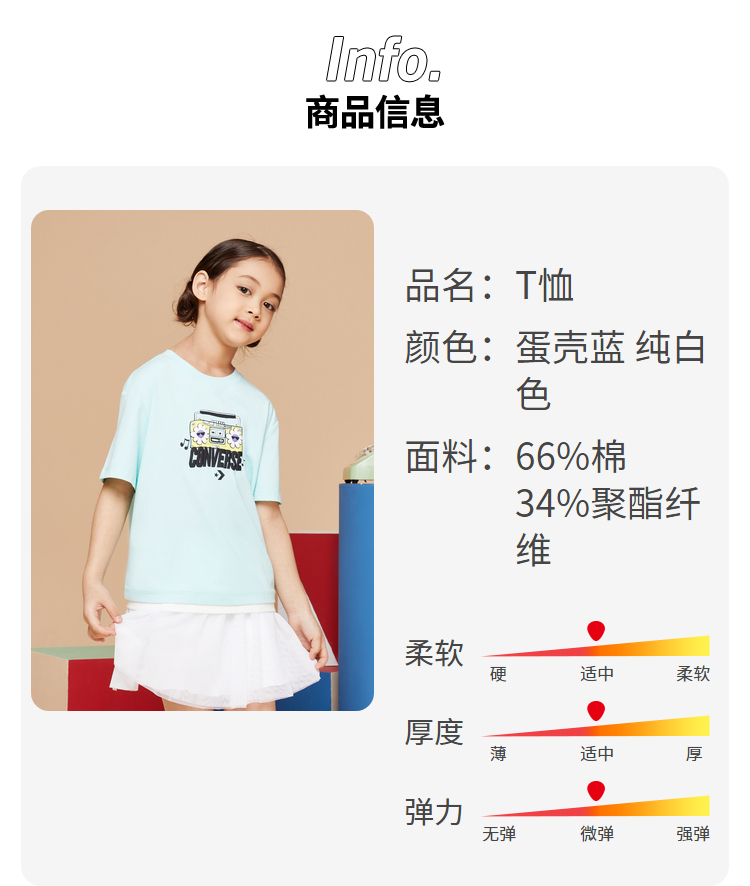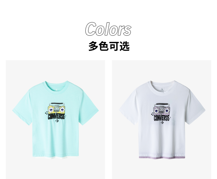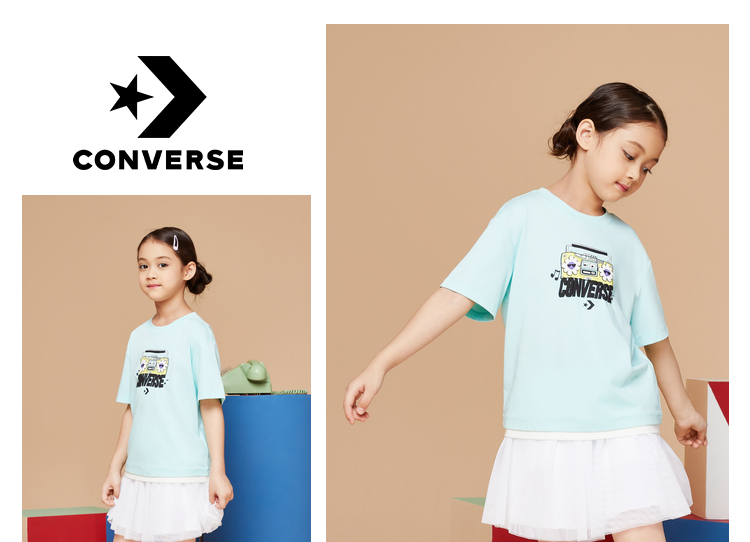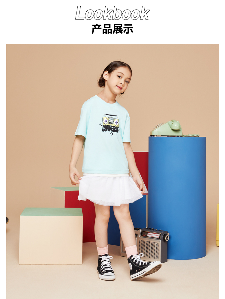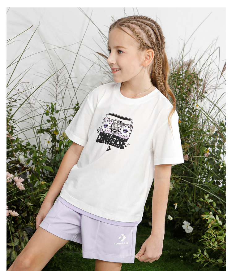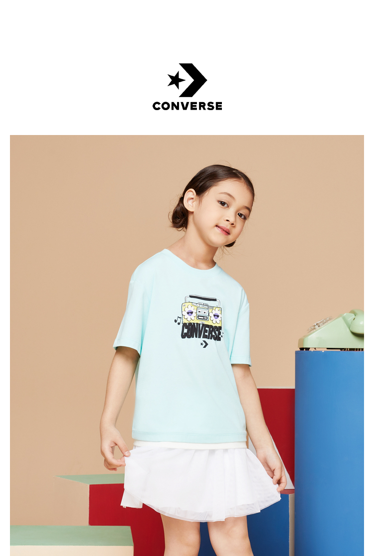Converse匡威童衣童衣夏棉质女童休闲撞色清新套头短袖T恤CV2222097