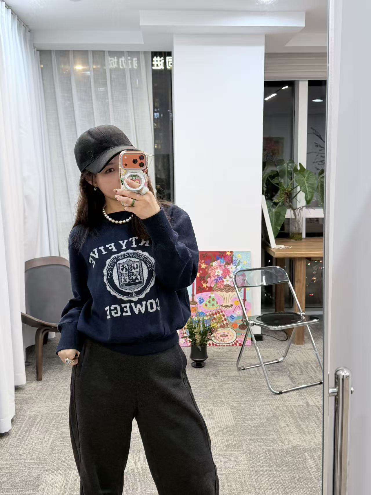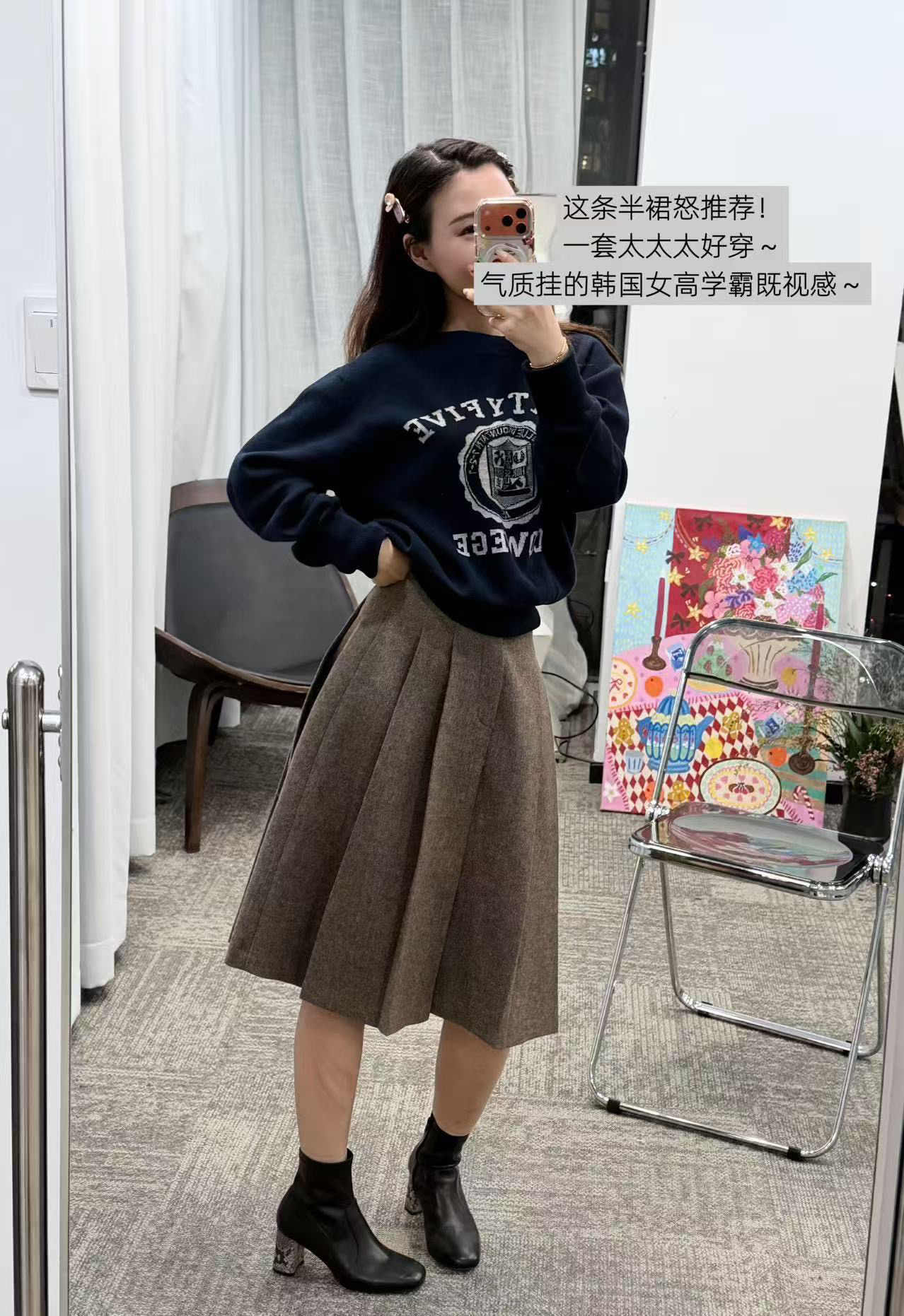 我自己穿的藏青色,配了之前那条力推的