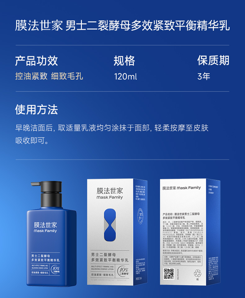 【男士新品】膜法世家男士二裂酵母多效紧致平衡精华乳120ml/瓶送男友/老公送父亲
