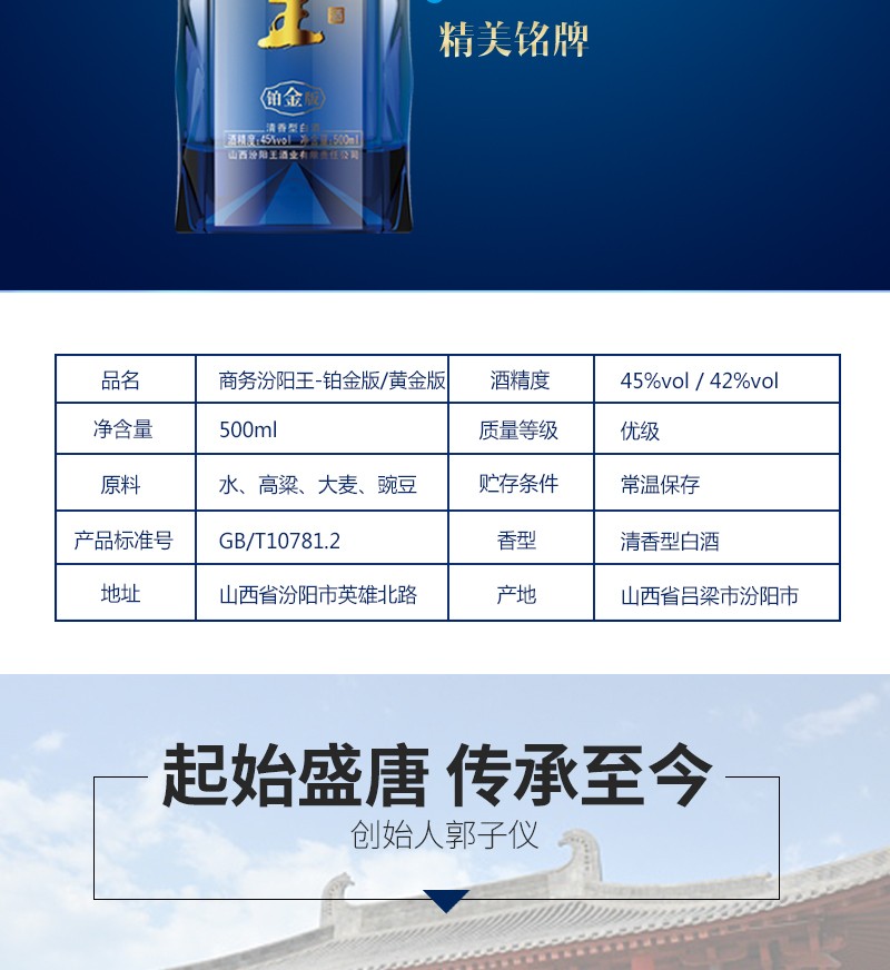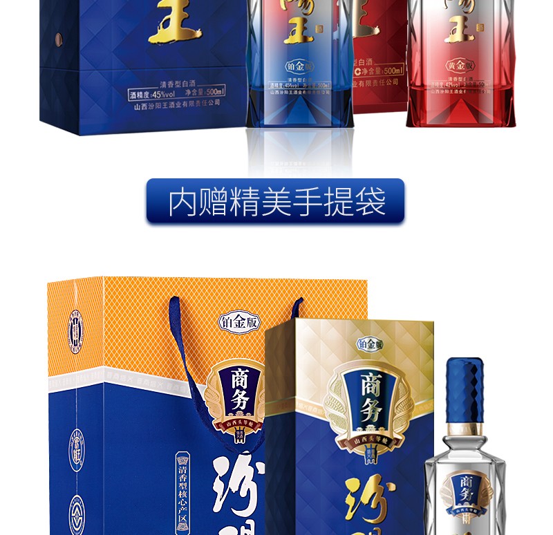 汾阳王45度铂金版商务500ml*6瓶清香型白酒整箱高端礼盒装