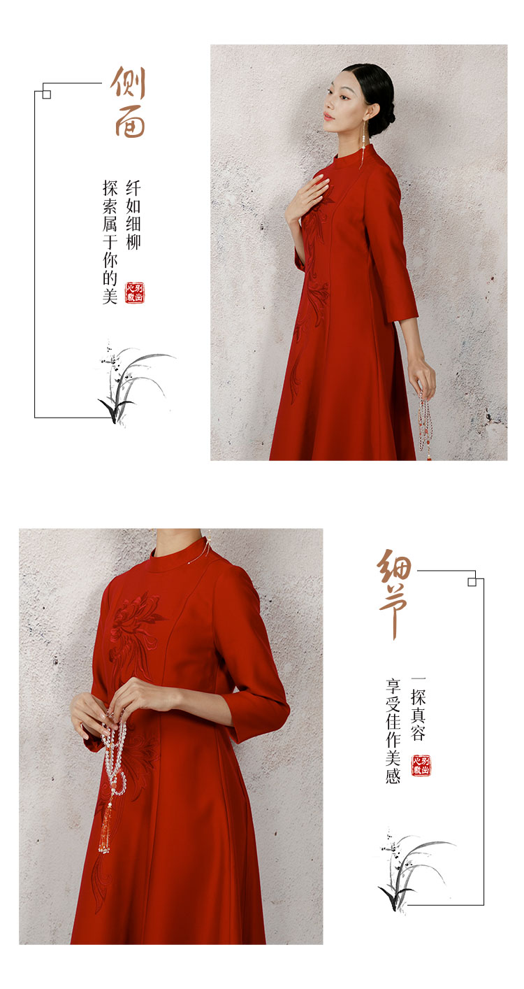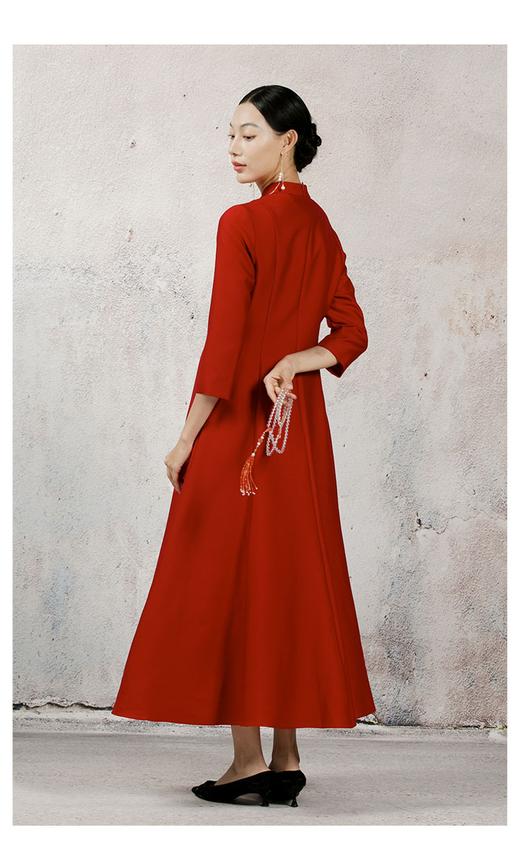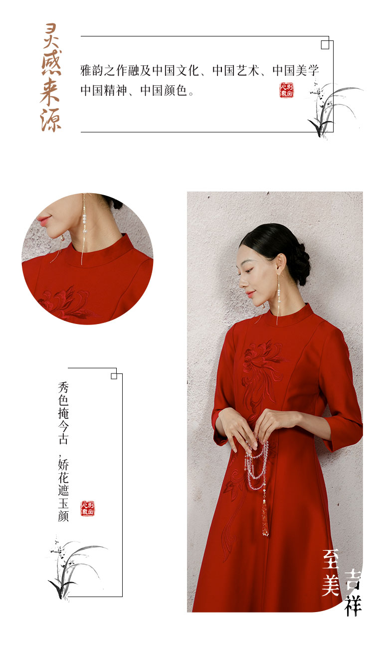 吉祥衣家中国风新中式复古女装照新妆红色气质优雅高级感连衣裙