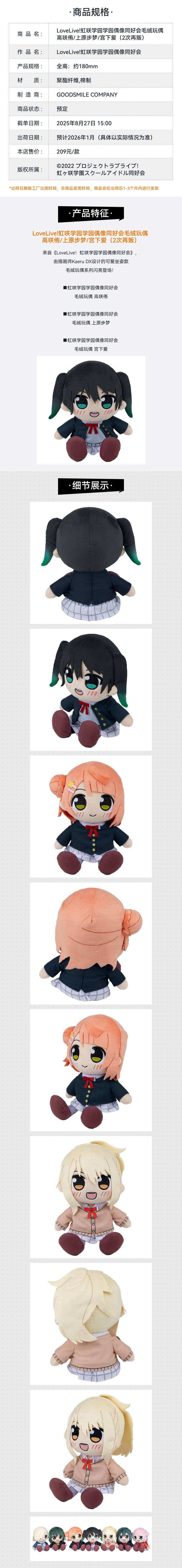 【GSC现货】LoveLive!虹咲学园学园偶像同好会毛绒玩偶 高咲侑/上原步梦/宫下爱