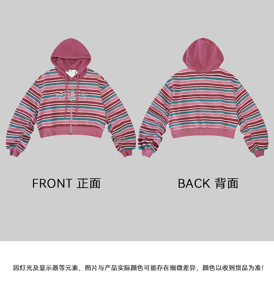 PX女装春季新款 短款连帽条纹撞色休闲卫衣 824117825 粉色