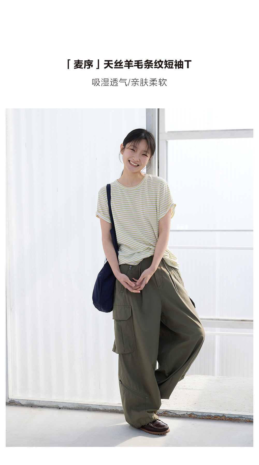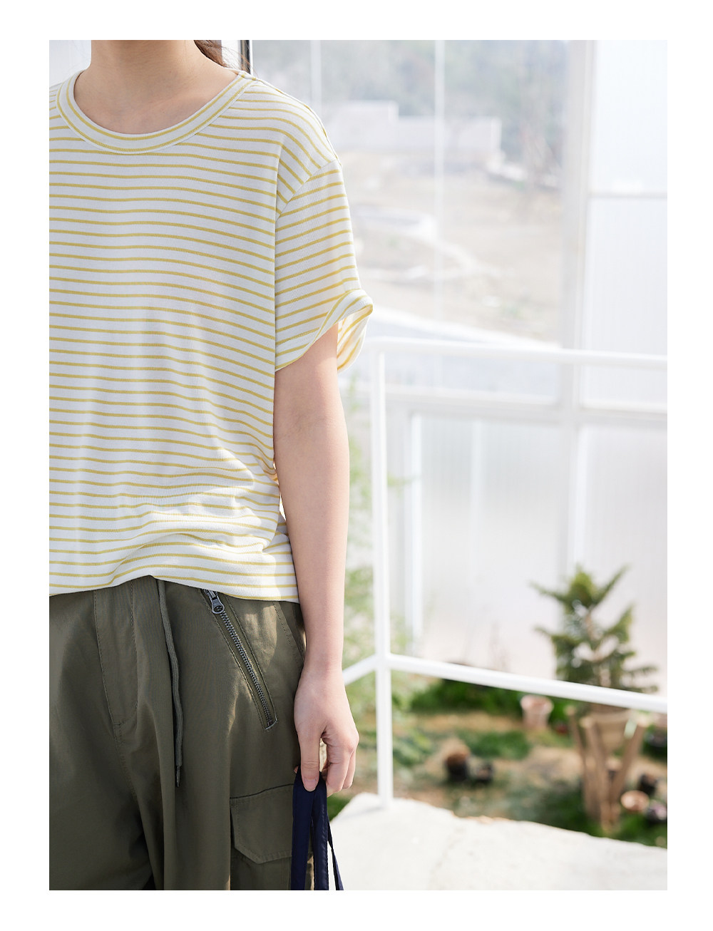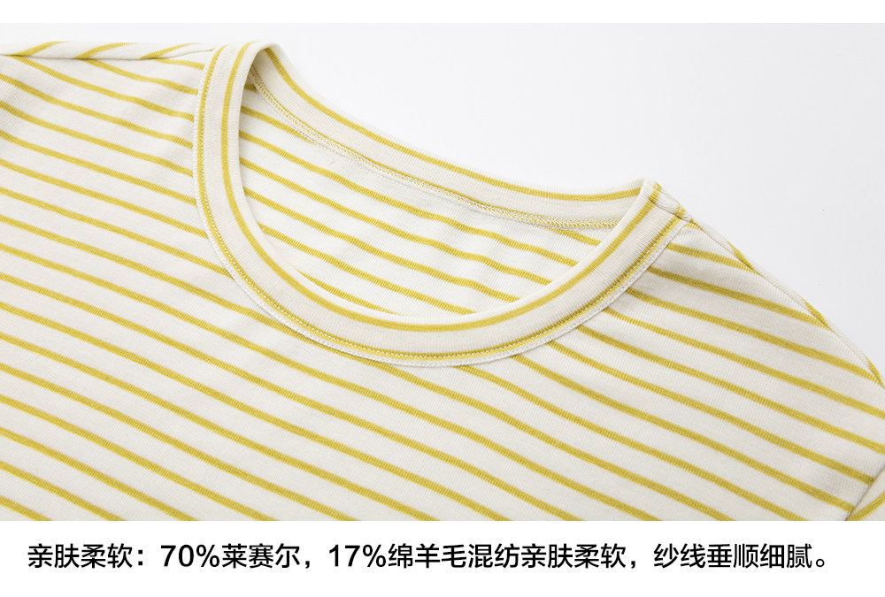 步履不停/6A18163C/天丝羊毛条纹短袖T