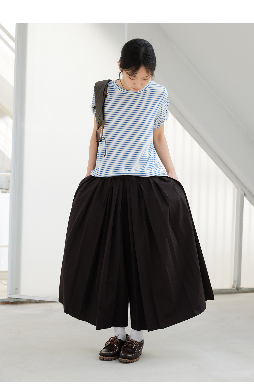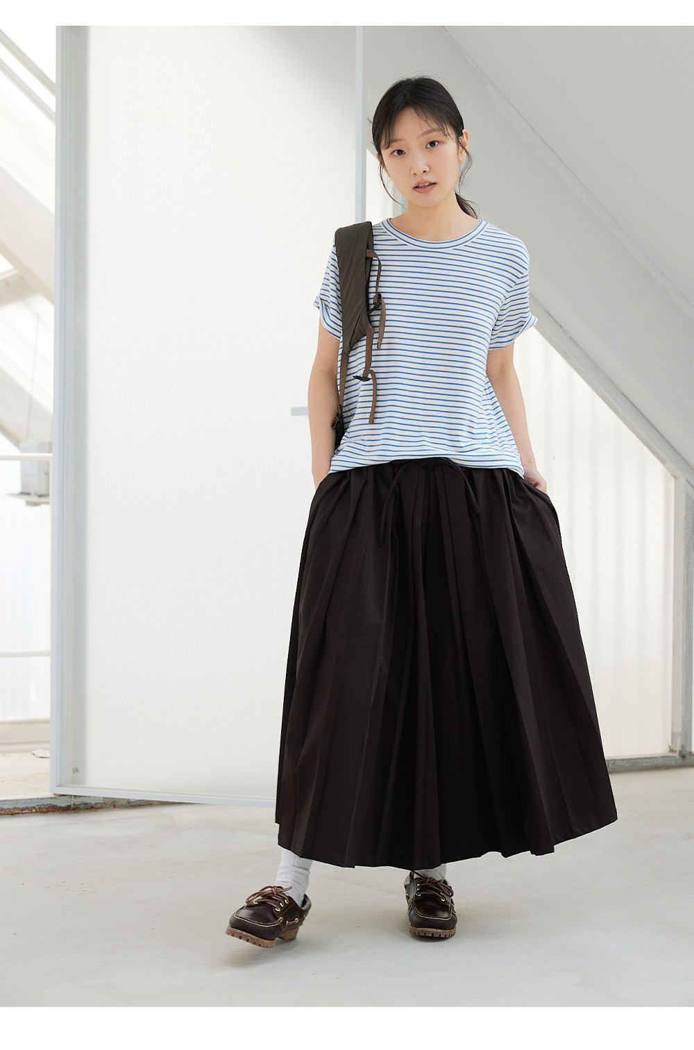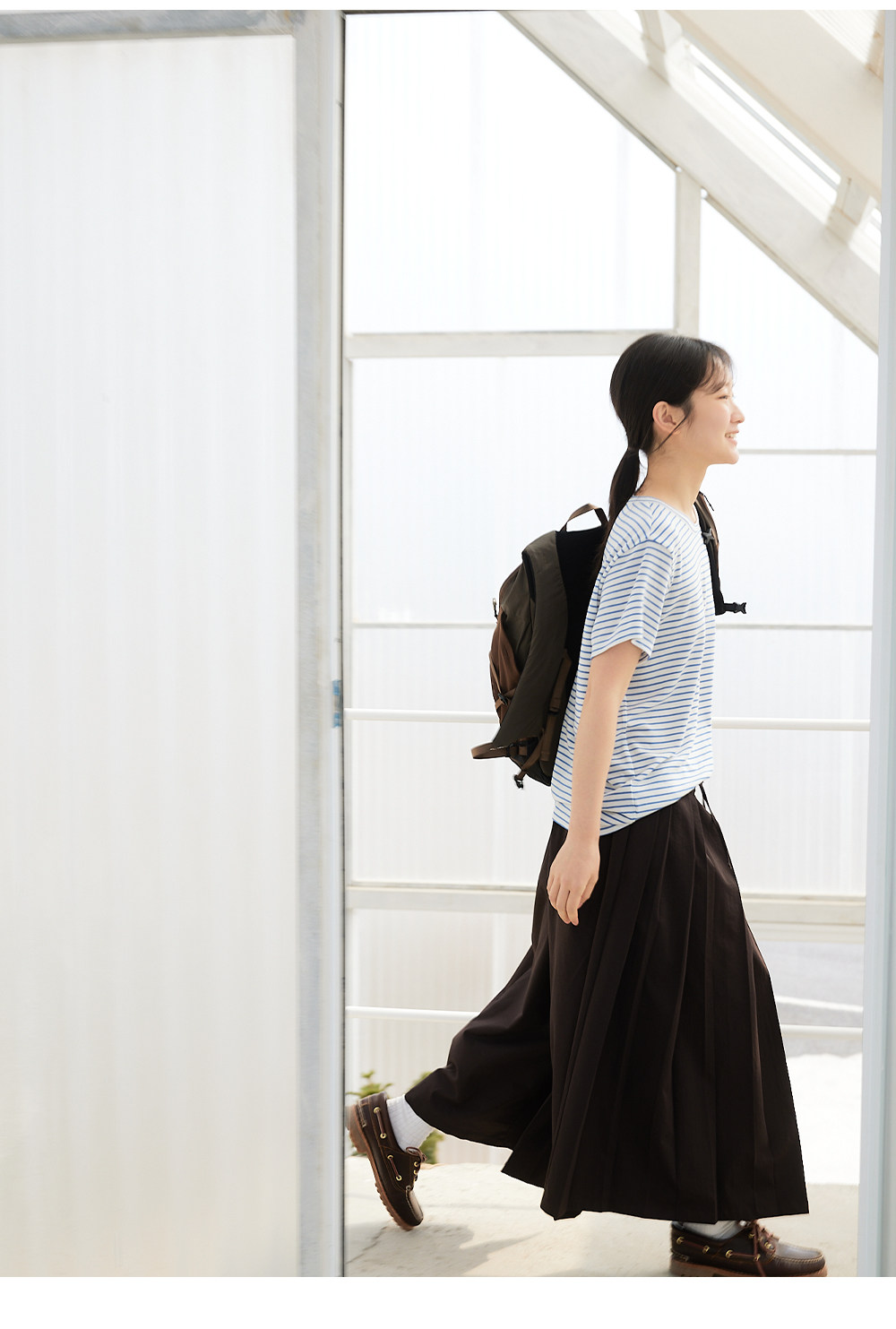 步履不停/6A18163C/天丝羊毛条纹短袖T