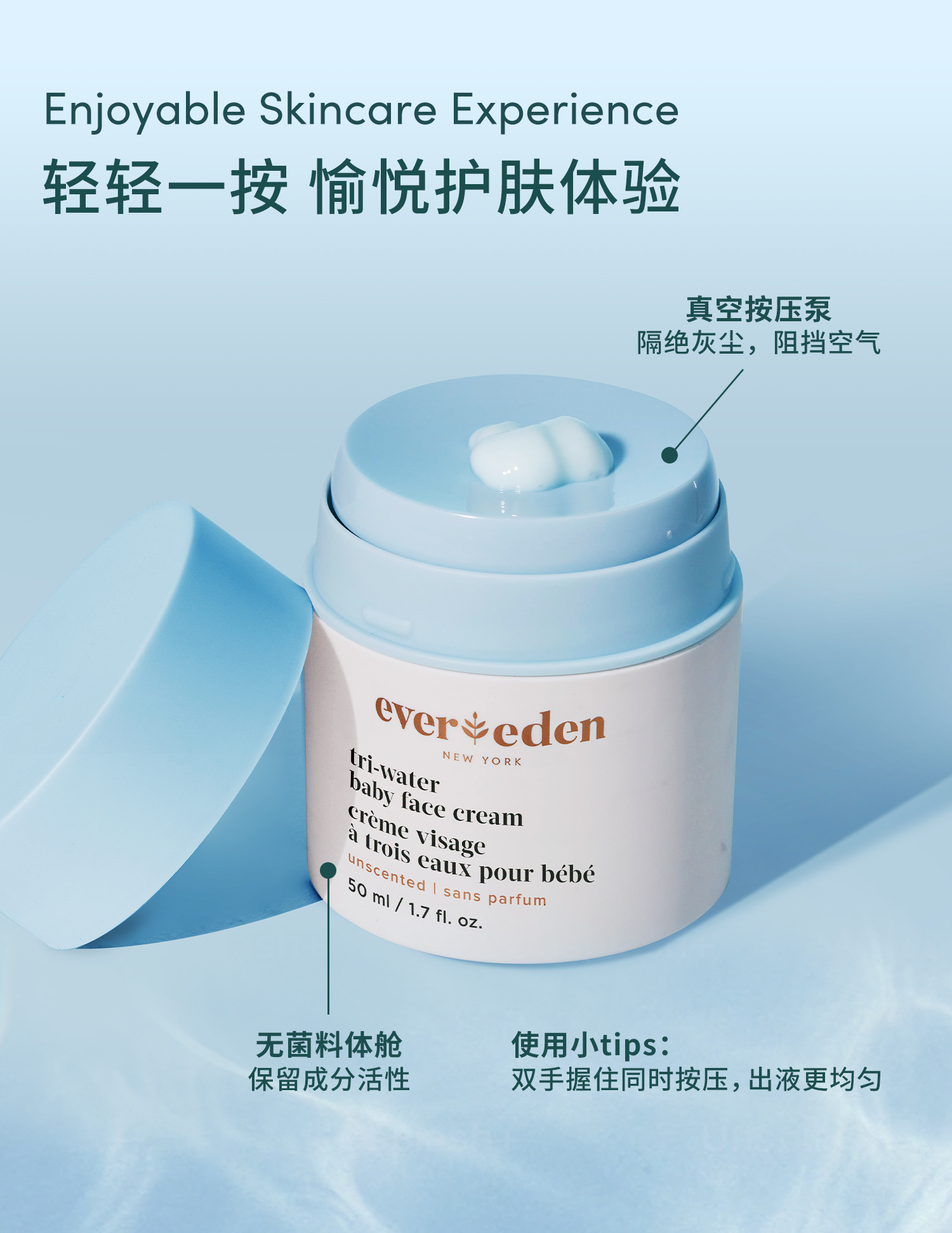 Evereden安唯伊 婴儿小蓝冻面霜 宝宝晒后水润保湿水凝脸部润肤霜 50ml 0岁+