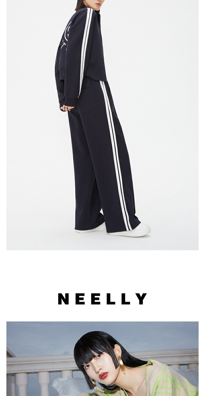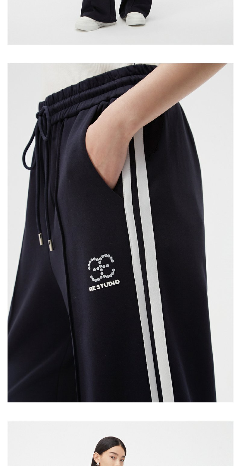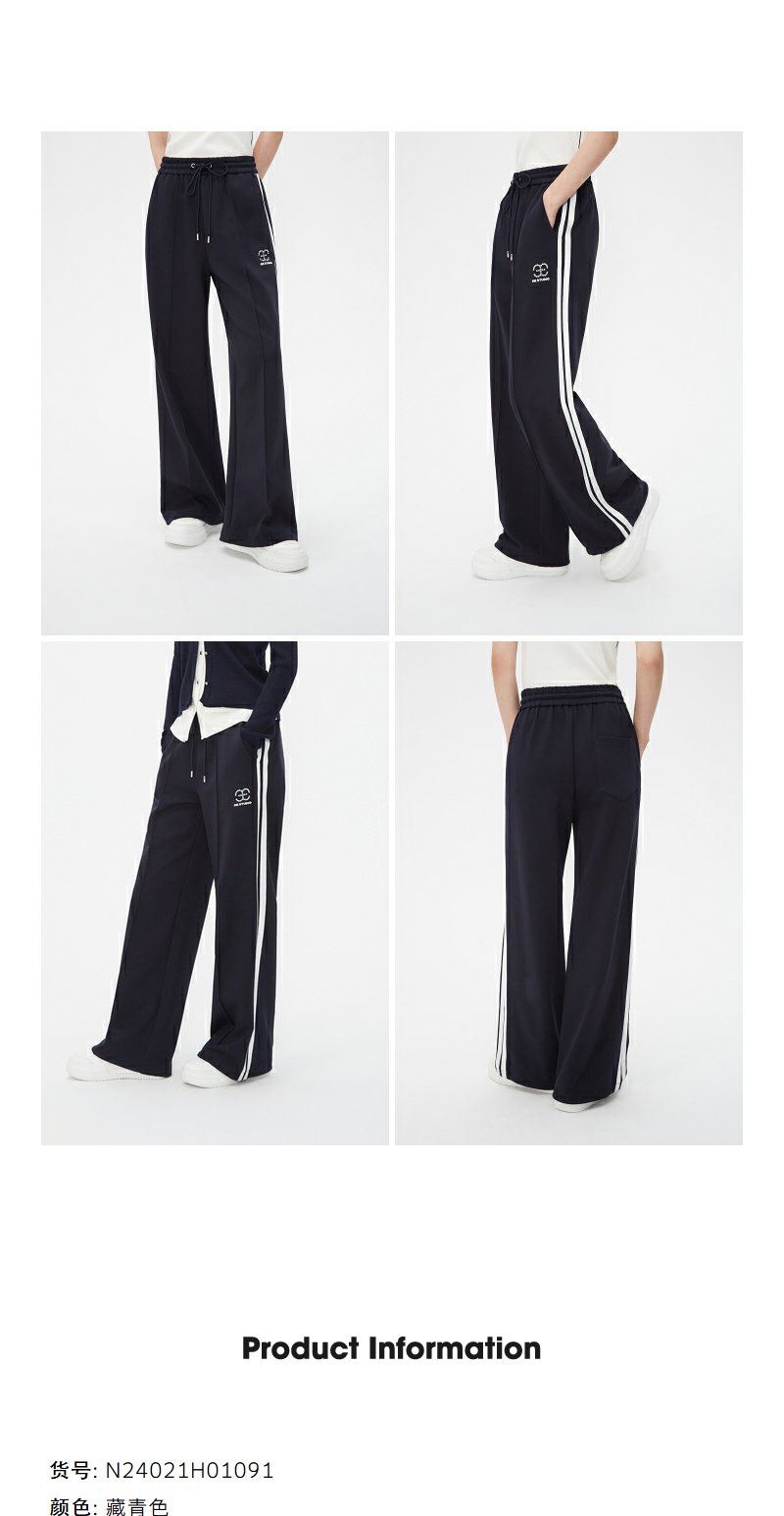NEELLY纳俪商场同款藏青色运动风阔腿裤女舒适高腰抽绳休闲直筒裤N24021H01091