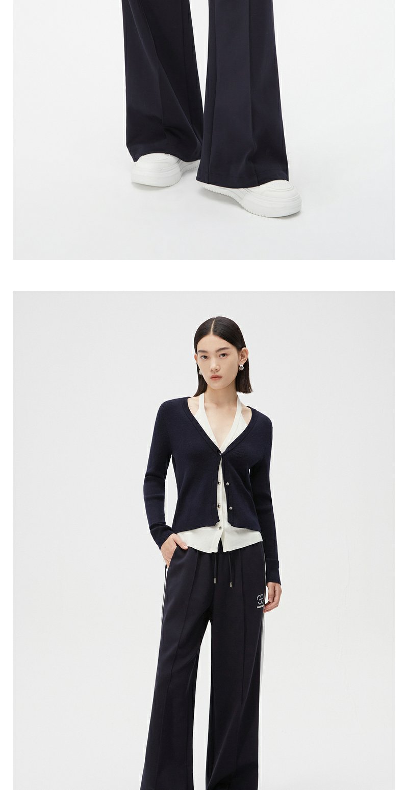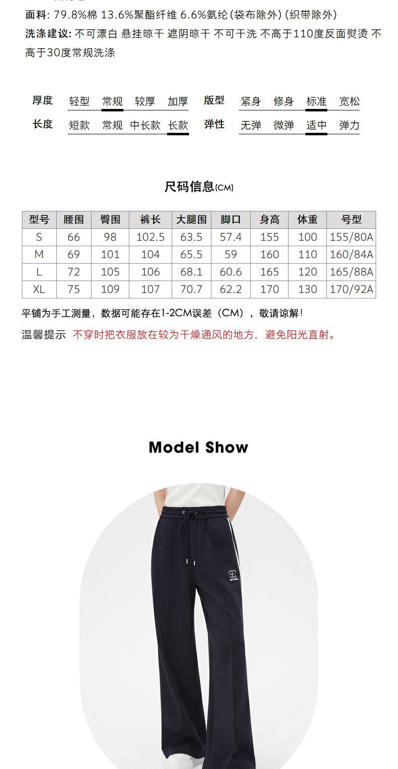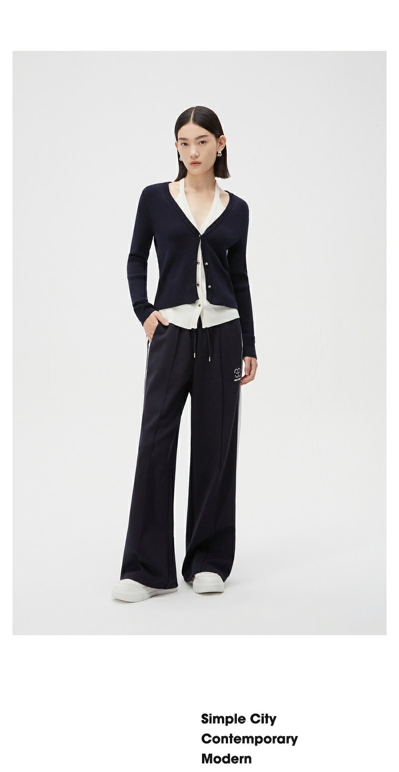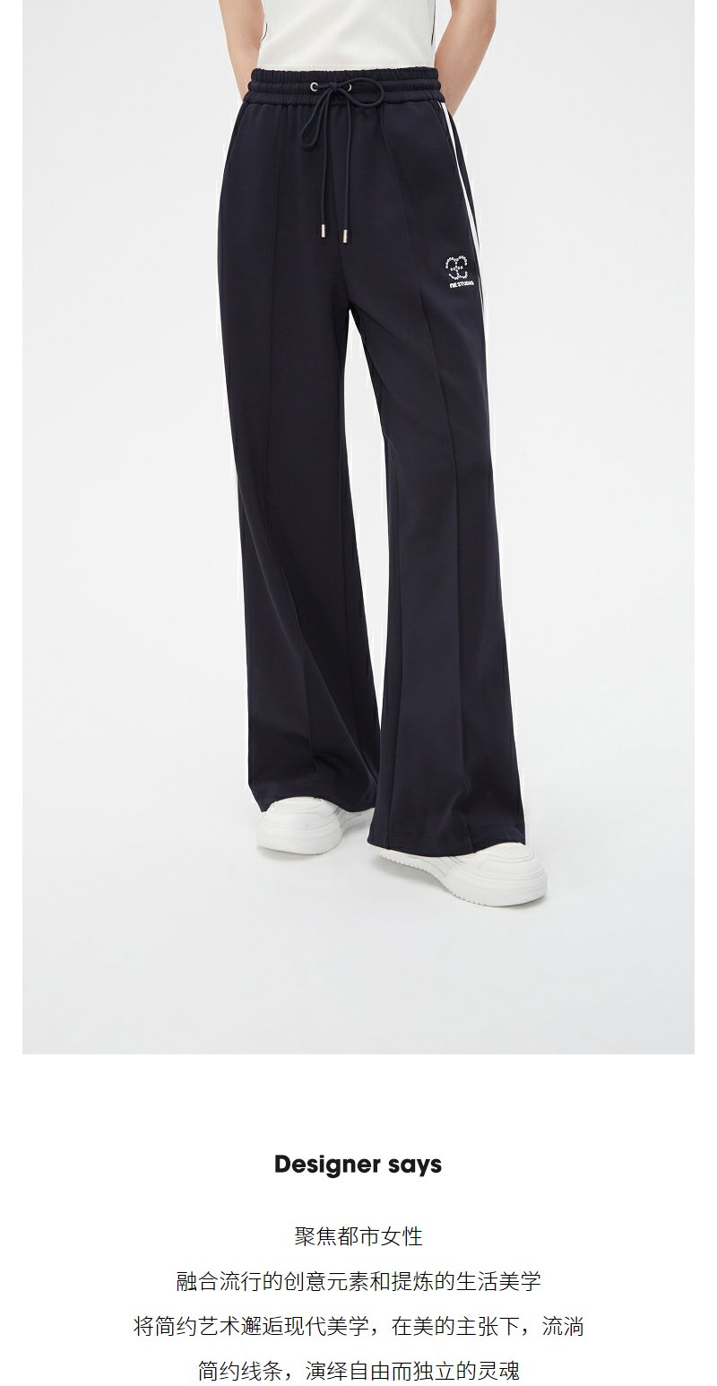 NEELLY纳俪商场同款藏青色运动风阔腿裤女舒适高腰抽绳休闲直筒裤N24021H01091