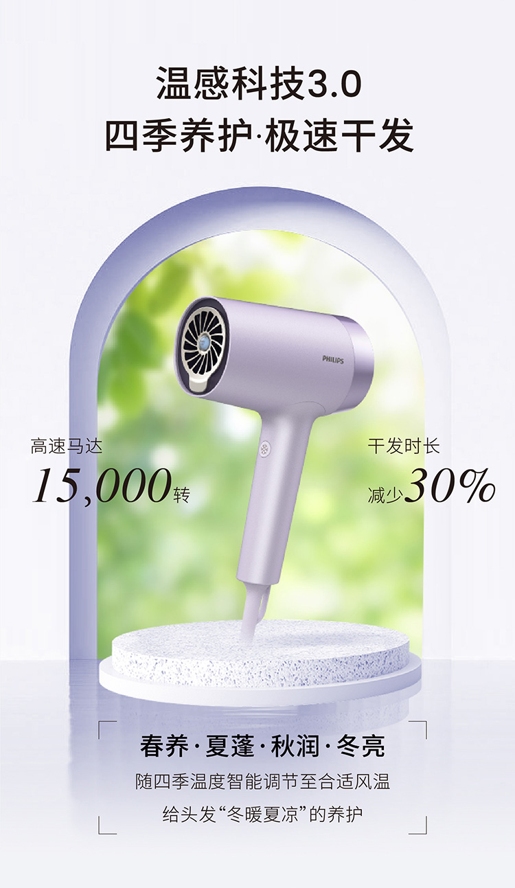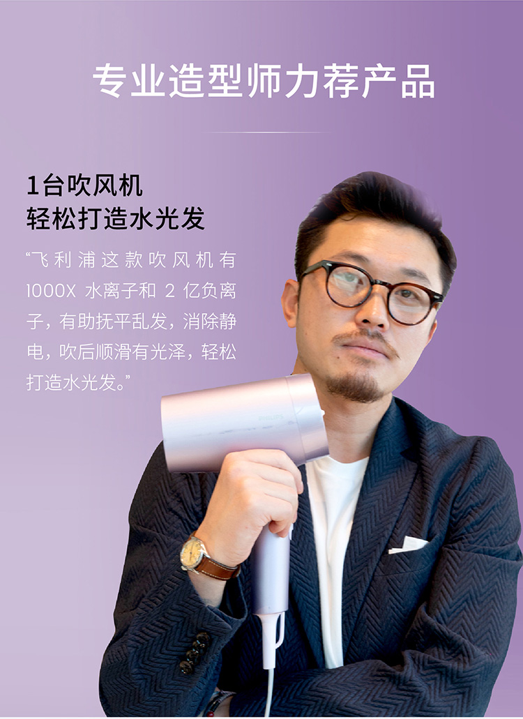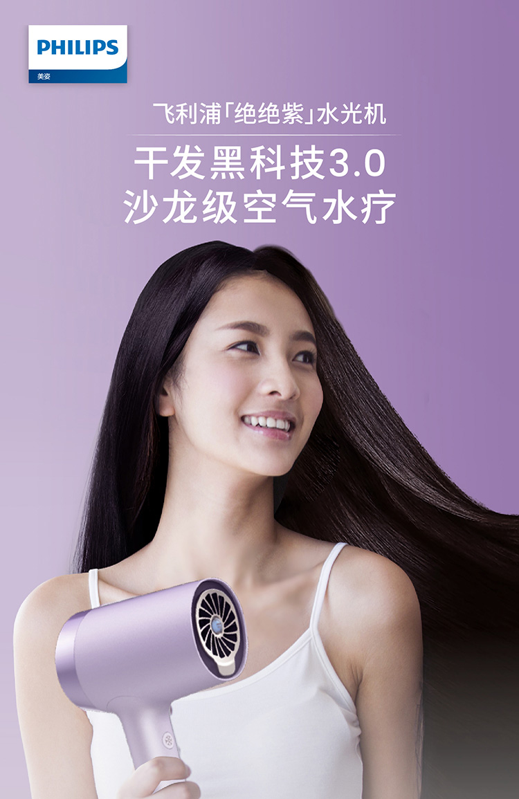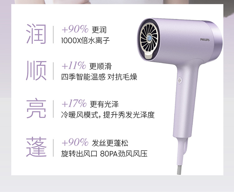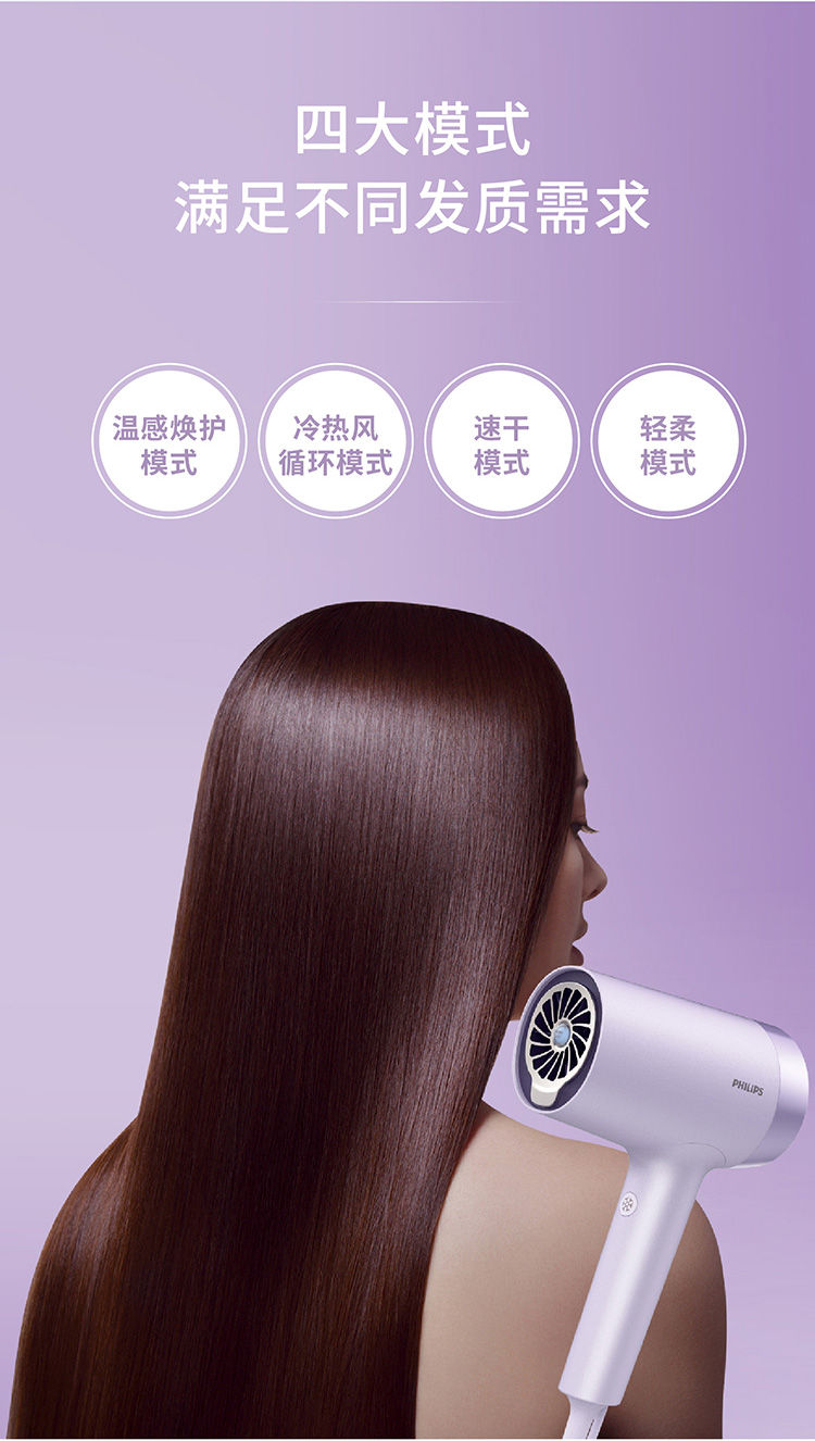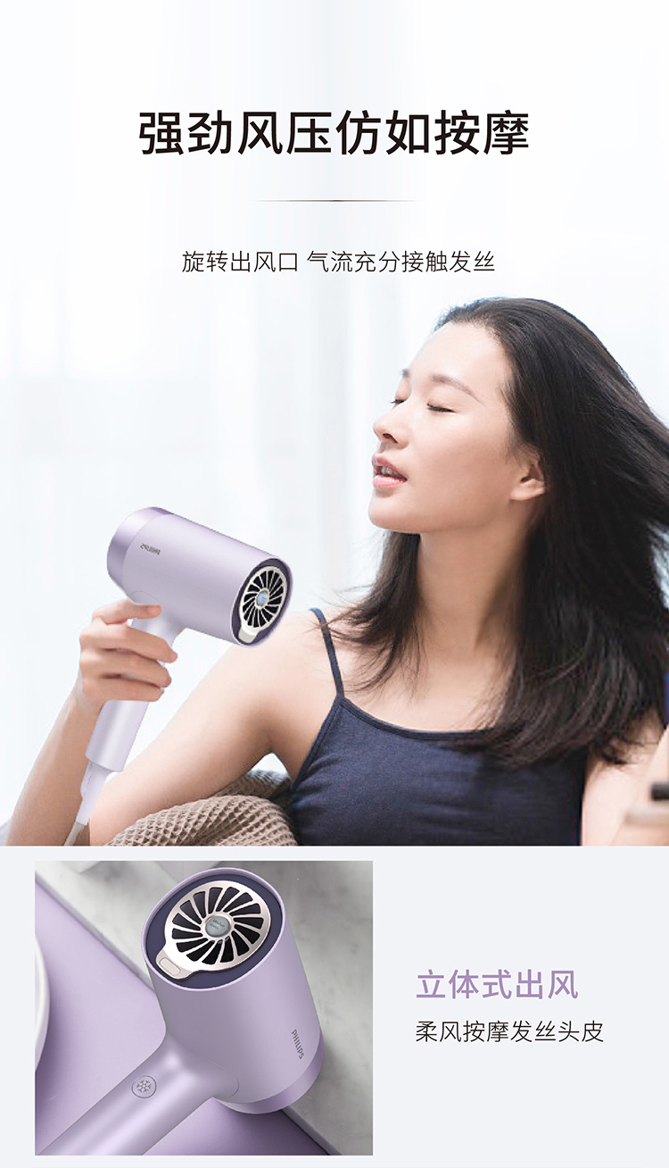 飞利浦PHILIPS电吹风机2亿级负离子1千倍水离子 护发高速大功率绝绝紫水光机 BHD720/05