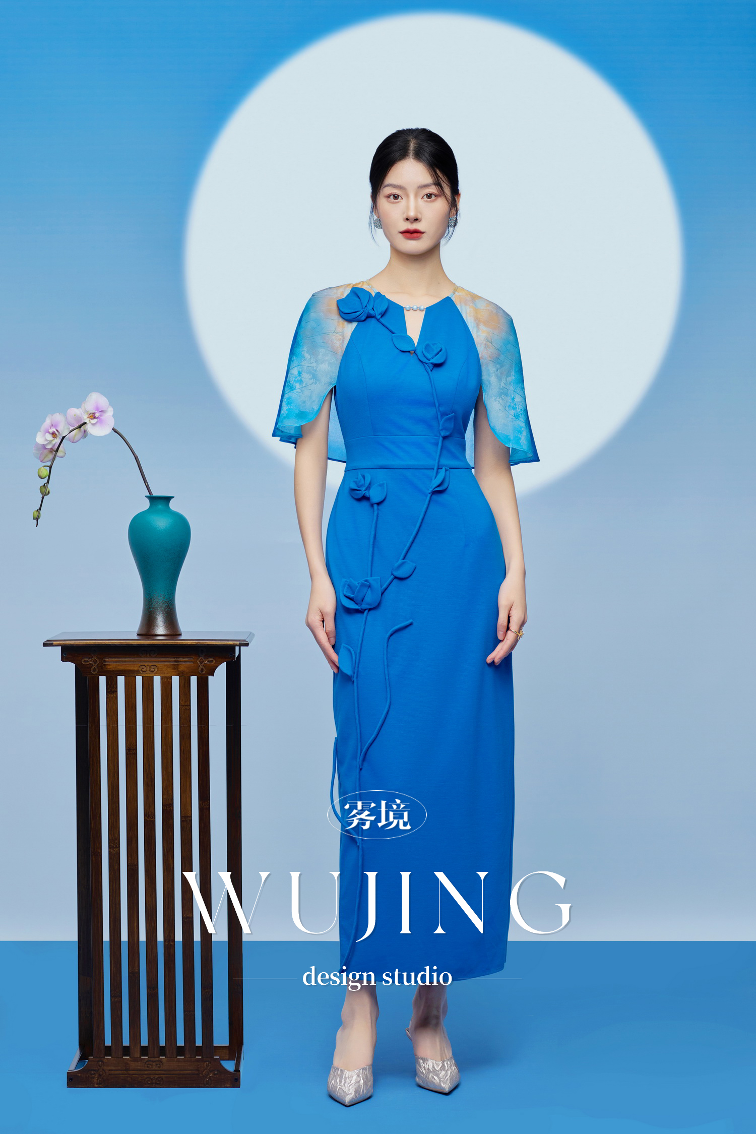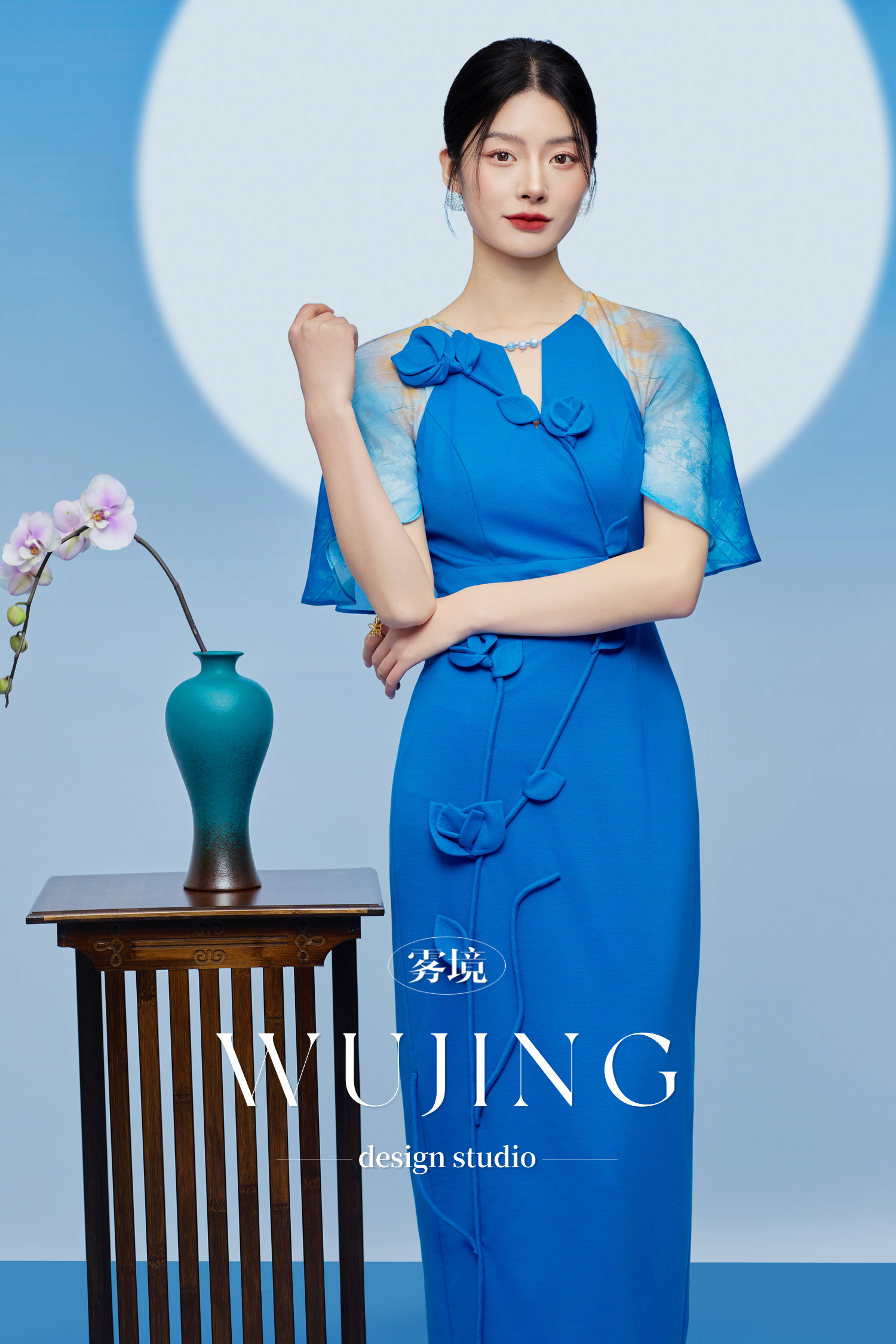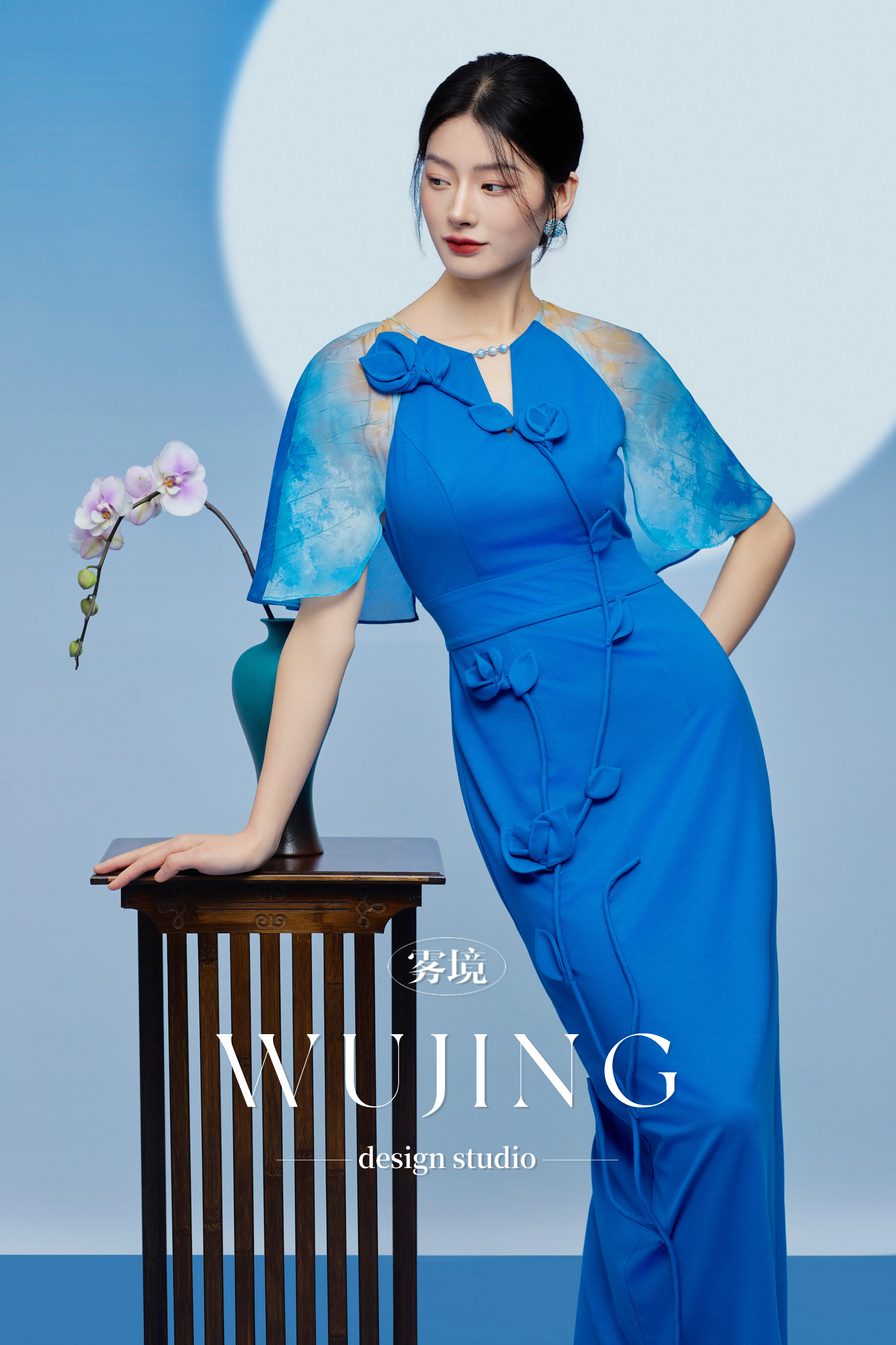 3205174 琉璃蓝梦 重磅乔琪纱定位印花/超柔进口针织料连衣裙 雾境