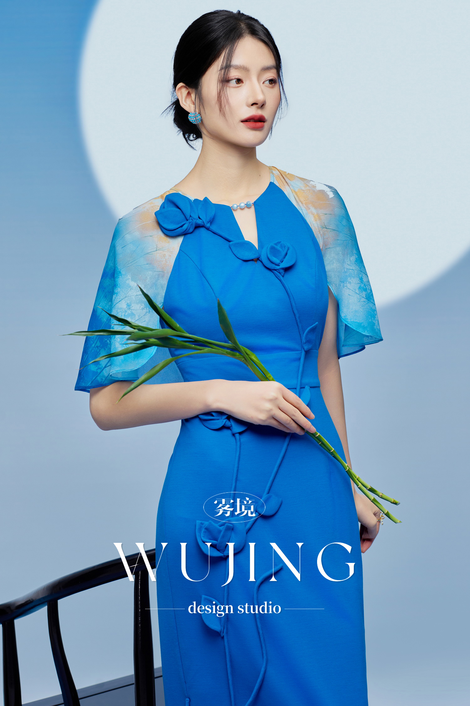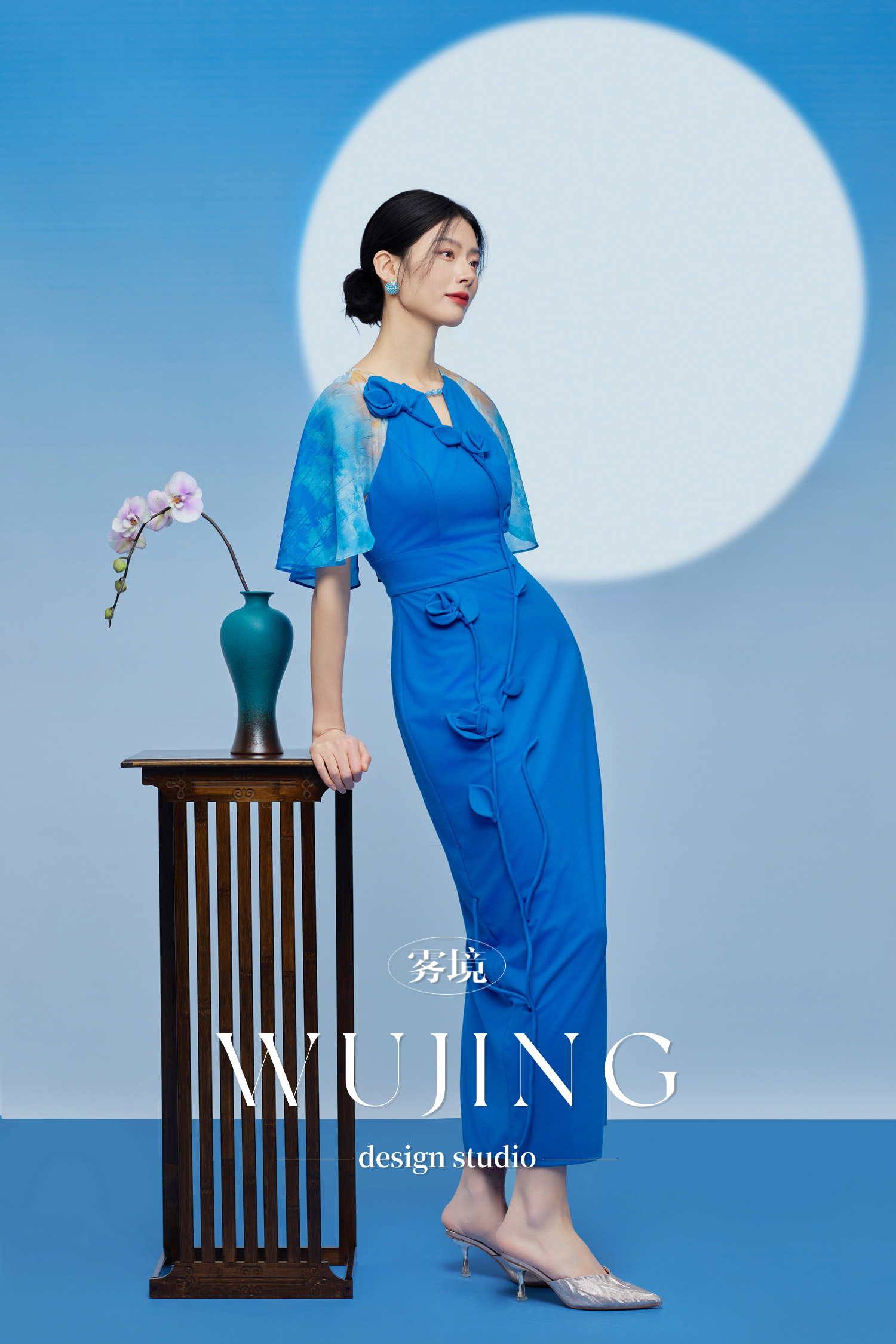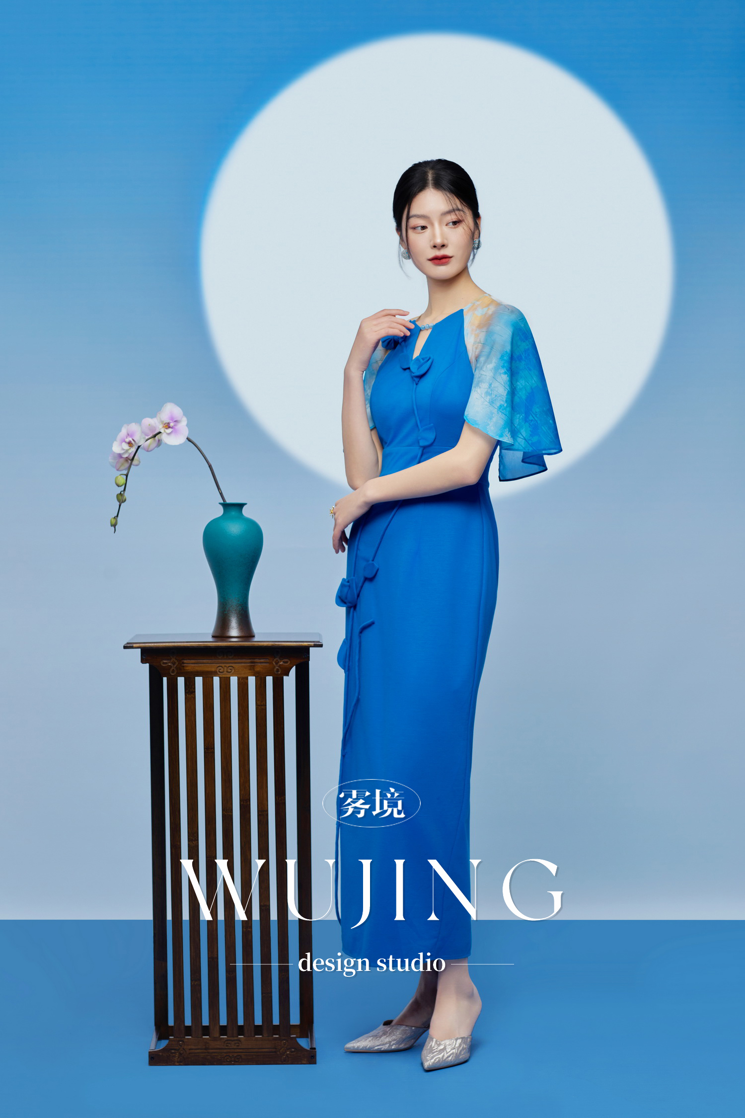 3205174 琉璃蓝梦 重磅乔琪纱定位印花/超柔进口针织料连衣裙 雾境