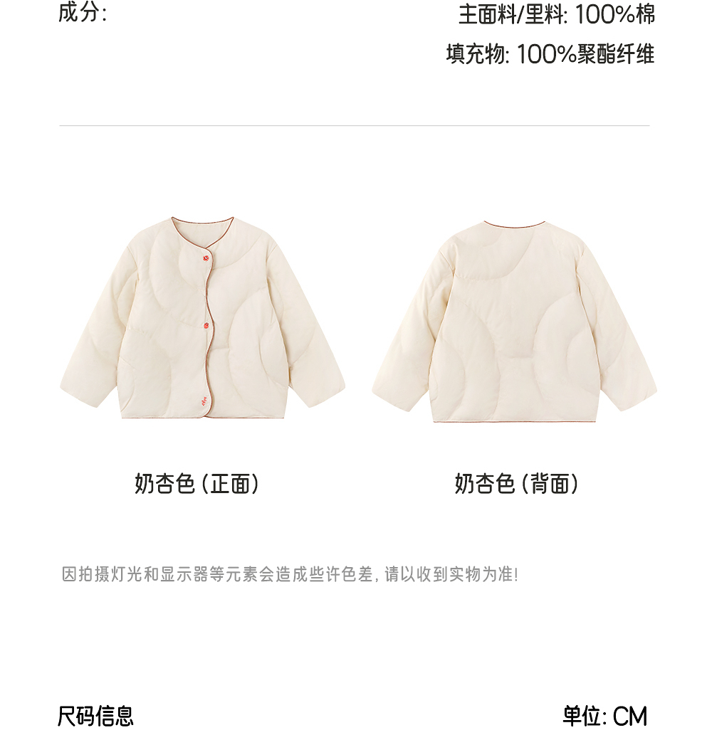 英氏儿童棉服冬季外套薄款舒适保暖女孩新款内搭内胆YRWQJ4R111A
