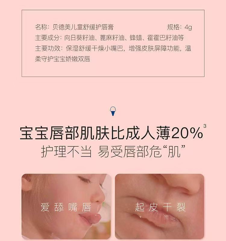 贝德美儿童润唇膏保湿滋润防干裂