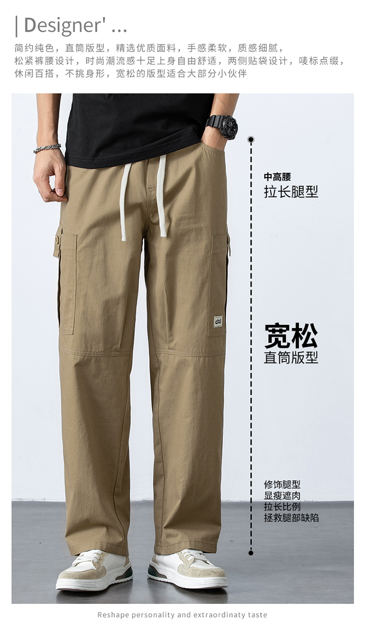 赤兔嗨购纯棉休闲裤男宽松直筒男裤2024年新款直筒宽松工装裤