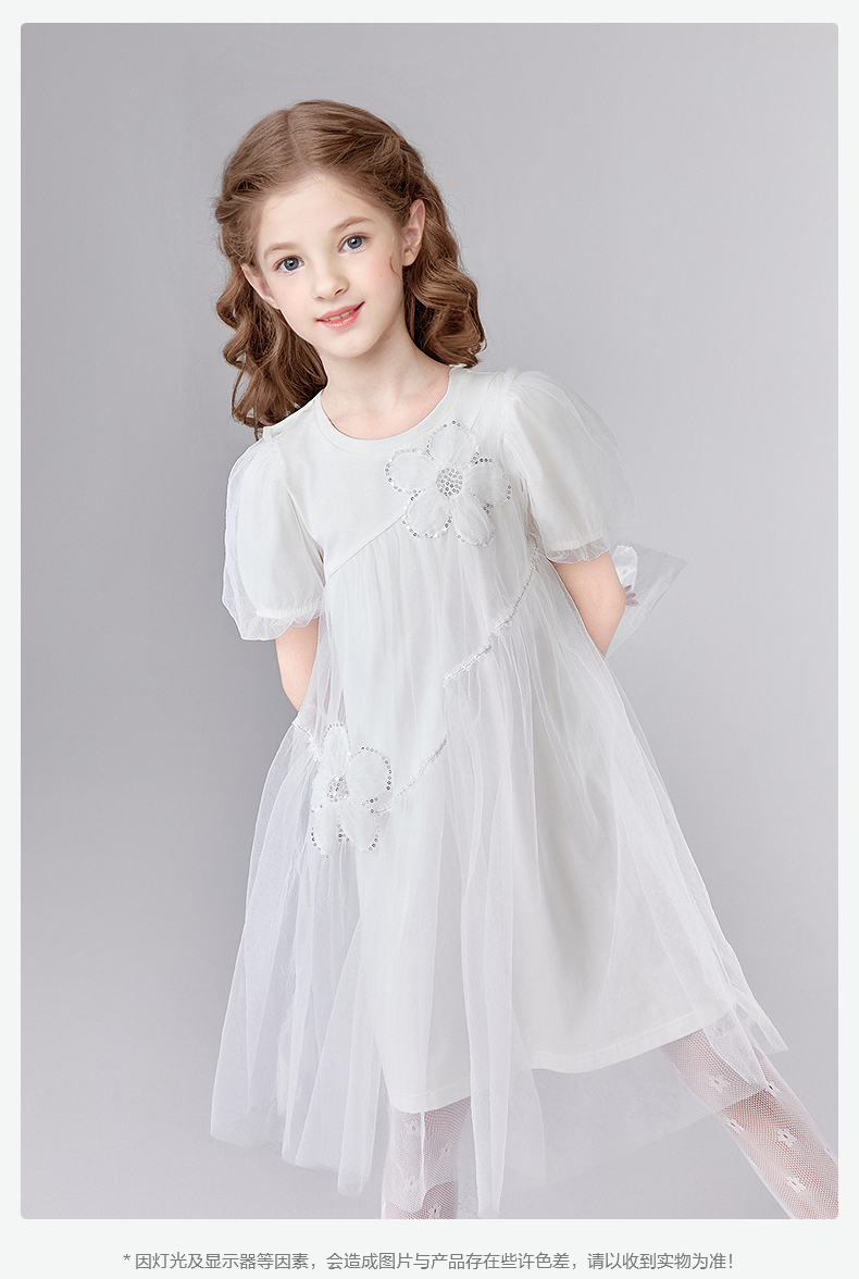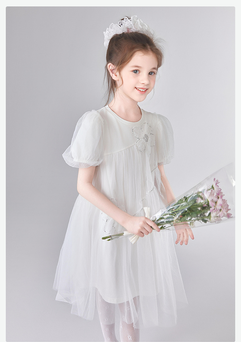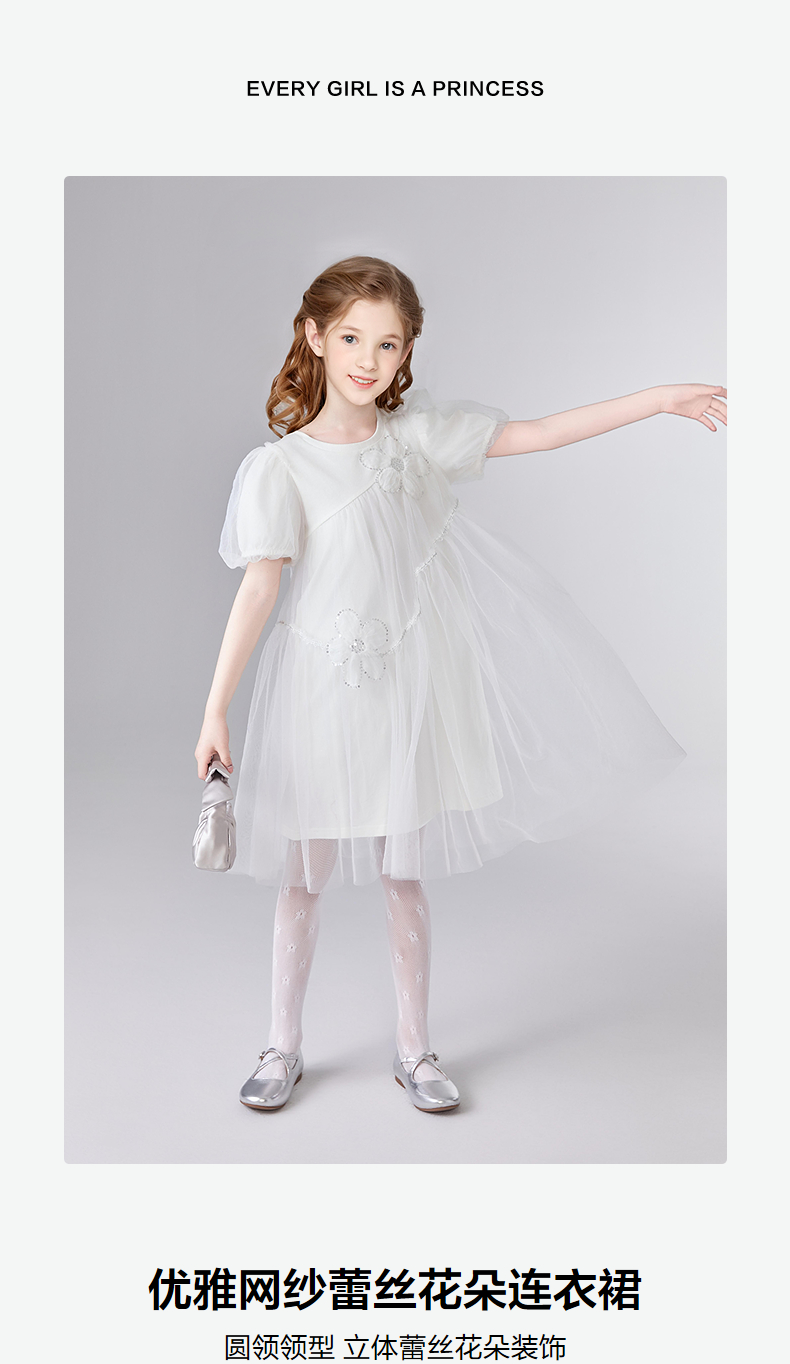 笛莎Deesha 童装女童连衣裙2025夏新款女童优雅网纱蕾丝花朵连衣裙