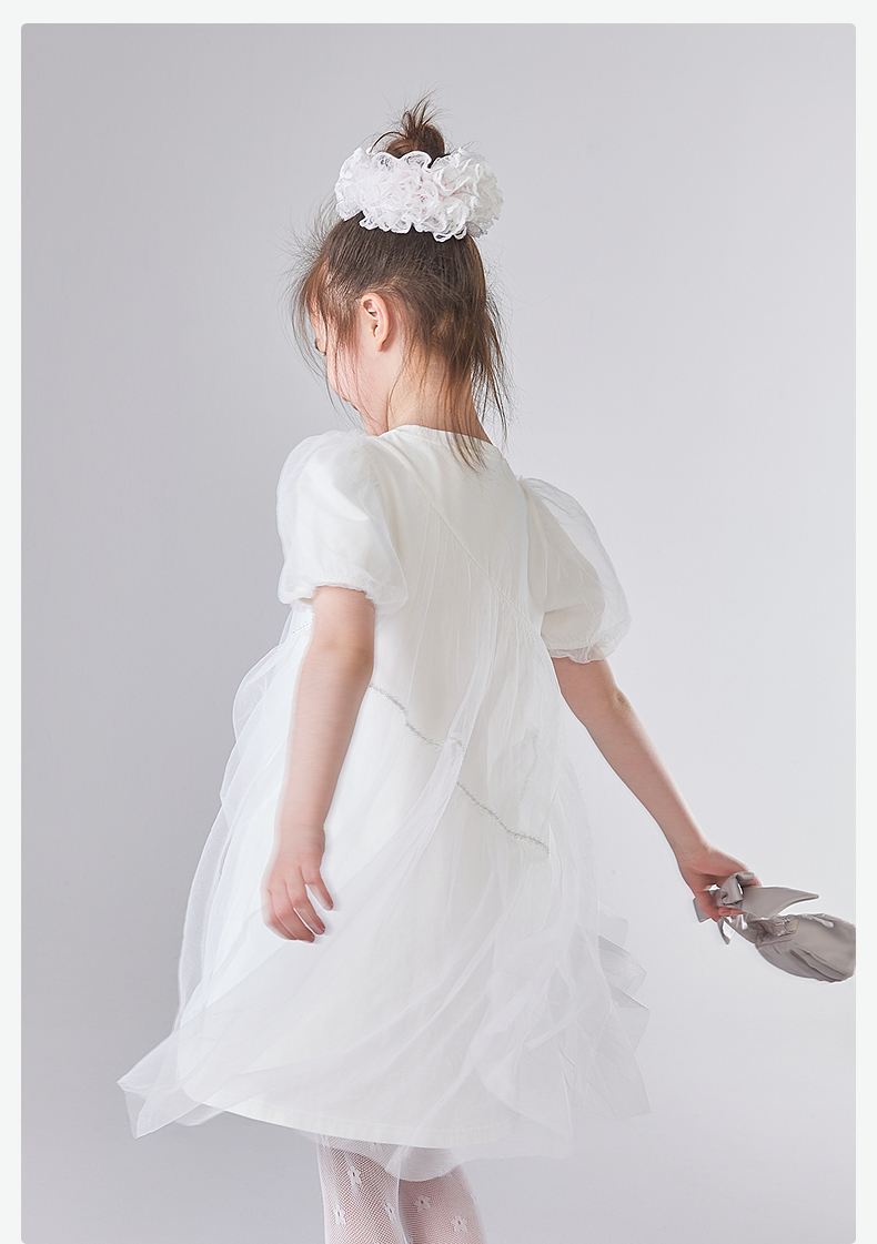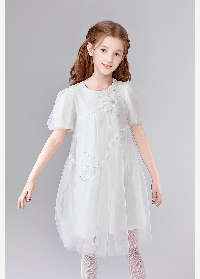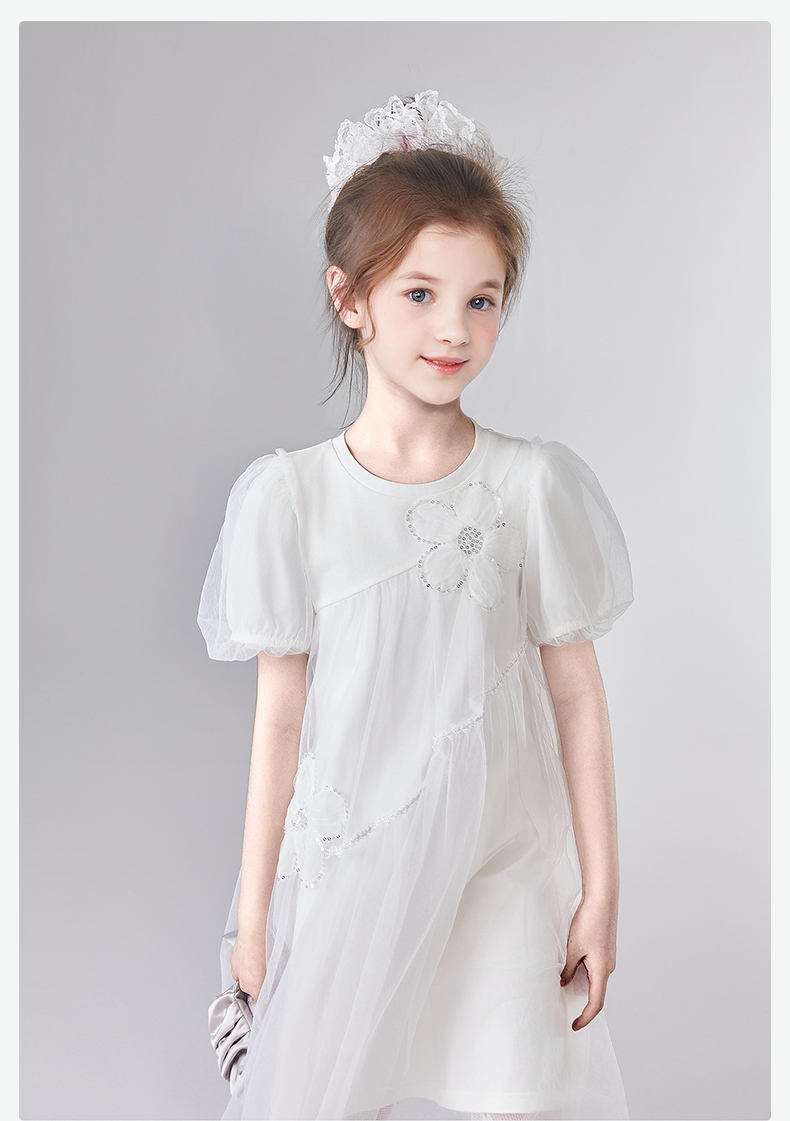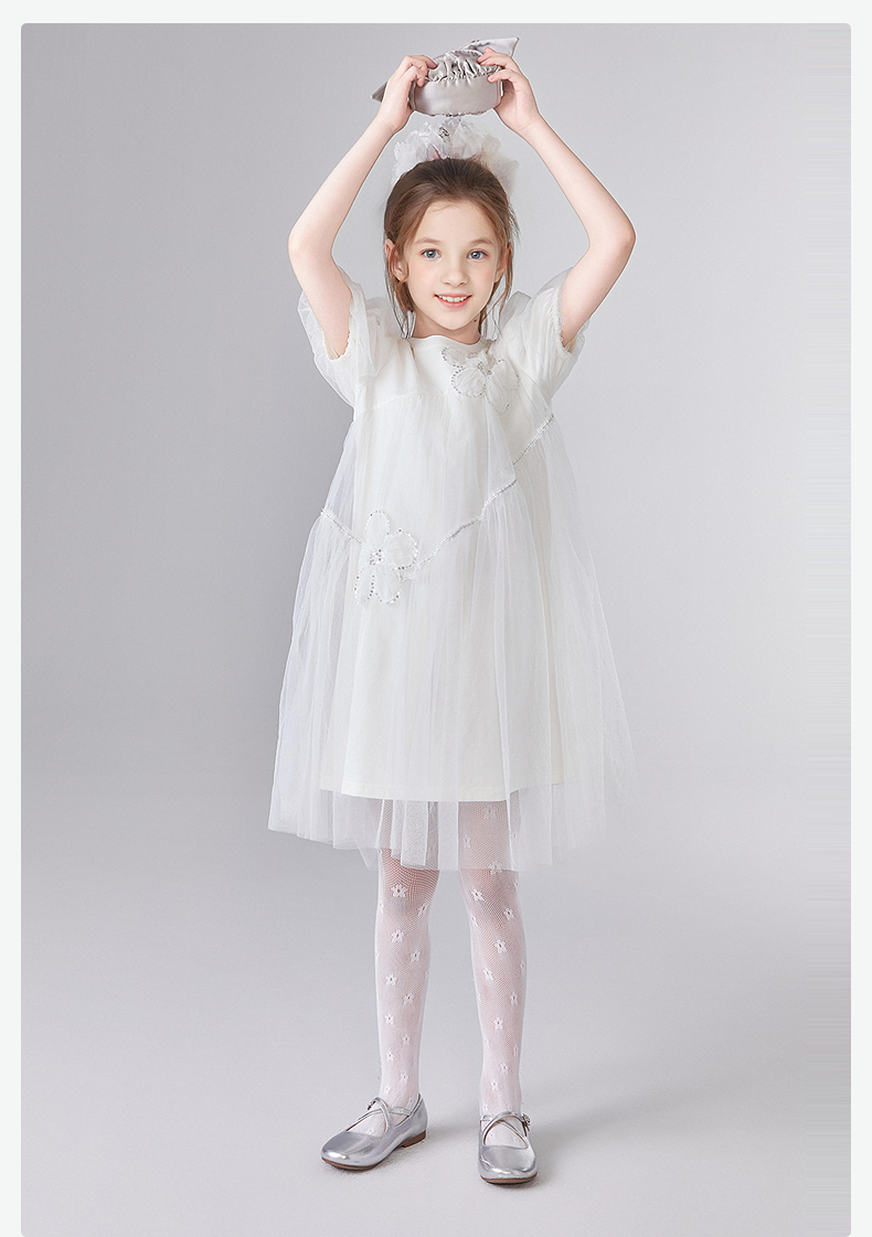 笛莎Deesha 童装女童连衣裙2025夏新款女童优雅网纱蕾丝花朵连衣裙