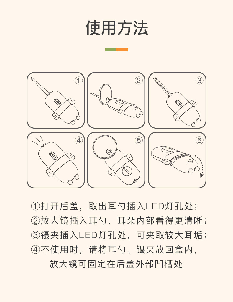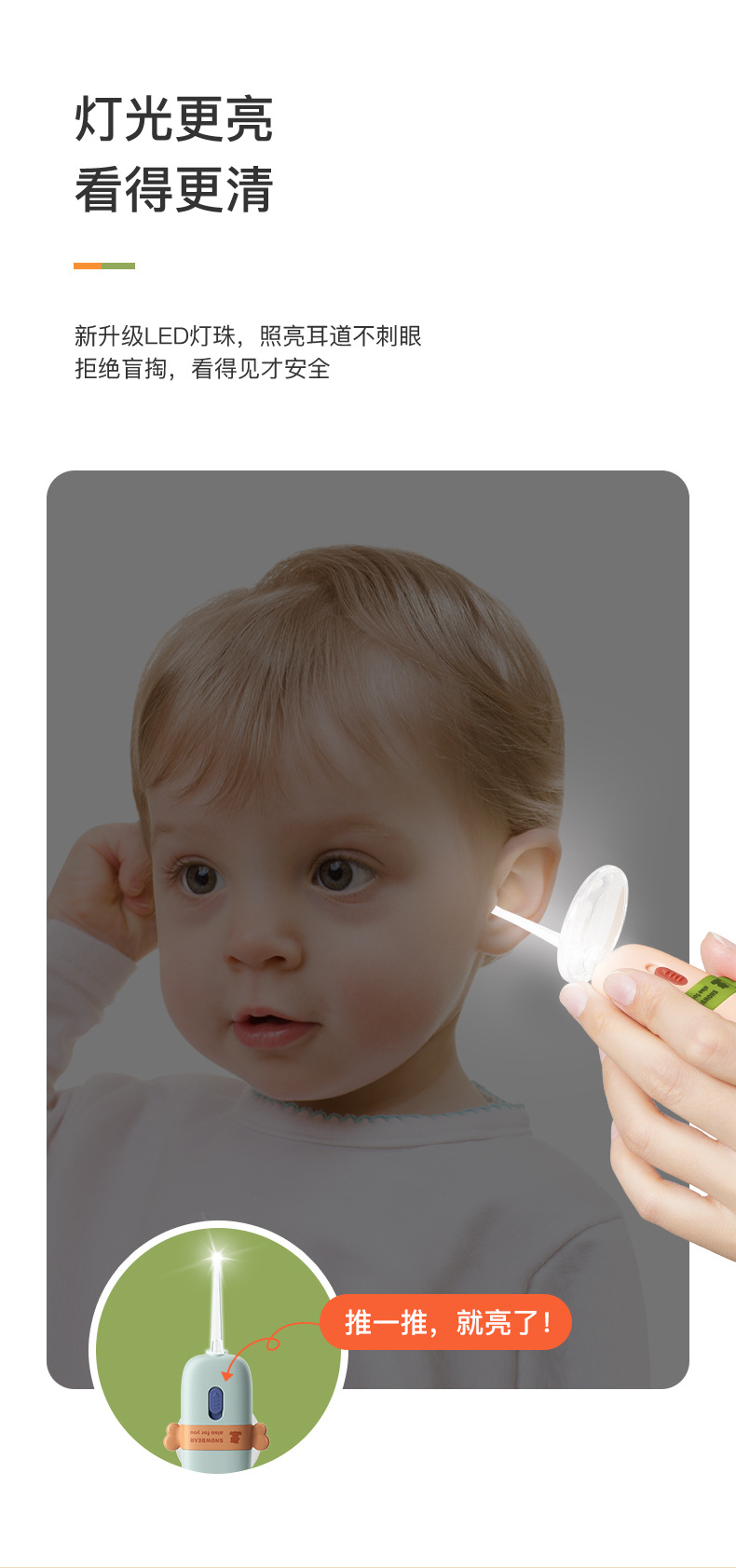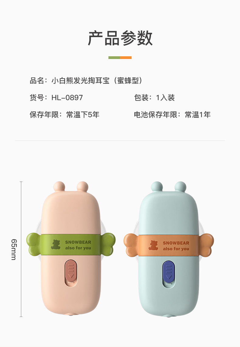 小白熊挖耳勺带灯发光掏耳采耳工具套装