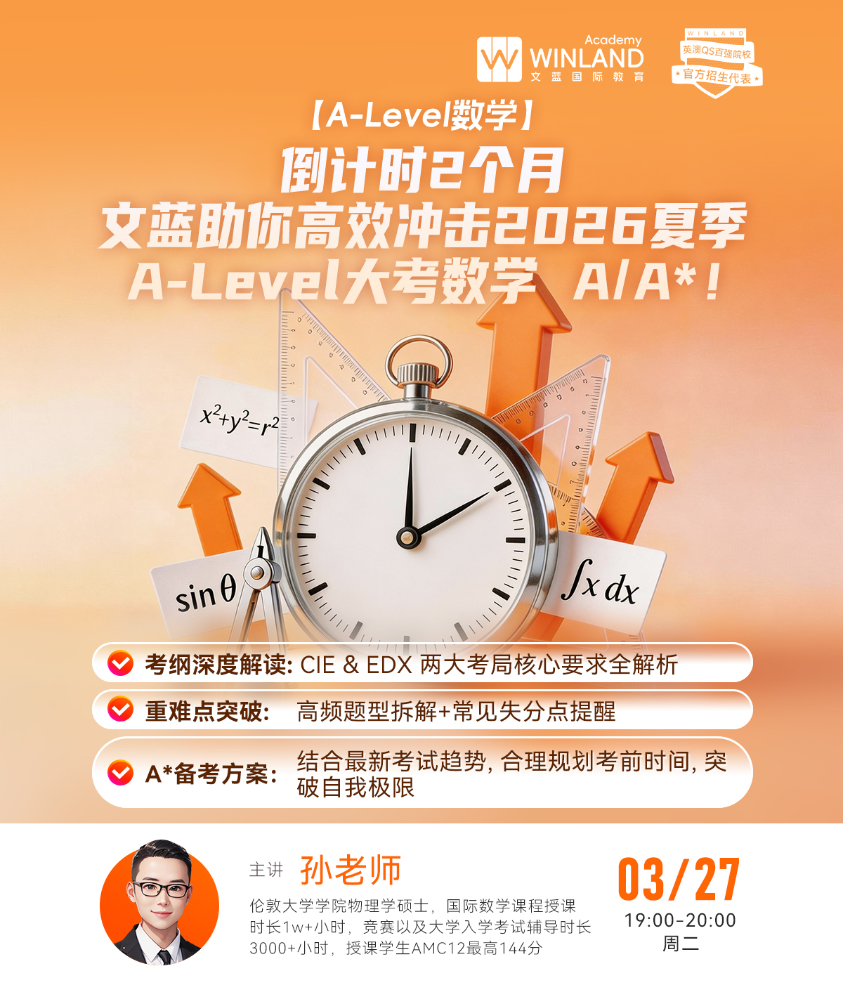 【3.17】倒计时2个月!文蓝助你高效冲击2026夏季A-Level大考数学 A/A*!纯数,统计,力学三大主题重难点全拆解!