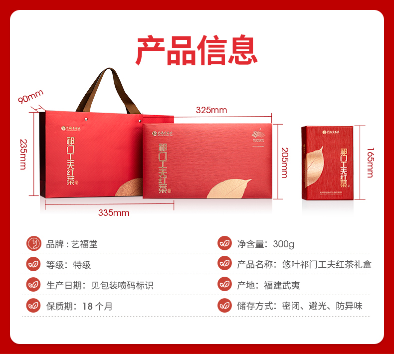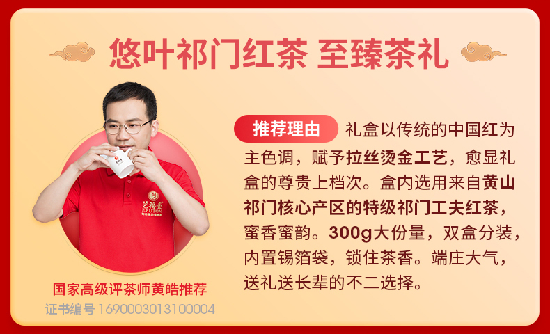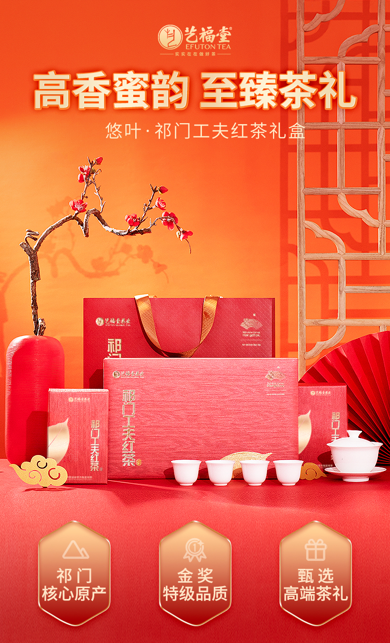 【下单减100】艺福堂悠叶祁门工夫红茶礼盒300g/盒EFU10+