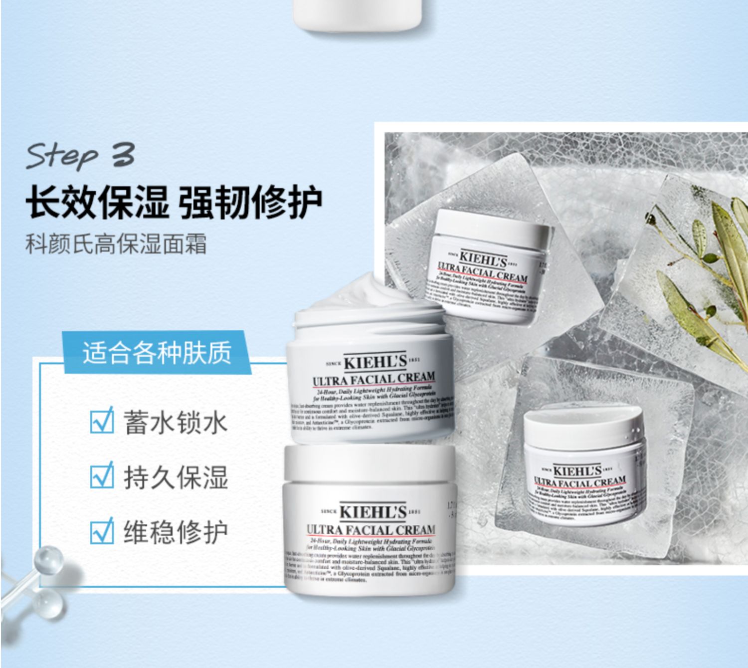 科颜氏高保湿三件套 深层补水滋润洗面奶爽肤水面霜护肤套装