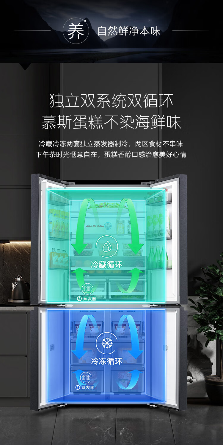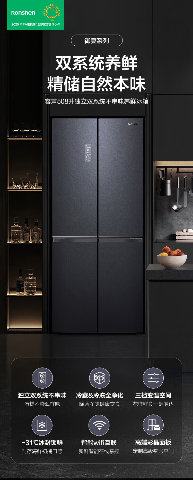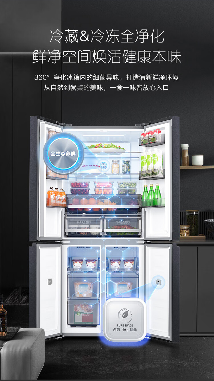 容声(Ronshen)508升 变频一级能效 十字四门冰箱 风冷大容量BCD-508WVS1FPGA玻璃双循环