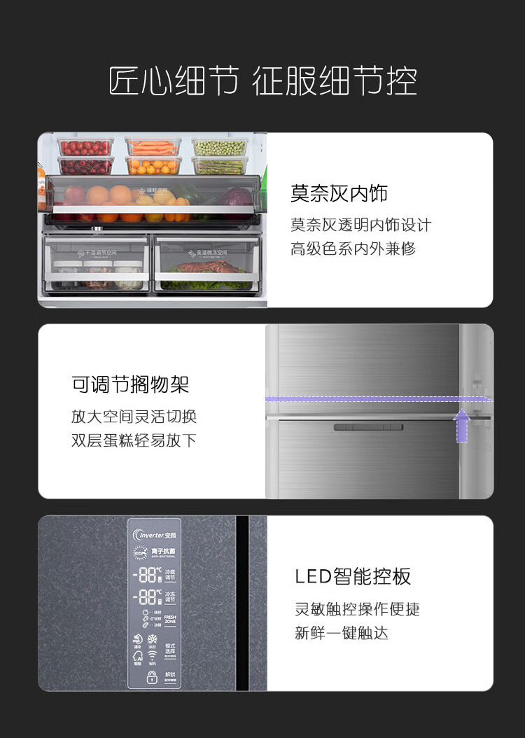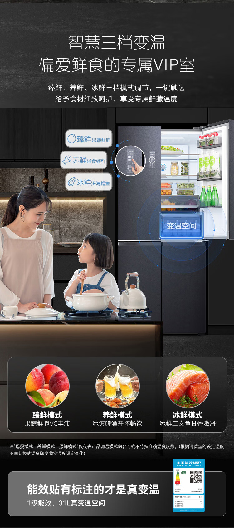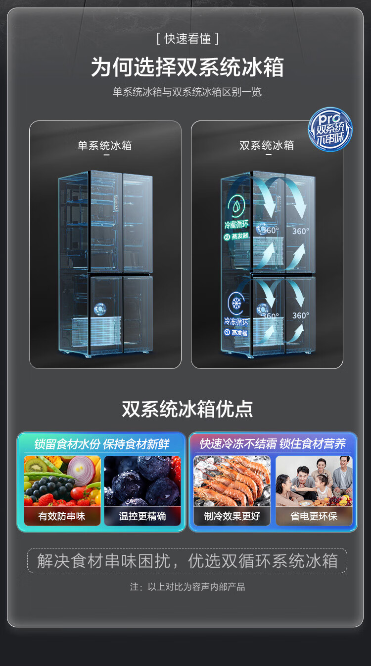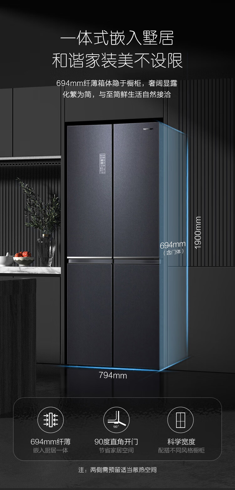 容声(Ronshen)508升 变频一级能效 十字四门冰箱 风冷大容量BCD-508WVS1FPGA玻璃双循环