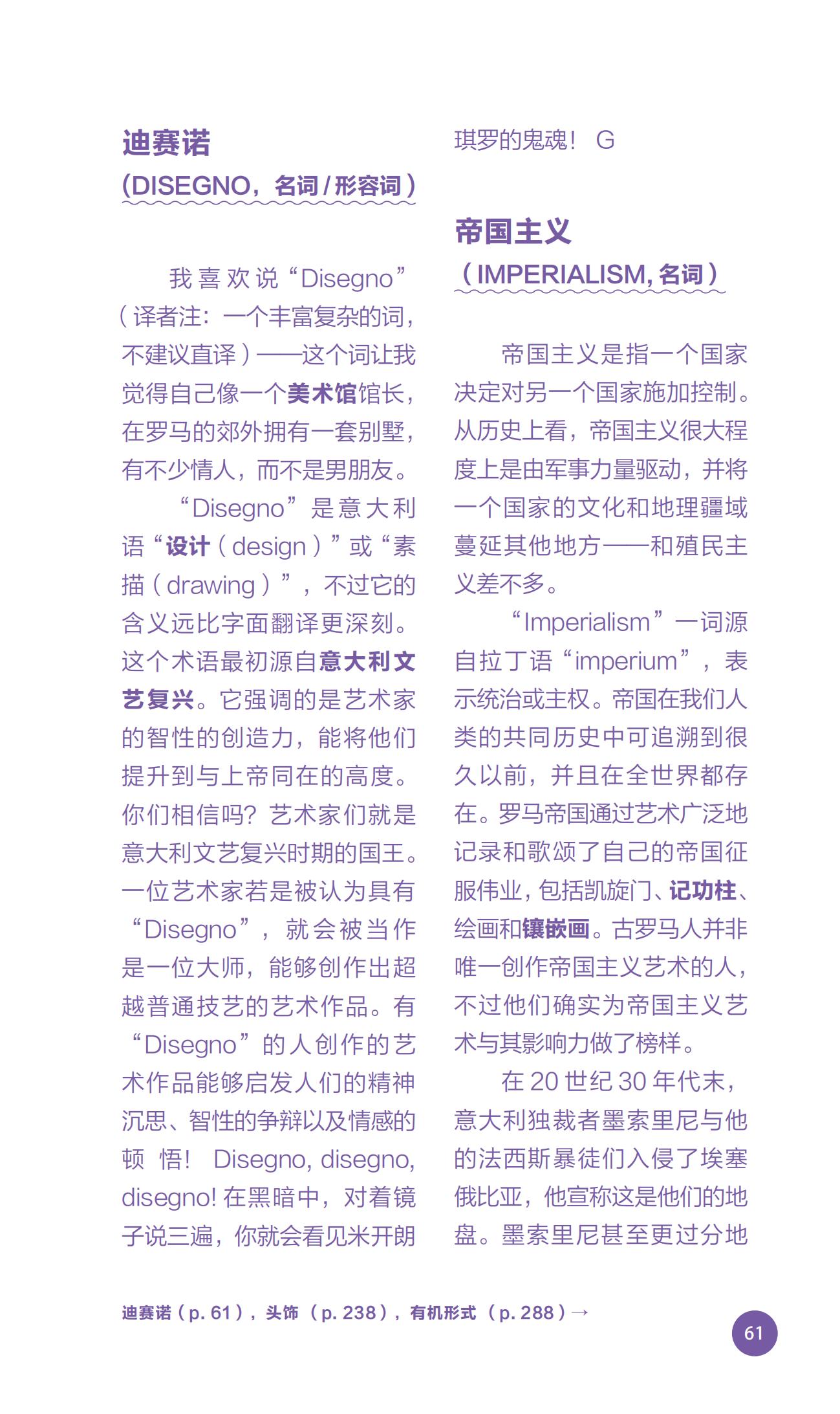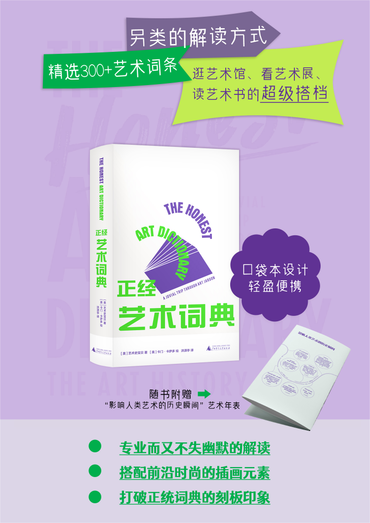 这是一本可以化身“艺术翻译官”的艺术词典,会成为你逛艺术馆、看艺术展、读艺术书的超级搭档!全书收录了300多个艺术词条,依照A至Z的排序,专业而又不失幽默的解读,搭配时尚前沿的插画,打破你对正统词典的刻板印象!这本书的内容创作者团队来自Apple Podcast热门艺术类播客“The Art History Babes”,从声音到纸面的精彩呈现,以生动的语言和关键词的方式,通过艺术史和流行文化的有趣案例,搭配上30多幅孟菲斯风格的前卫插画,将复杂的艺术概念给你讲得清清楚楚!全书采用小32开,轻量化设计,汉语拼音索引,随书附赠艺术年表,更适合中国艺术迷的阅读与使用习惯。
