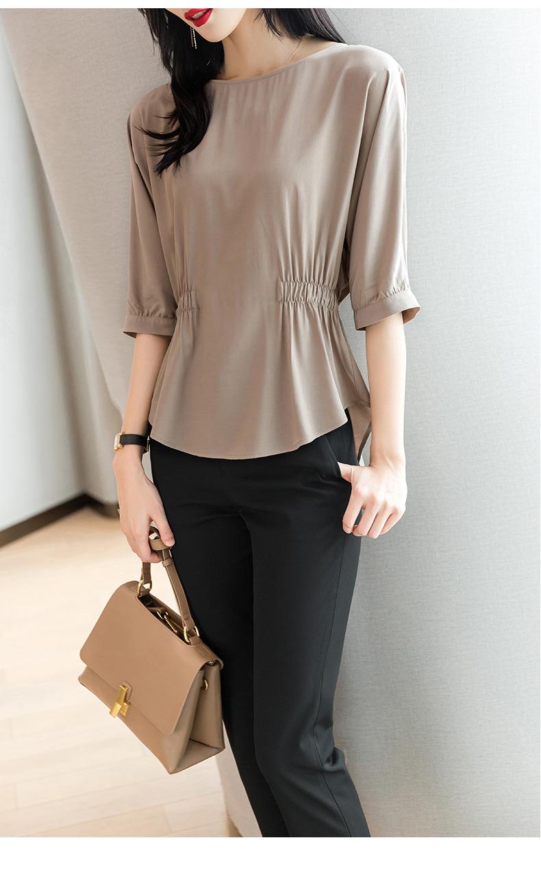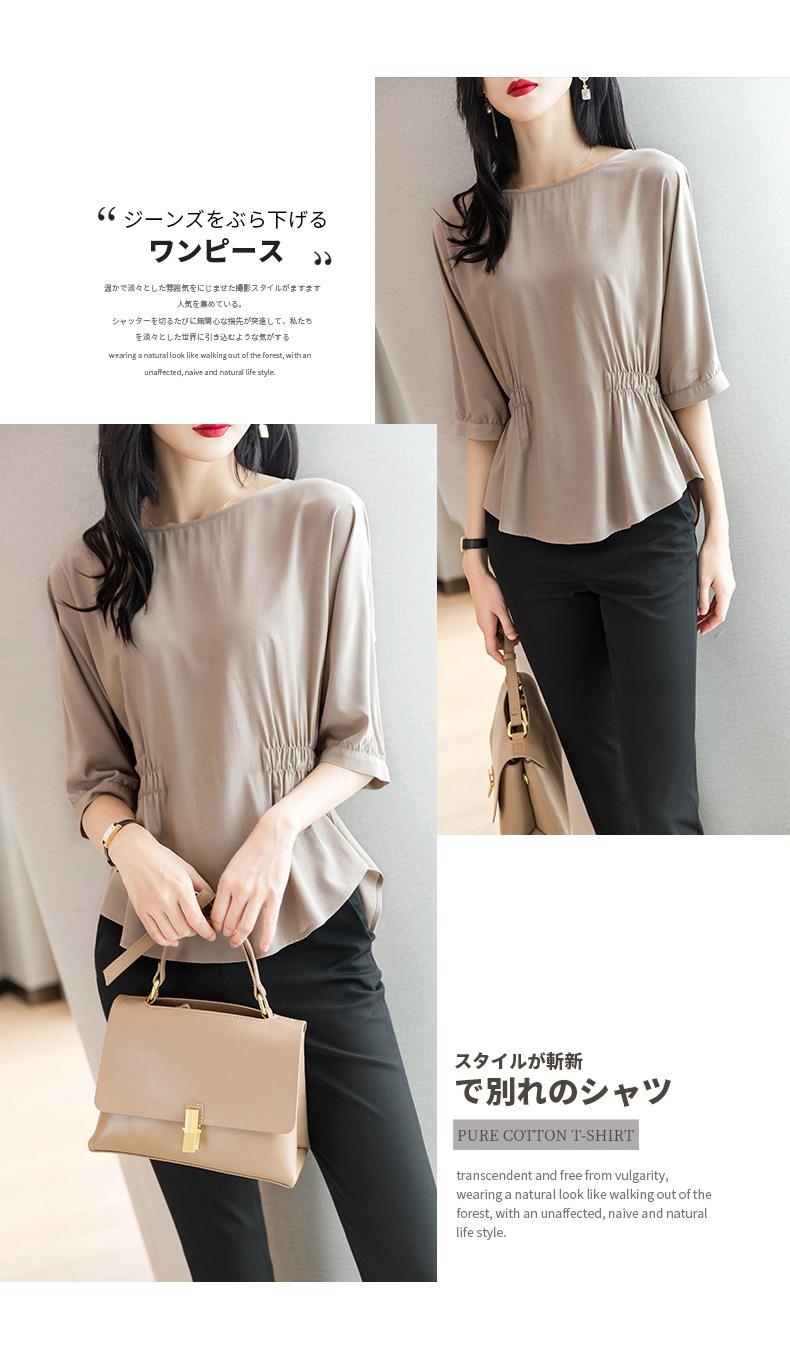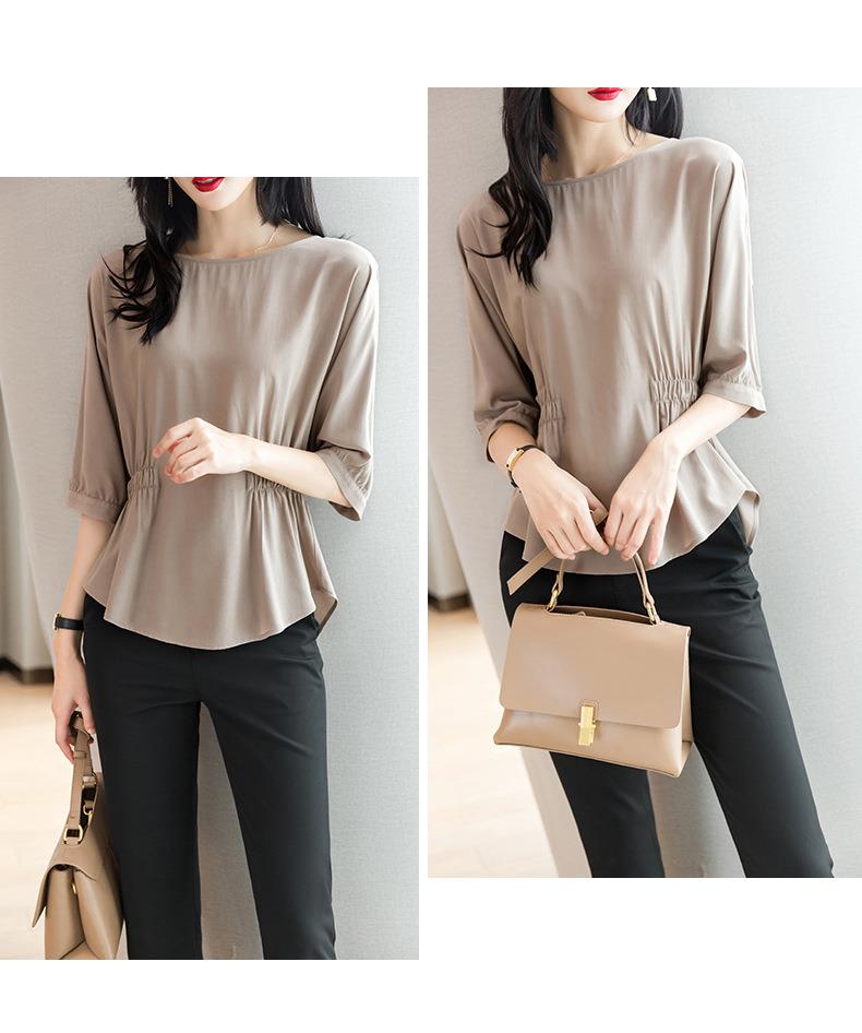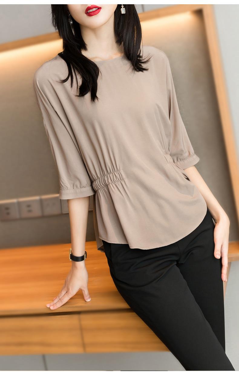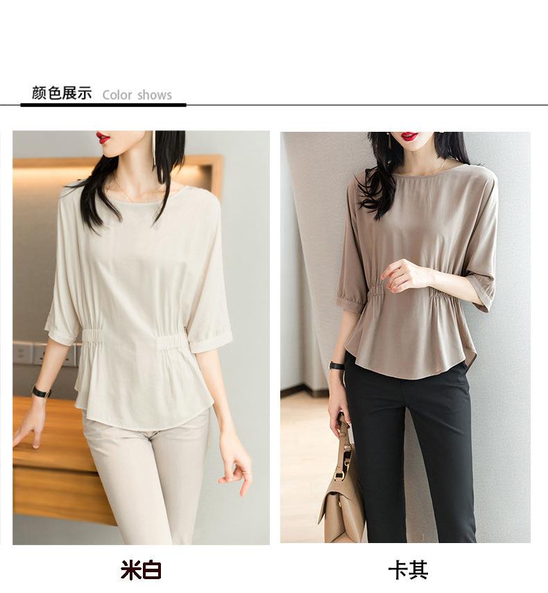 2023夏季新款雪纺衫七分袖衬衫女宽松大码衬衣T恤女1198