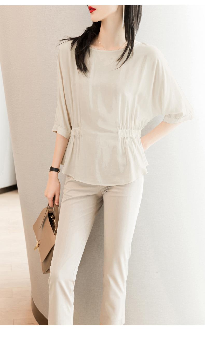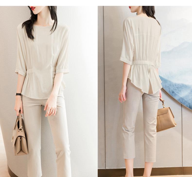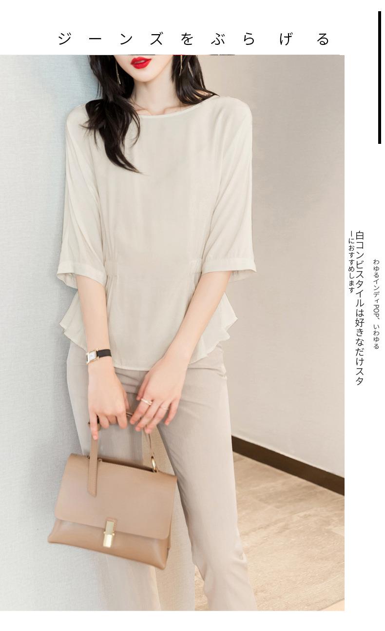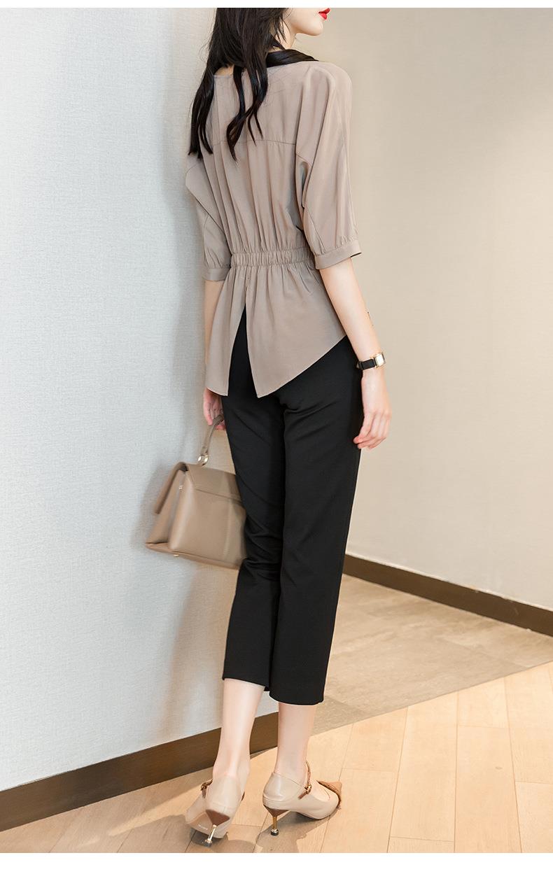 2023夏季新款雪纺衫七分袖衬衫女宽松大码衬衣T恤女1198