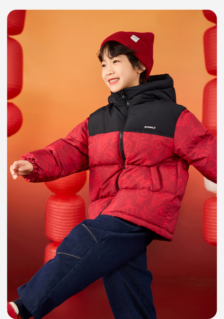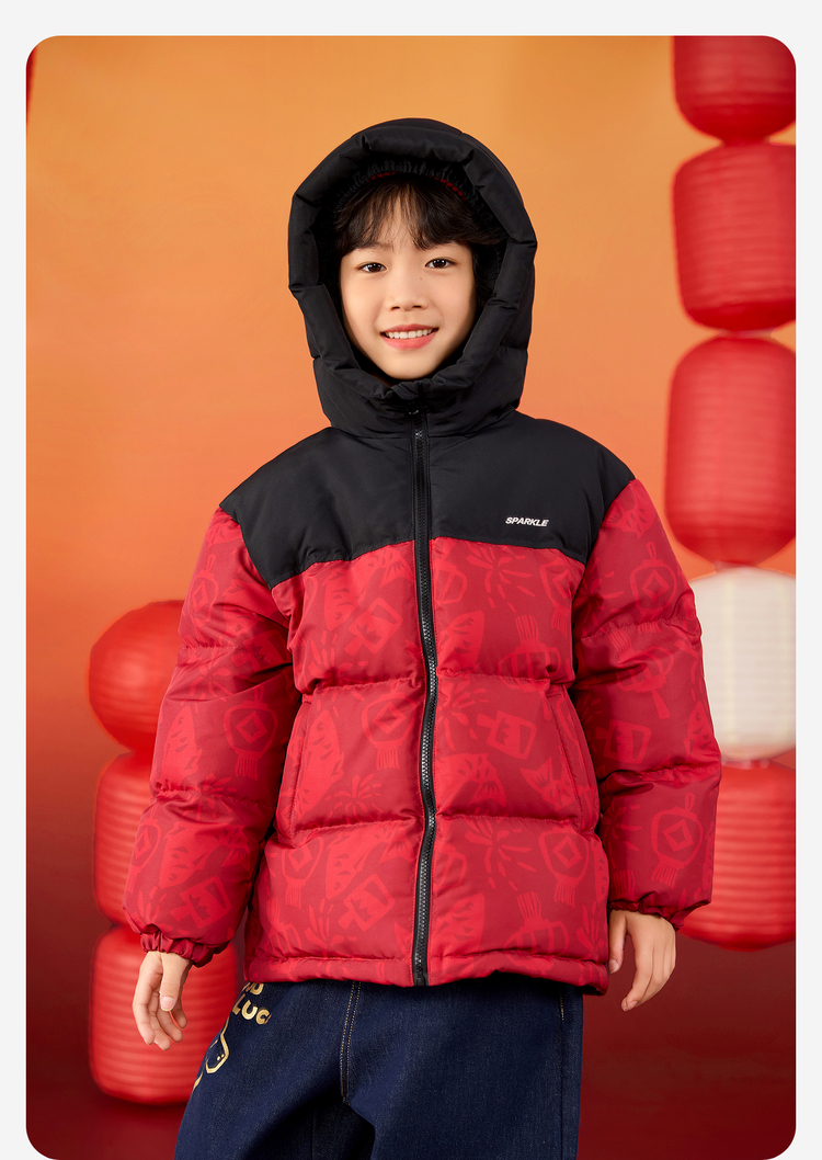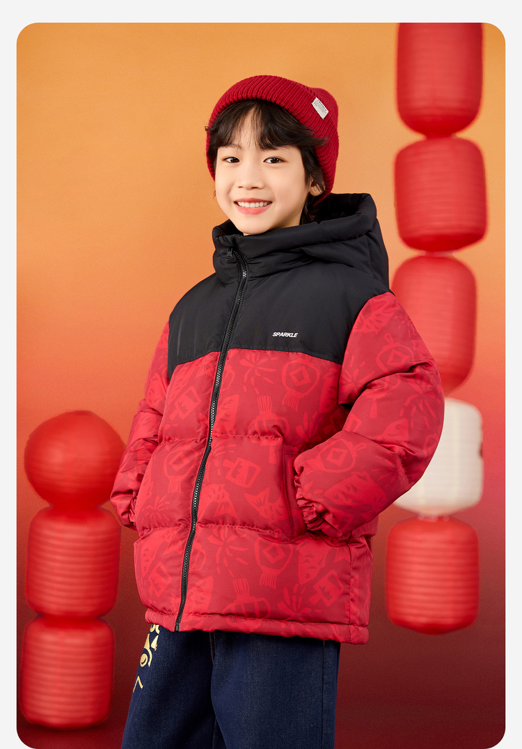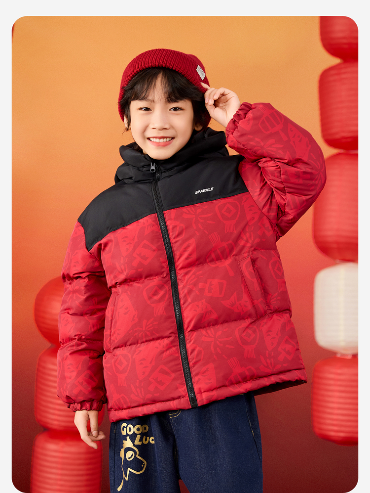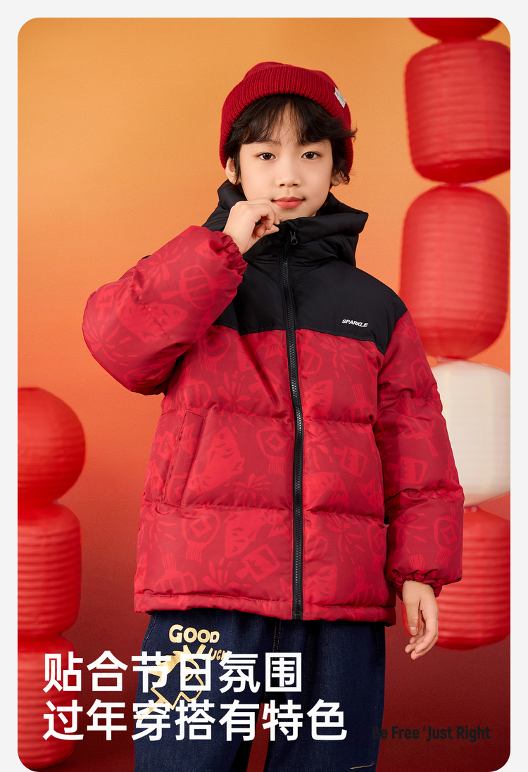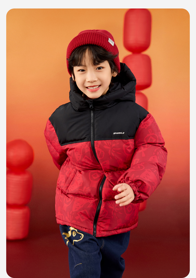 【杜邦三防】Bluem儿童羽绒服男童加厚冬装外套女童红色保暖上衣拜年服yb1219008