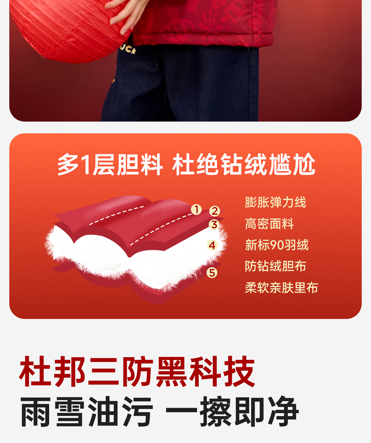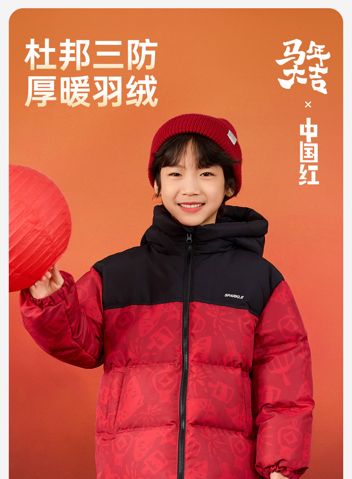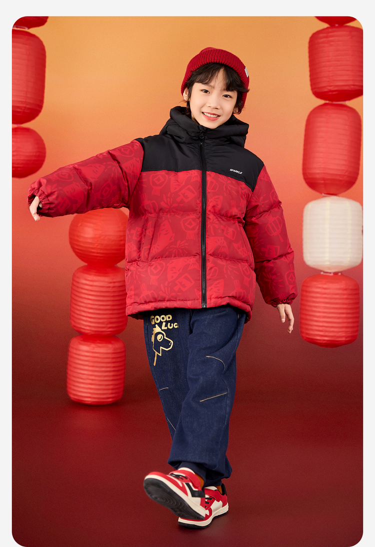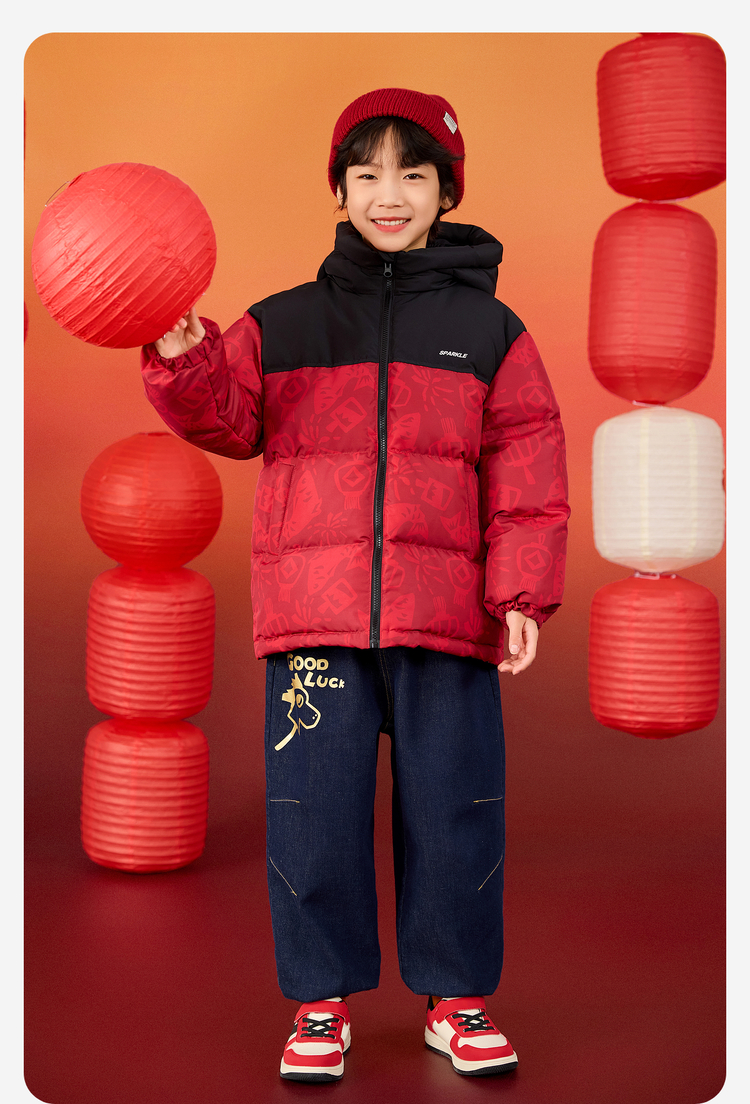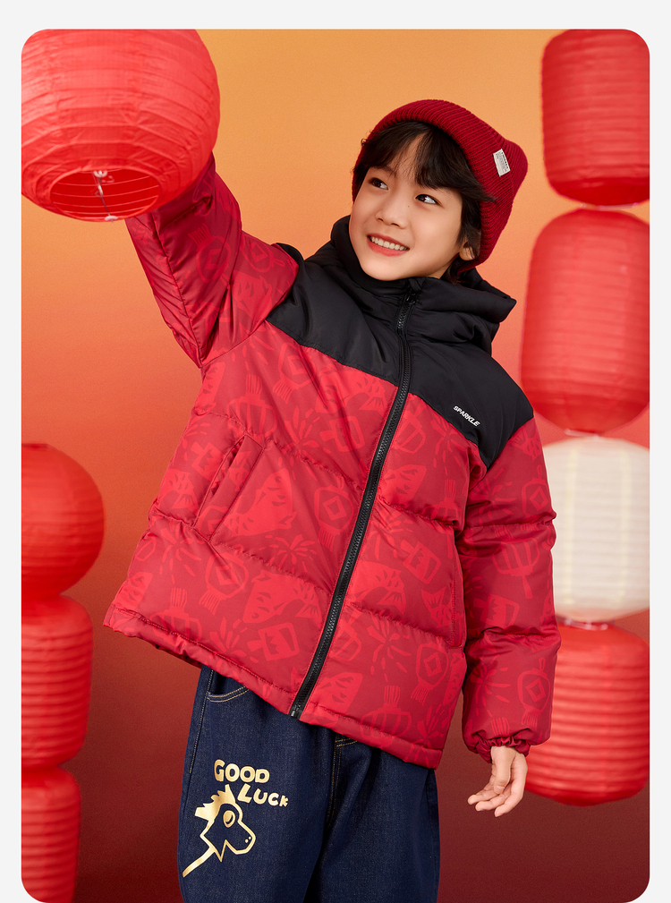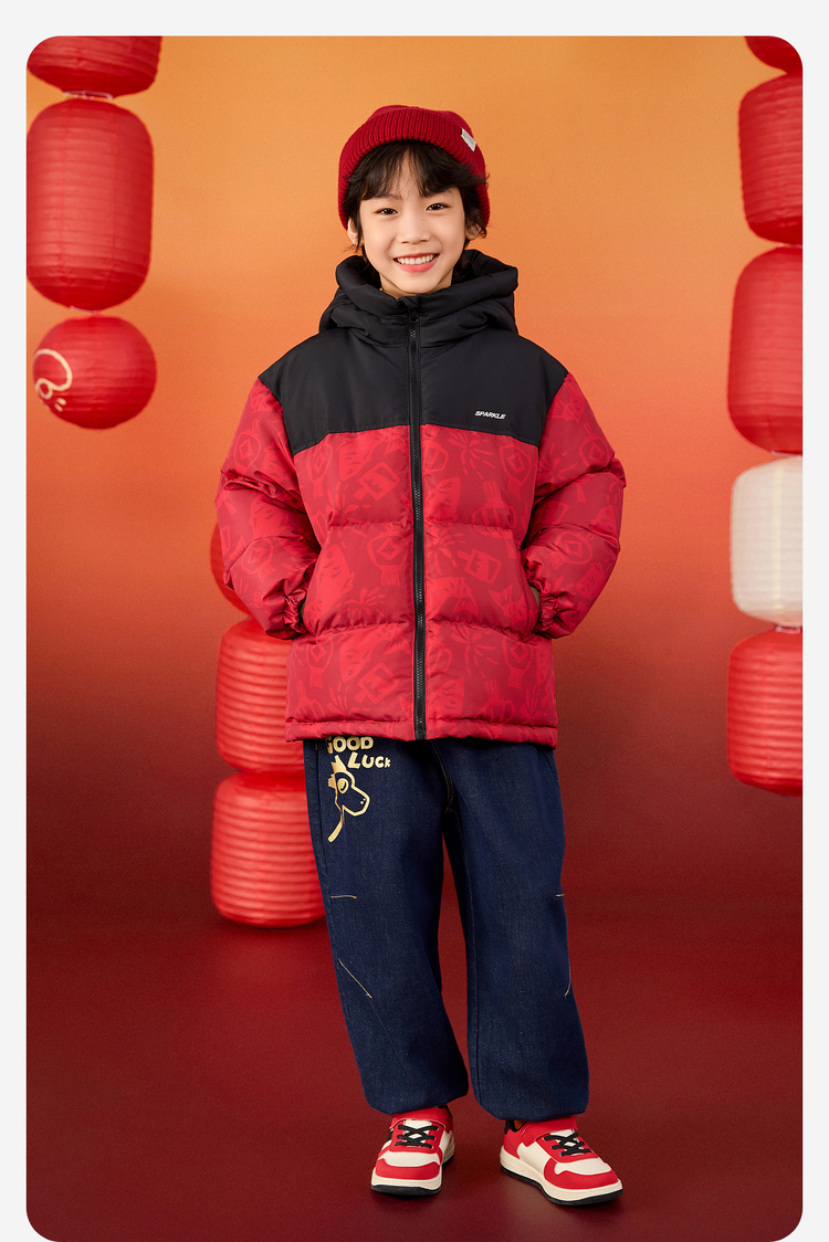 【杜邦三防】Bluem儿童羽绒服男童加厚冬装外套女童红色保暖上衣拜年服yb1219008
