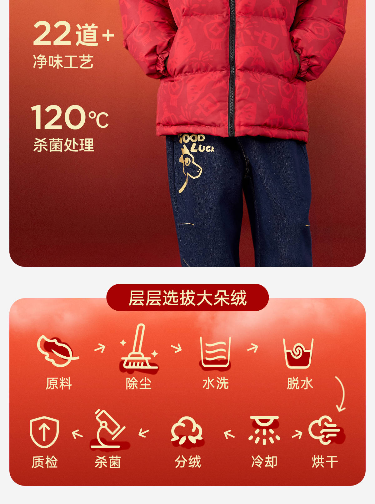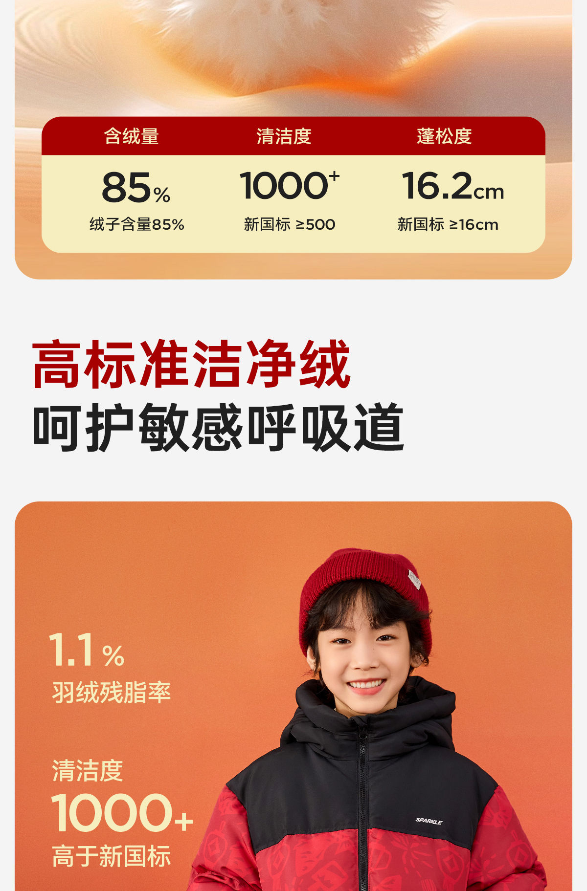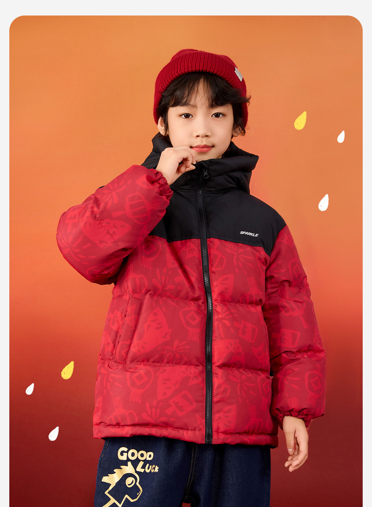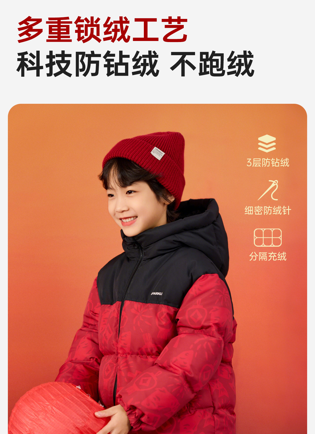 【杜邦三防】Bluem儿童羽绒服男童加厚冬装外套女童红色保暖上衣拜年服yb1219008