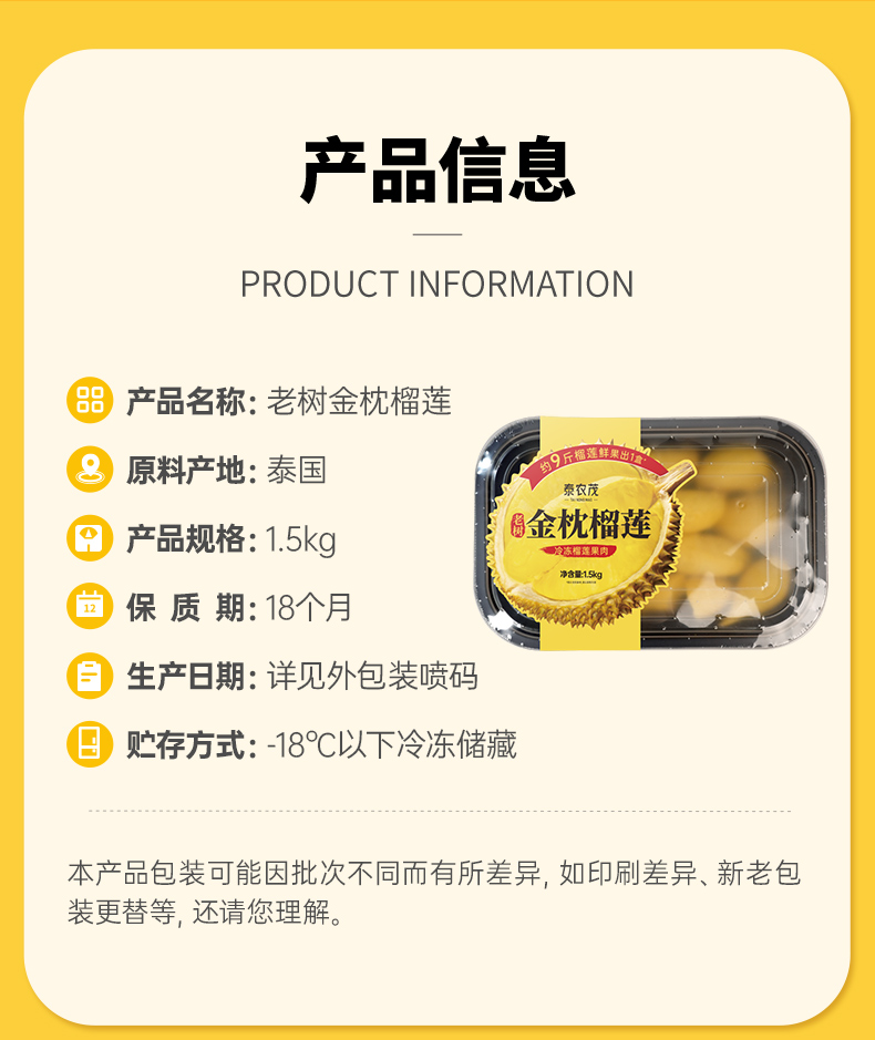 【顺丰/京东冷链发货】泰国老树泰国自有果园工厂泰国A级金枕榴莲果肉